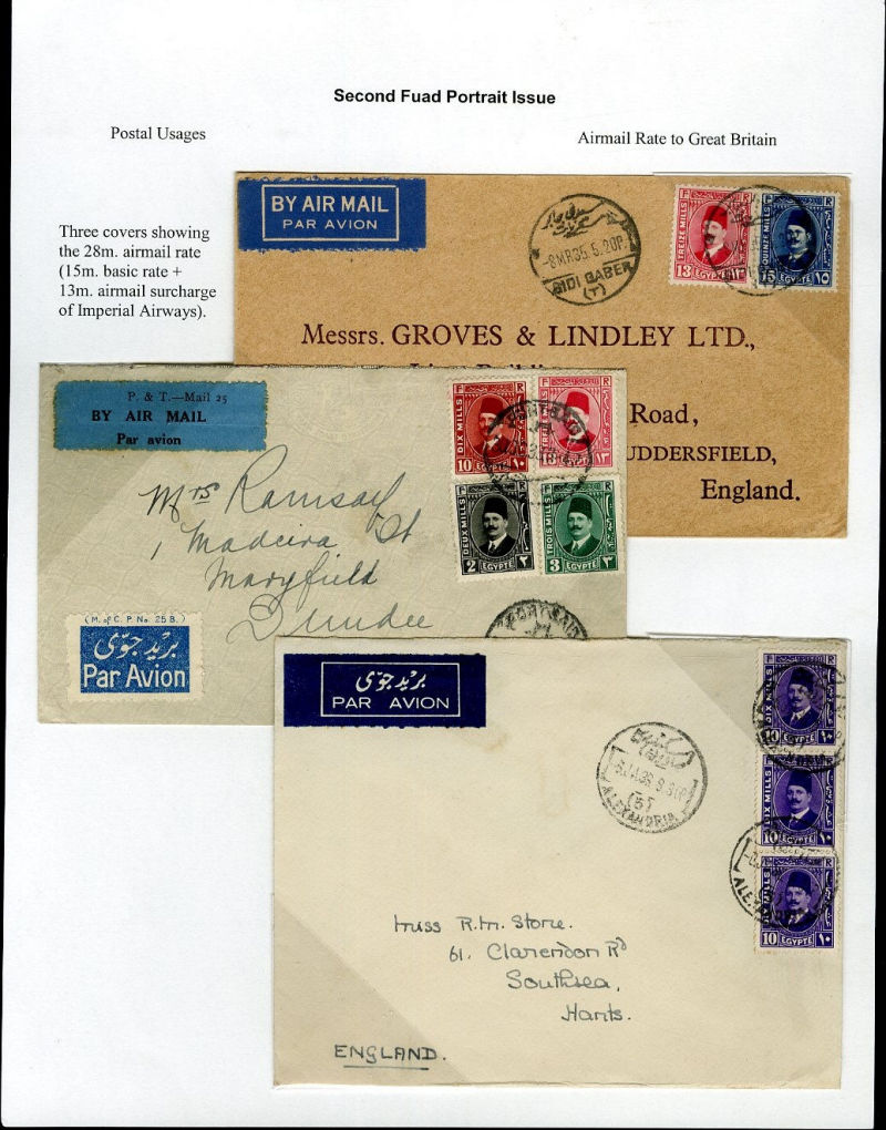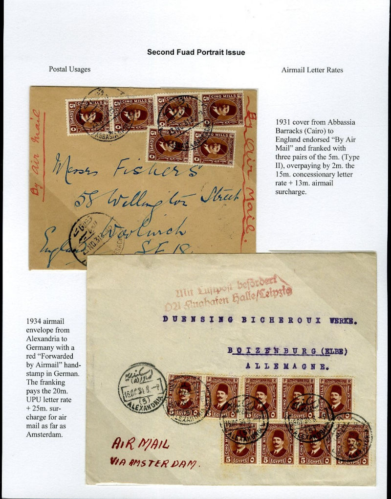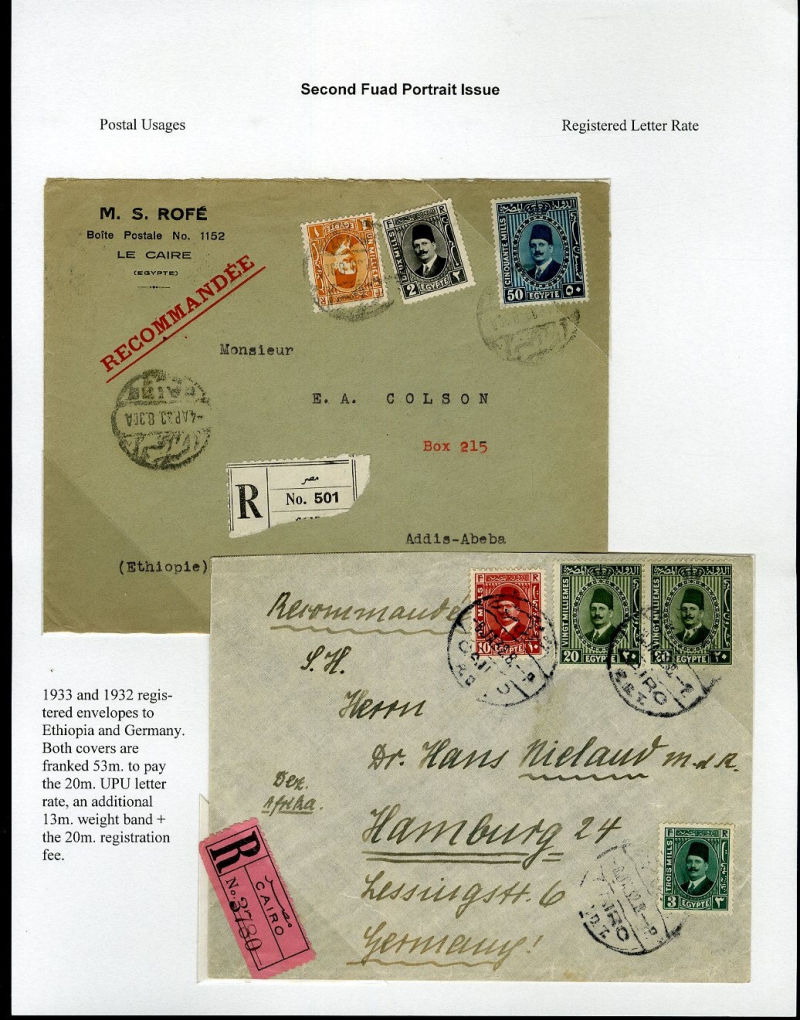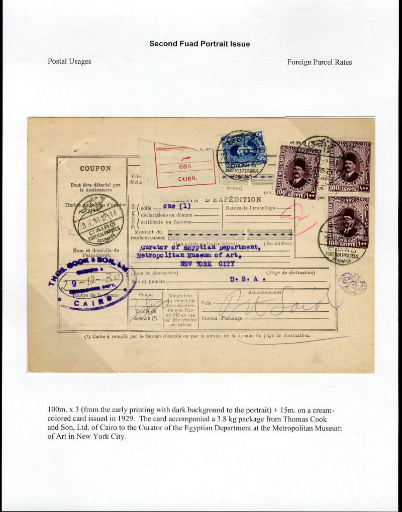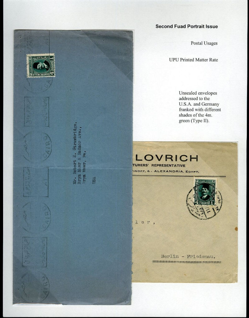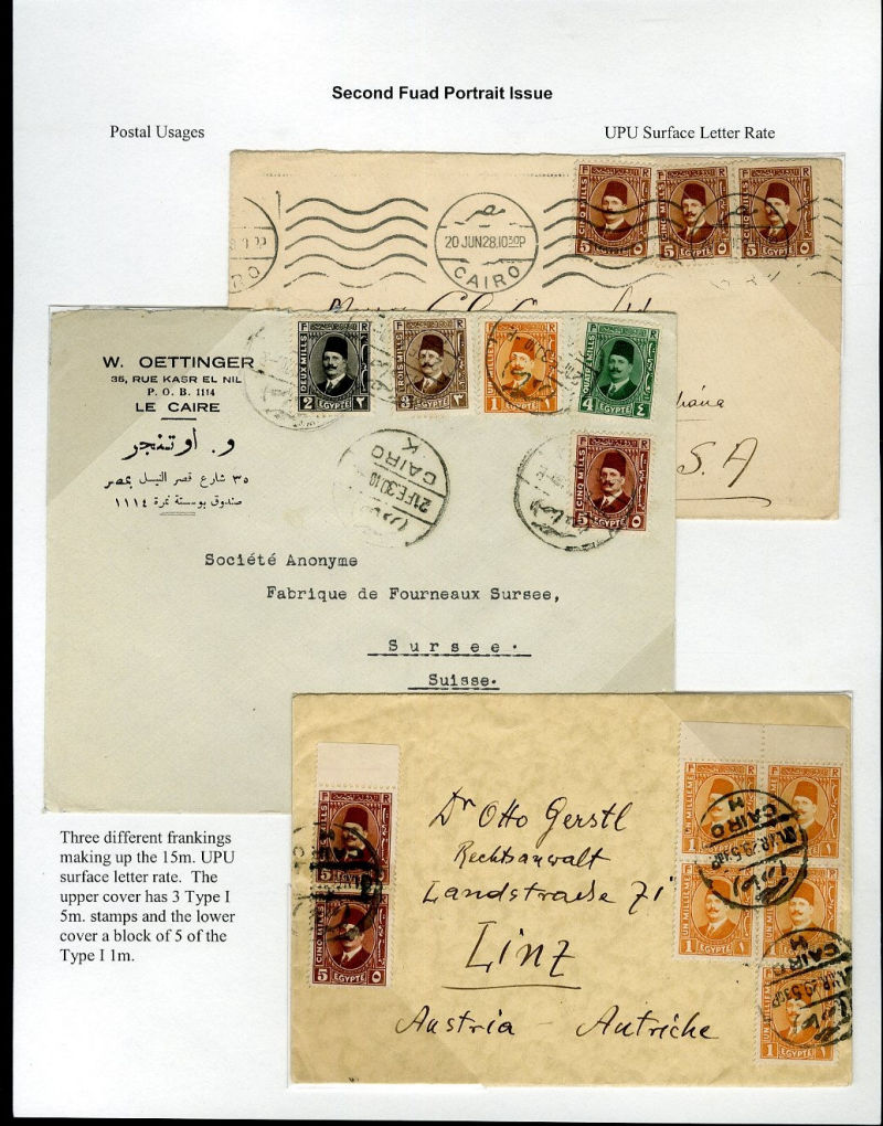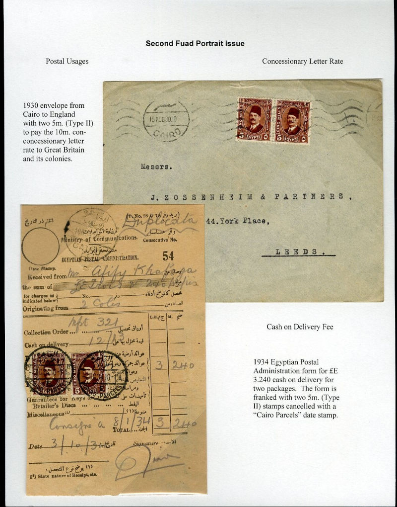 1309 c   imageLARGE LOTS AND COLLECTIONS EGYPT - Covers and Postal History 1927-35 collection of 75 covers, two parcel post cards and several pieces franked with the 1m-500m Second Fuad Portrait Issue, all mounted on exhibit pages, wide range of frankings, uncommon destinations and postal usages, fine and attractive showing (Image) (Image 2) (Image 3) (Image 4) (Image 5) (Image 6) (Image 7) (Image 8) (Image 9) (Image 10) (Image 11) (Image 12) (Image 13) (Image 14) (Image 15) (Image 16) (Image 17) (Image 18) (Image 19) (Image 20) (Image 21) (Image 22) (Image 23) (Image 24) (Image 25) (Image 26) (Image 27) (Image 28) (Image 29) (Image 30) (Image 31) (Image 32) (Image 33) (Image 34) (Image 35) (Image 36) (Image 37) (Image 38) (Image 39) (Image 40) (Image 41) (Image 42) (All Images)