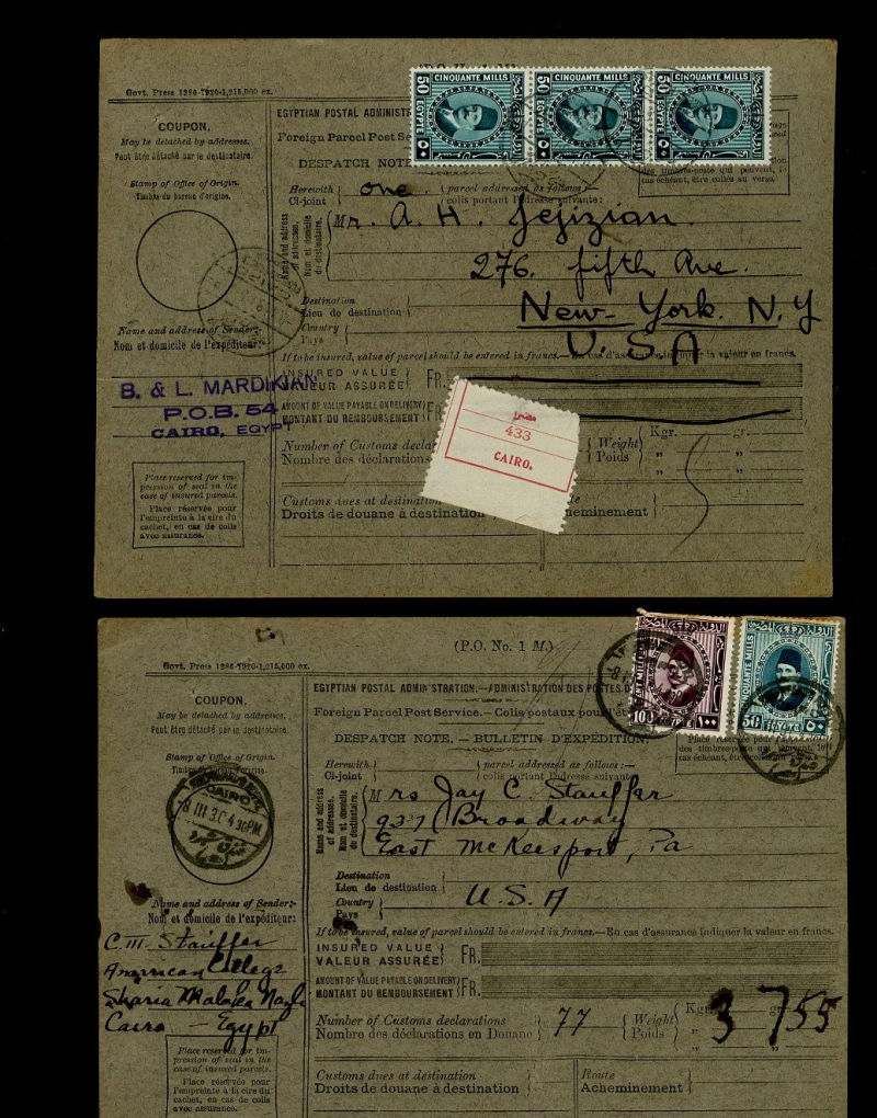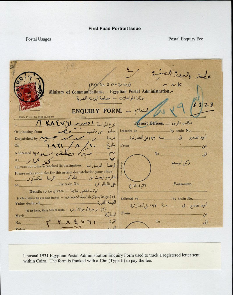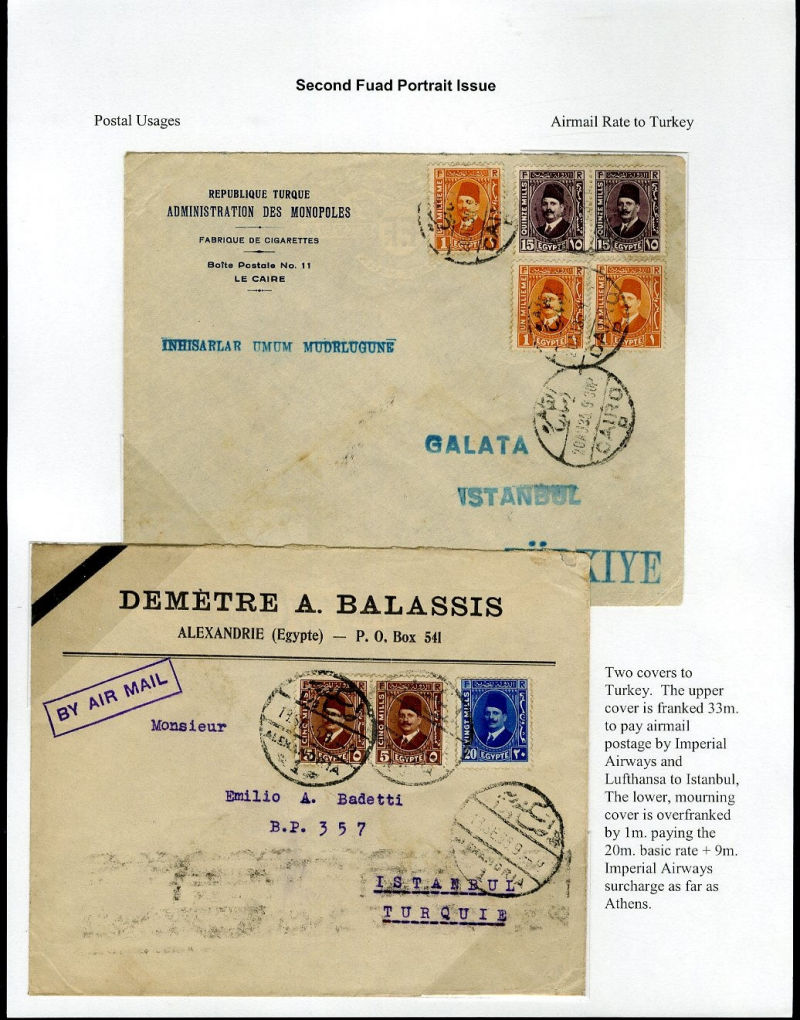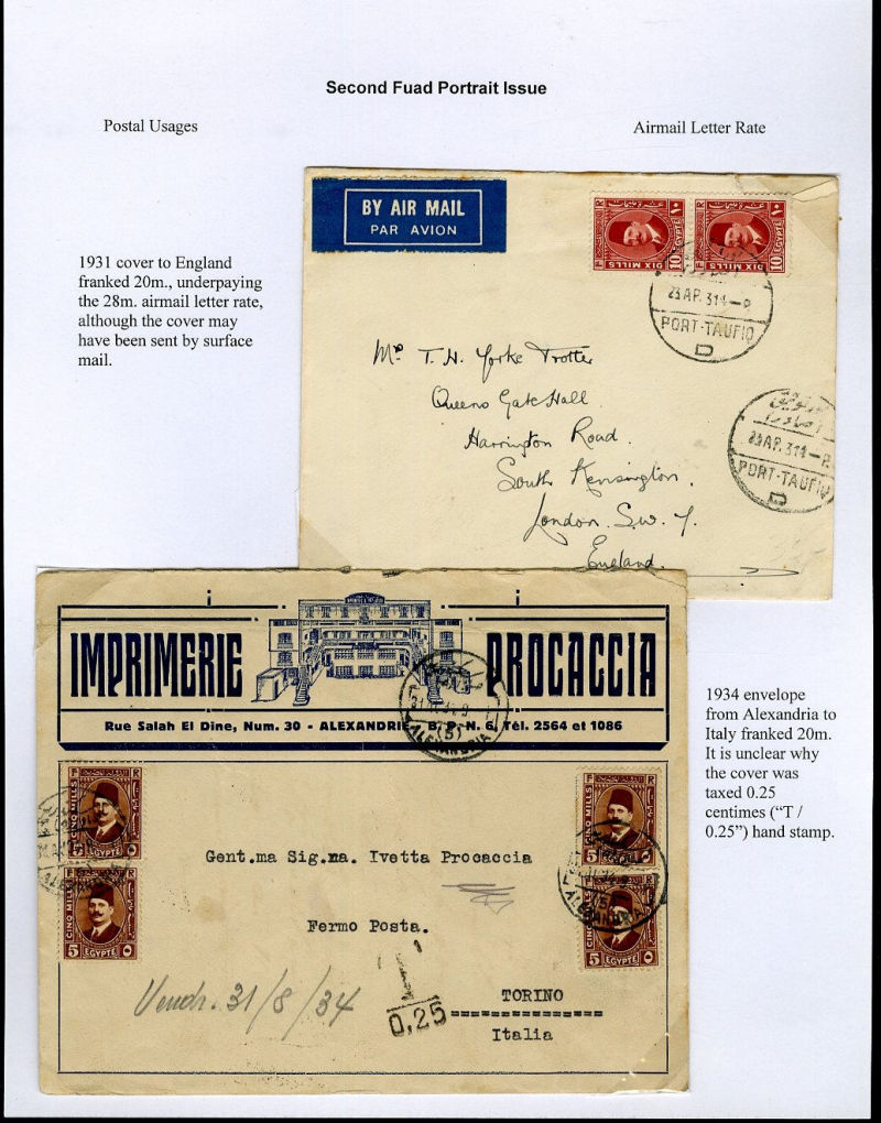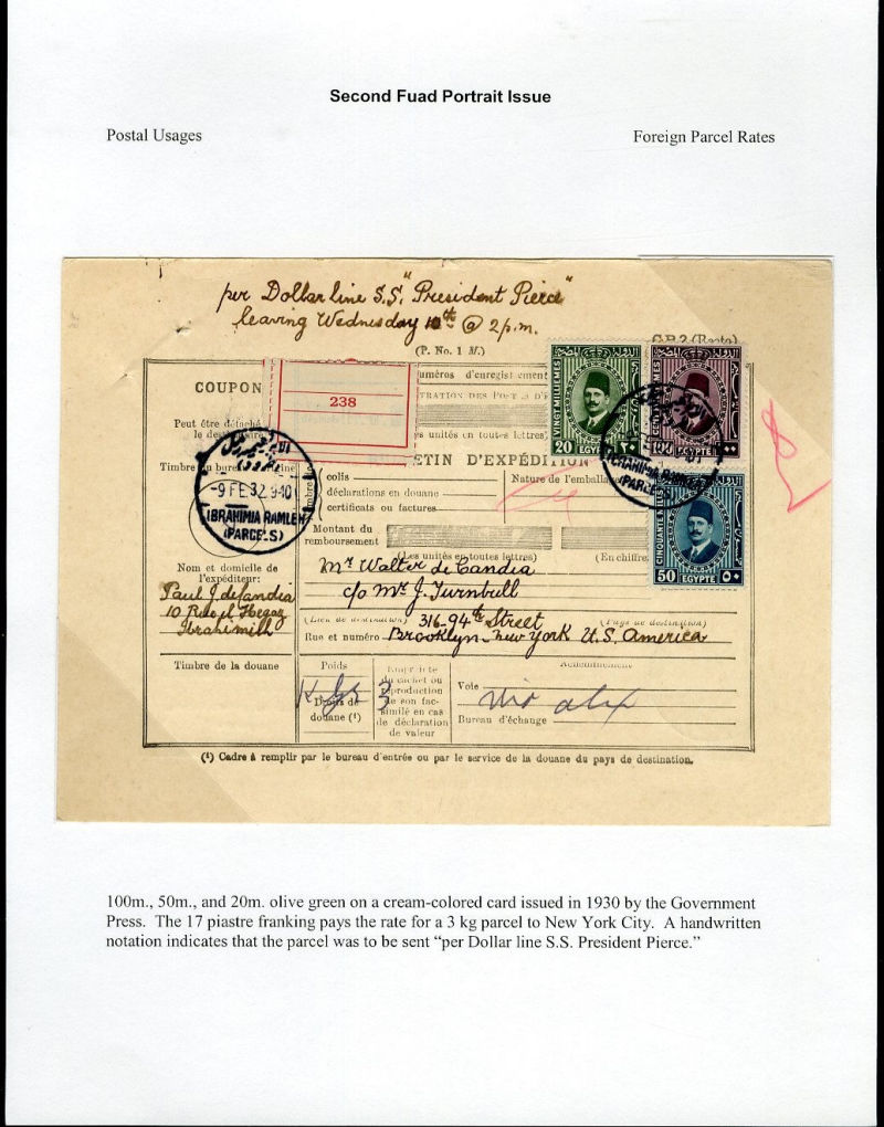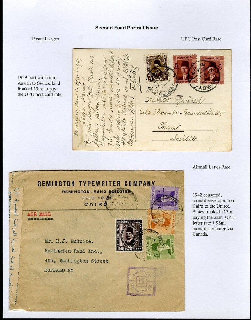 1309 c   imageLARGE LOTS AND COLLECTIONS EGYPT - Covers and Postal History 1927-35 collection of 75 covers, two parcel post cards and several pieces franked with the 1m-500m Second Fuad Portrait Issue, all mounted on exhibit pages, wide range of frankings, uncommon destinations and postal usages, fine and attractive showing (Image) (Image 2) (Image 3) (Image 4) (Image 5) (Image 6) (Image 7) (Image 8) (Image 9) (Image 10) (Image 11) (Image 12) (Image 13) (Image 14) (Image 15) (Image 16) (Image 17) (Image 18) (Image 19) (Image 20) (Image 21) (Image 22) (Image 23) (Image 24) (Image 25) (Image 26) (Image 27) (Image 28) (Image 29) (Image 30) (Image 31) (Image 32) (Image 33) (Image 34) (Image 35) (Image 36) (Image 37) (Image 38) (Image 39) (Image 40) (Image 41) (Image 42) (All Images)