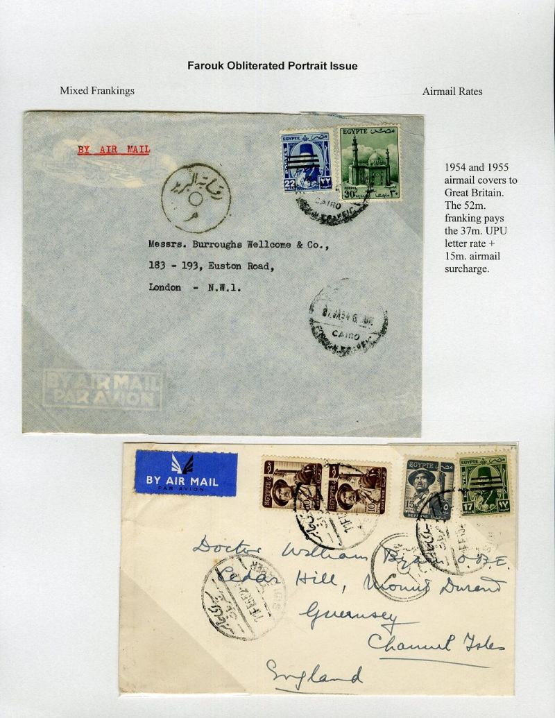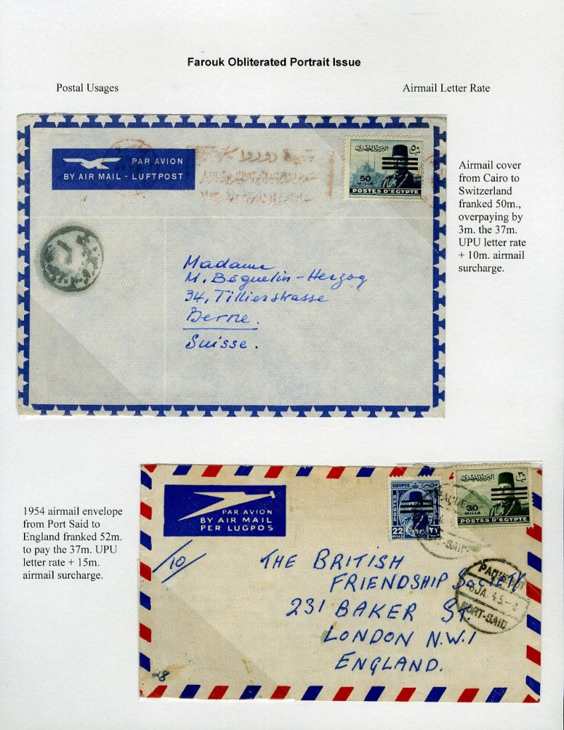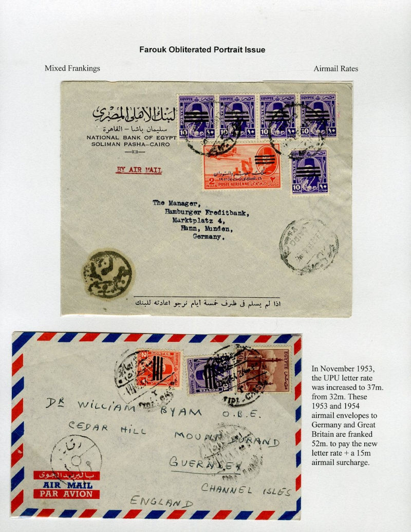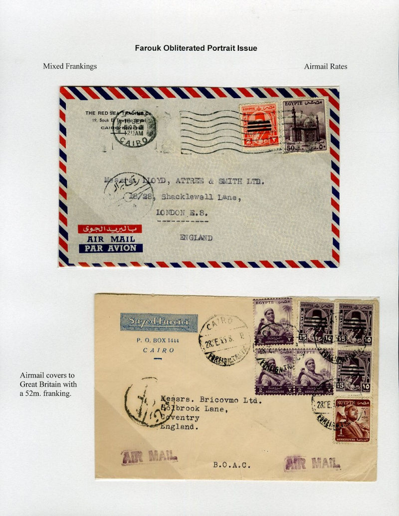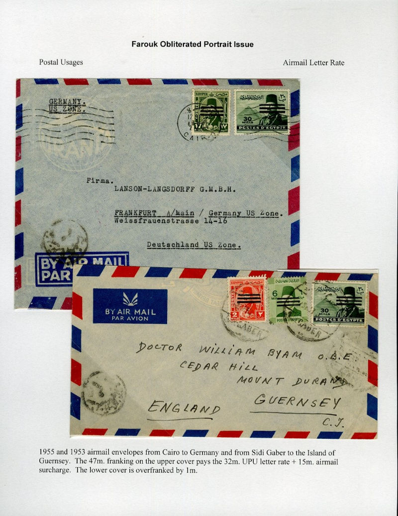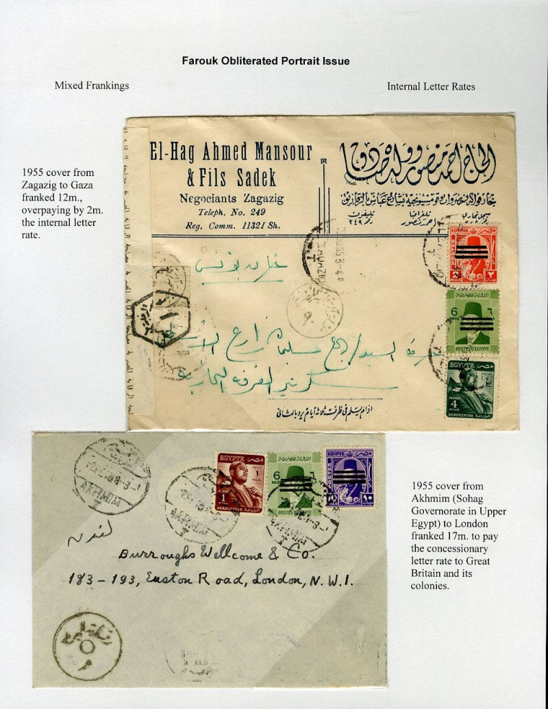 1310 c   imageLARGE LOTS AND COLLECTIONS EGYPT - Covers and Postal History 1953 Farouk Obliterated Portrait Issue, collection of 60+ covers or cards franked with the 1m-100m Bar-overprinted definitives and Air Post stamps, mounted on exhibit pages, showing a wide range of frankings, uncommon destinations, postal markings, etc. (Image) (Image 2) (Image 3) (Image 4) (Image 5) (Image 6) (Image 7) (Image 8) (Image 9) (Image 10) (Image 11) (Image 12) (Image 13) (Image 14) (Image 15) (Image 16) (Image 17) (Image 18) (Image 19) (Image 20) (Image 21) (Image 22) (Image 23) (Image 24) (Image 25) (Image 26) (Image 27) (Image 28) (Image 29) (Image 30) (Image 31) (Image 32) (Image 33) (Image 34) (Image 35) (All Images)