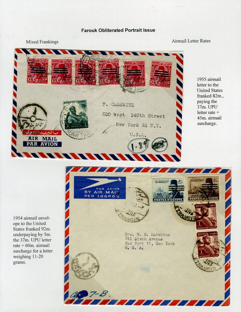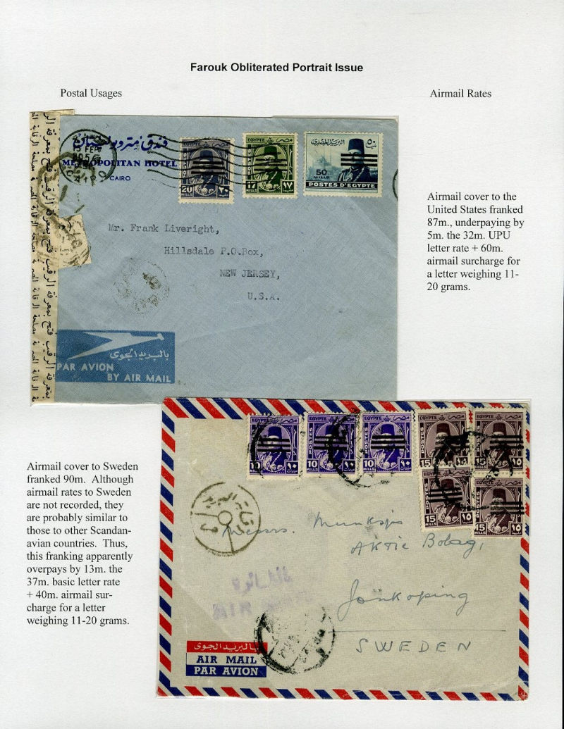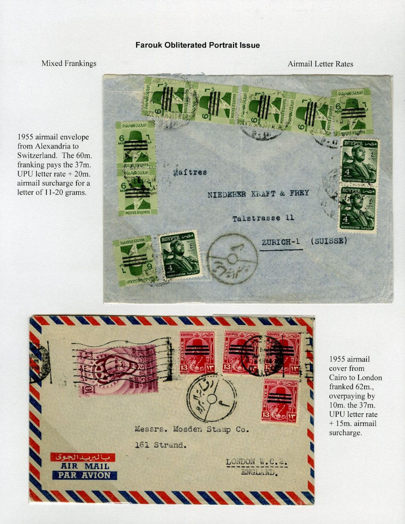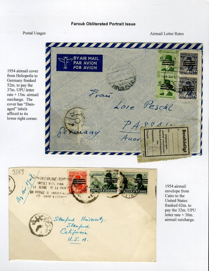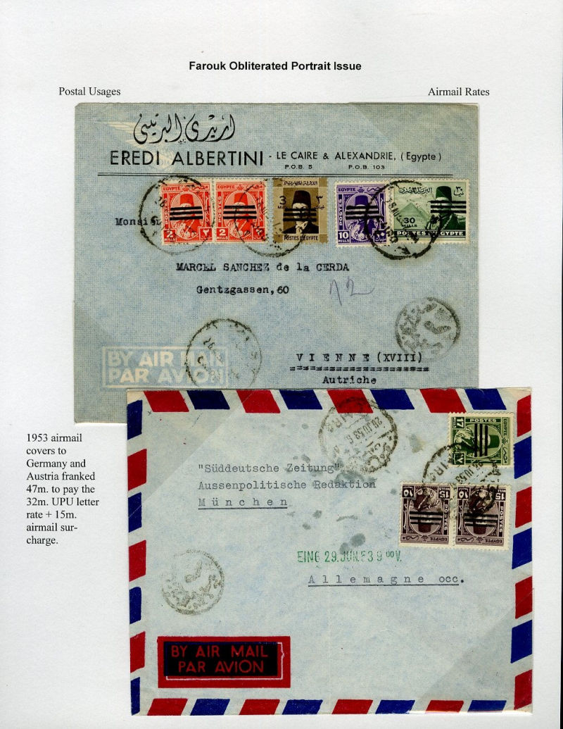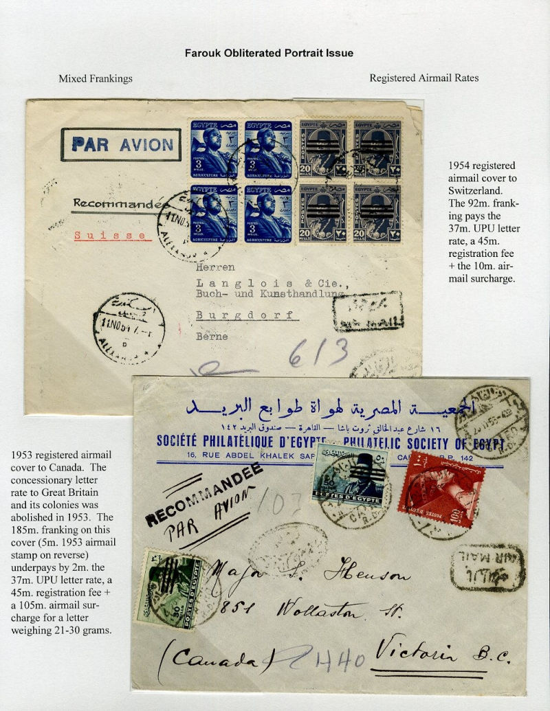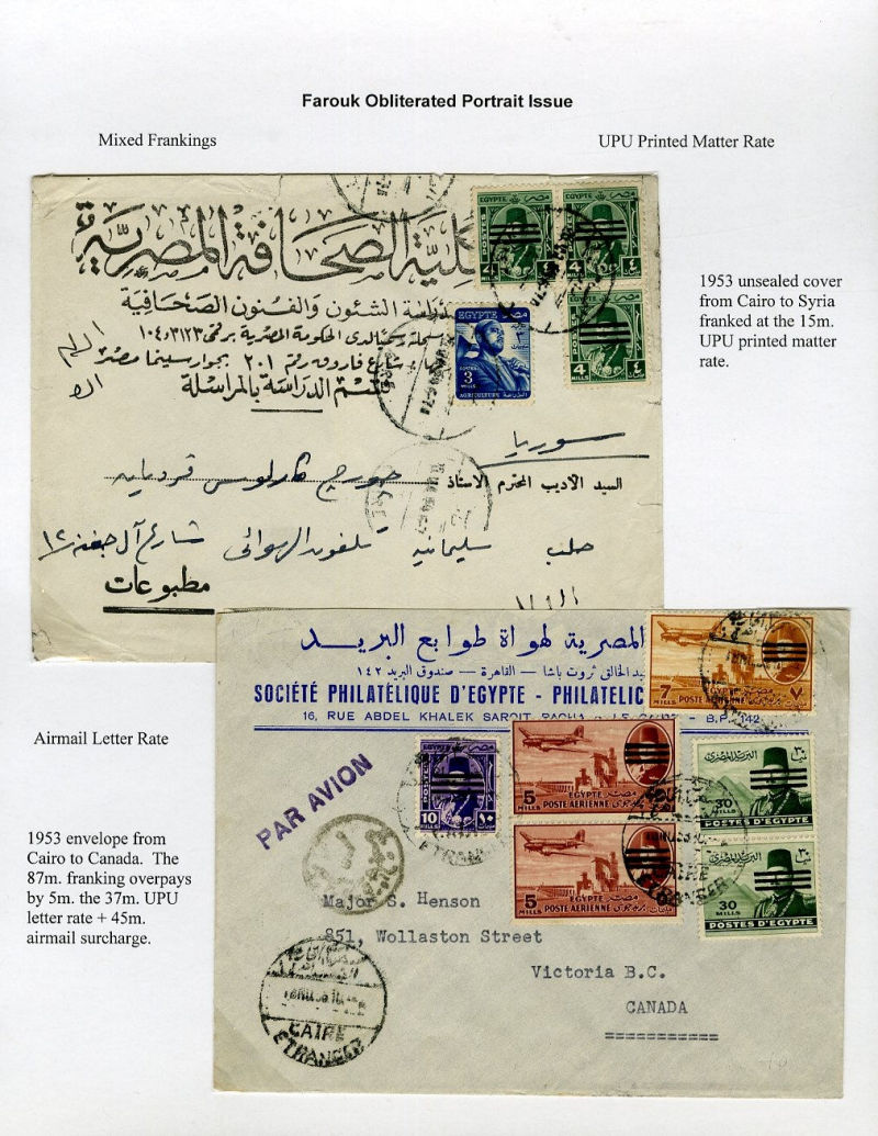 1310 c   imageLARGE LOTS AND COLLECTIONS EGYPT - Covers and Postal History 1953 Farouk Obliterated Portrait Issue, collection of 60+ covers or cards franked with the 1m-100m Bar-overprinted definitives and Air Post stamps, mounted on exhibit pages, showing a wide range of frankings, uncommon destinations, postal markings, etc. (Image) (Image 2) (Image 3) (Image 4) (Image 5) (Image 6) (Image 7) (Image 8) (Image 9) (Image 10) (Image 11) (Image 12) (Image 13) (Image 14) (Image 15) (Image 16) (Image 17) (Image 18) (Image 19) (Image 20) (Image 21) (Image 22) (Image 23) (Image 24) (Image 25) (Image 26) (Image 27) (Image 28) (Image 29) (Image 30) (Image 31) (Image 32) (Image 33) (Image 34) (Image 35) (All Images)