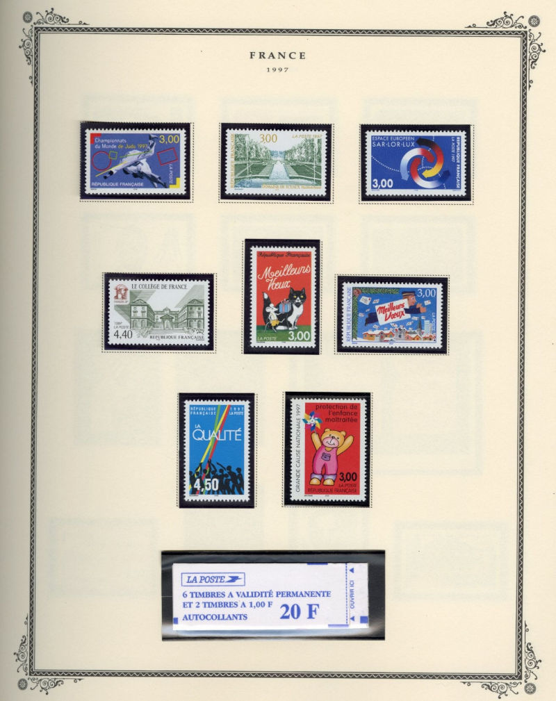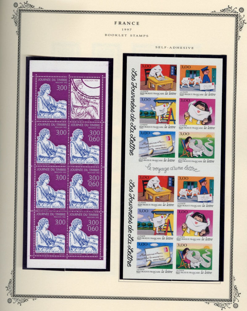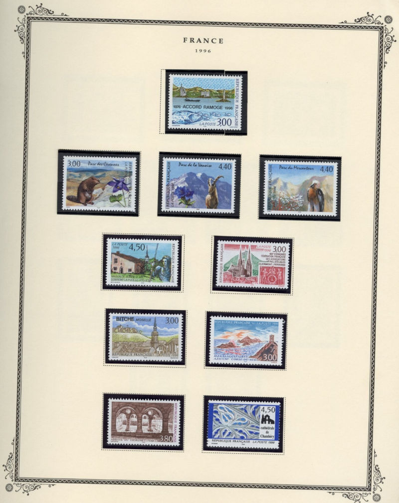 1319 nh   imageLARGE LOTS AND COLLECTIONS FRANCE 1996-2005 collection on Scott album pages, issues mostly complete with special souvenir sheets, booklets, "La Poste" sheetlets, etc., n.h., considerable face value (Image) (Image 2) (Image 3) (Image 4) (All Images)