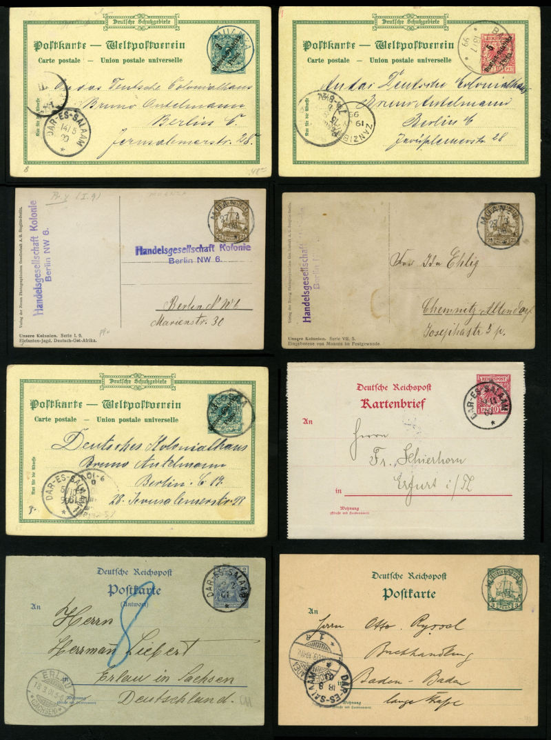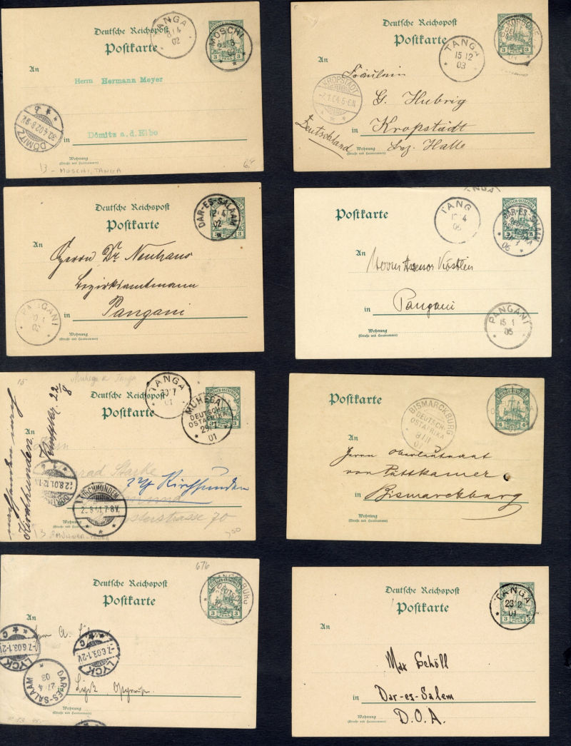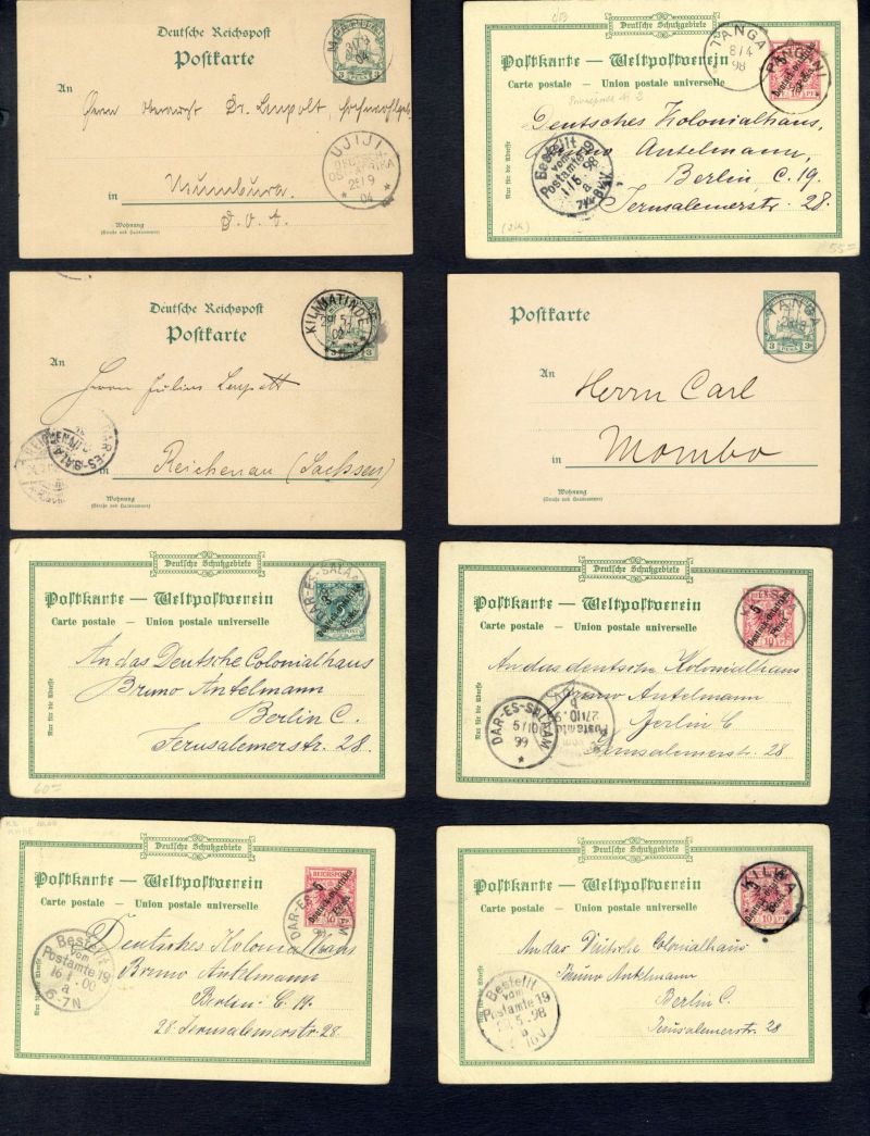 Ujiji, Kilimatinde, Moschi, Muhega, Korogwe, sent mostly to Germany, some duplication, also two additional German stationery cards used from Dar-Es-Salaam, fine group