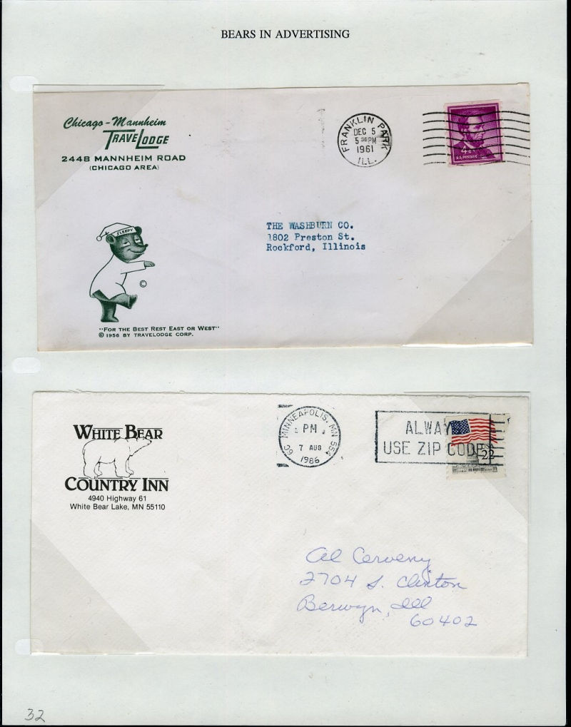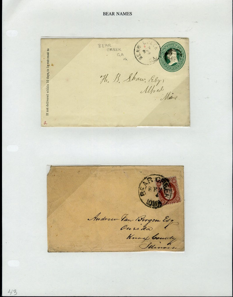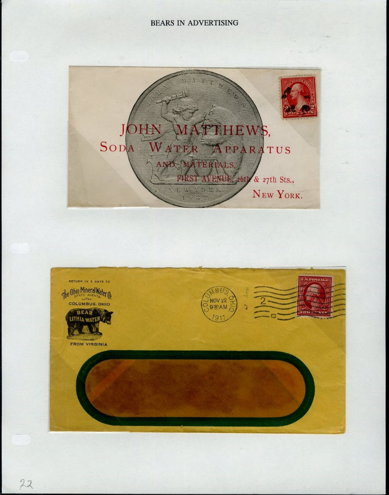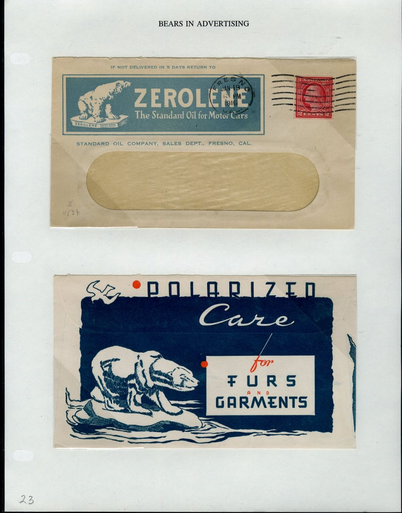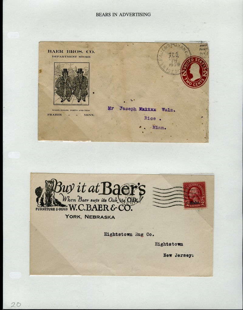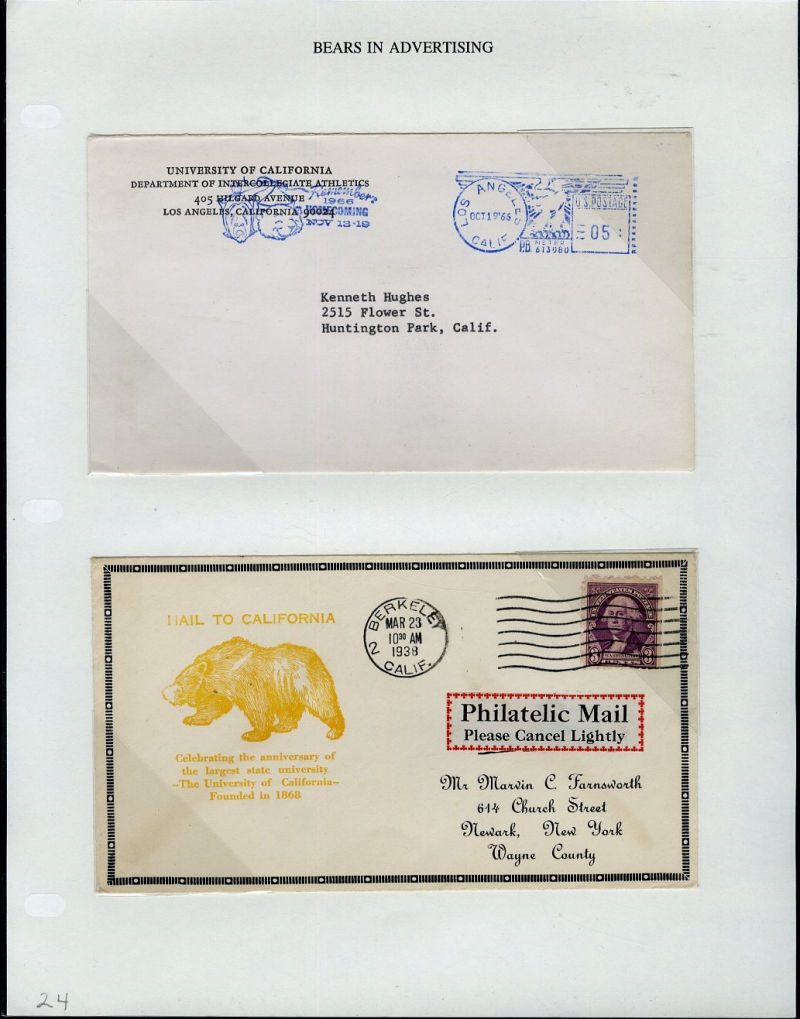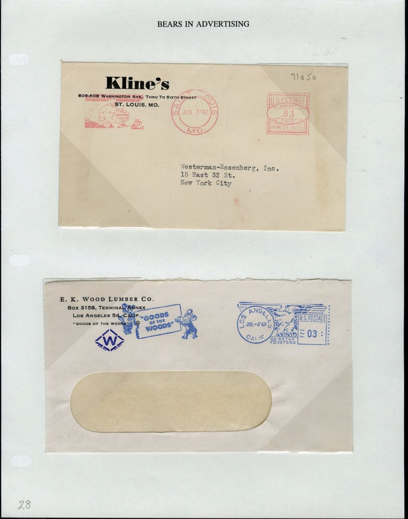 1066 c   imageLARGE LOTS AND COLLECTIONS UNITED STATES - Covers and Postal History 1865-1991 "Bears on Stamps", balance of Richard Drews'' exhibit, with Bears in advertising covers, Meter Mail, also Bear names (Bear Valley, Bear River, Bear (Ark), Grizzly Flats, Bear River, U.S.S. Bear, Bear Springs, plus many others), mixed condition, interesting and difficult to assemble (Image) (Image 2) (Image 3) (Image 4) (Image 5) (Image 6) (Image 7) (Image 8) (Image 9) (Image 10) (Image 11) (Image 12) (Image 13) (Image 14) (Image 15) (Image 16) (Image 17) (Image 18) (Image 19) (Image 20) (Image 21) (Image 22) (Image 23) (Image 24) (Image 25) (Image 26) (Image 27) (Image 28) (Image 29) (Image 30) (Image 31) (Image 32) (All Images)