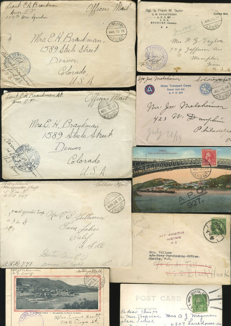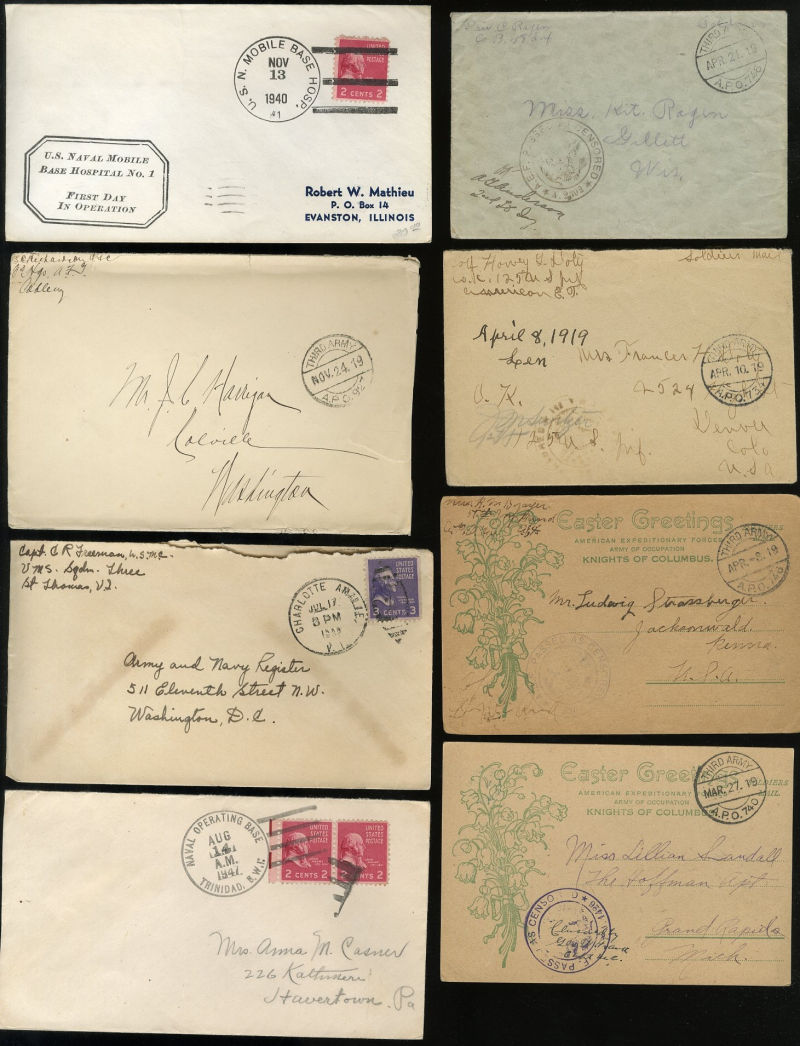 1067 c   imageLARGE LOTS AND COLLECTIONS UNITED STATES - Covers and Postal History 1900s-1940s box with hundreds of covers and cards, U.S. in WWI and WWII, propaganda cards, Naval Mail, censored and APOs, flights, etc., mixed condition, many better items, generally fine or better, ex-Al Kugel (Image) (Image 2) (Image 3) (Image 4) (Image 5) (Image 6) (Image 7) (Image 8) (Image 9) (Image 10) (Image 11) (Image 12) (Image 13) (Image 14) (Image 15) (Image 16) (Image 17) (Image 18) (Image 19) (Image 20) (Image 21) (Image 22) (Image 23) (Image 24) (Image 25) (Image 26) (Image 27) (Image 28) (Image 29) (Image 30) (All Images)