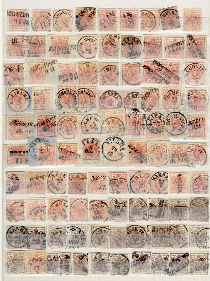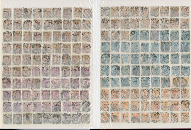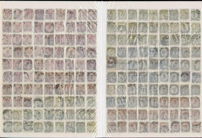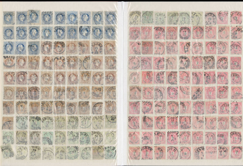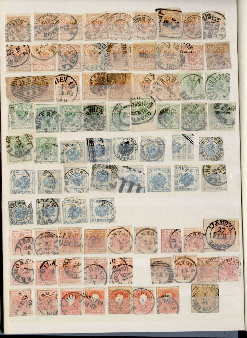 1071 O   imageLARGE LOTS AND COLLECTIONS AUSTRIA 1850-1914 collection/accumulation of 2,500+ used singles, First Imperforate and later perforated Franz Josef issues, neatly displayed in a stock book, some Lombardy-Venetia, Postage Dues, Newspaper stamps, etc., excellent group for a collector of postmarks of the Austro-Hungarian Empire (Image) (Image 2) (Image 3) (Image 4) (Image 5) (Image 6) (Image 7) (Image 8) (Image 9) (Image 10) (Image 11) (Image 12) (Image 13) (Image 14) (Image 15) (Image 16) (Image 17) (All Images)