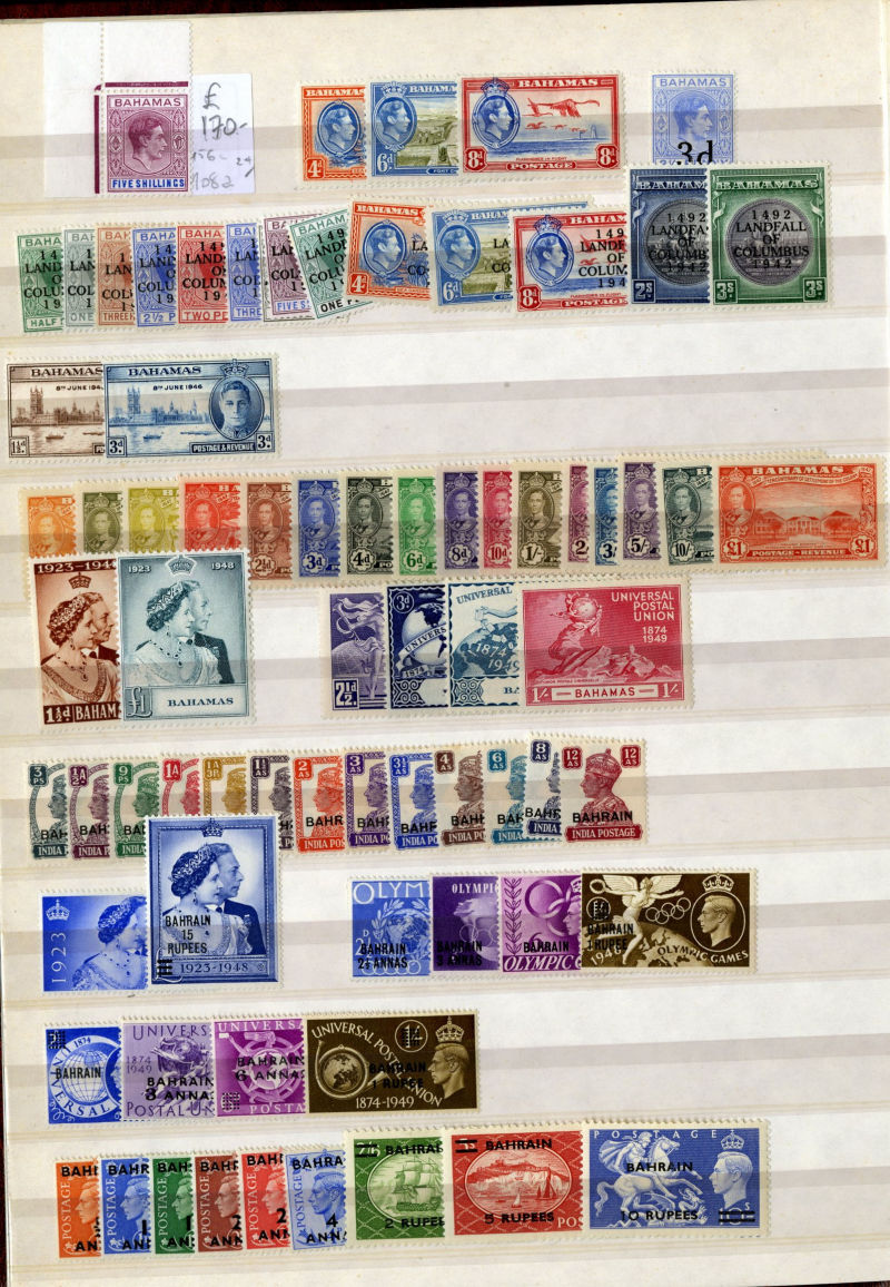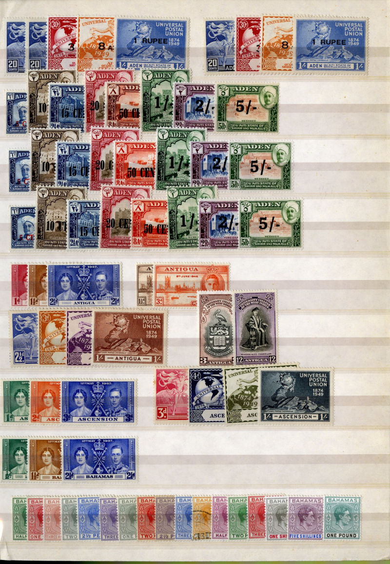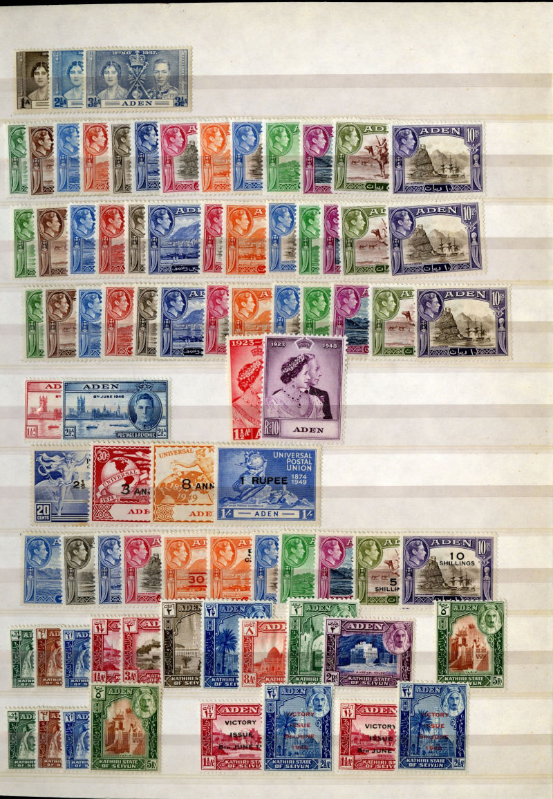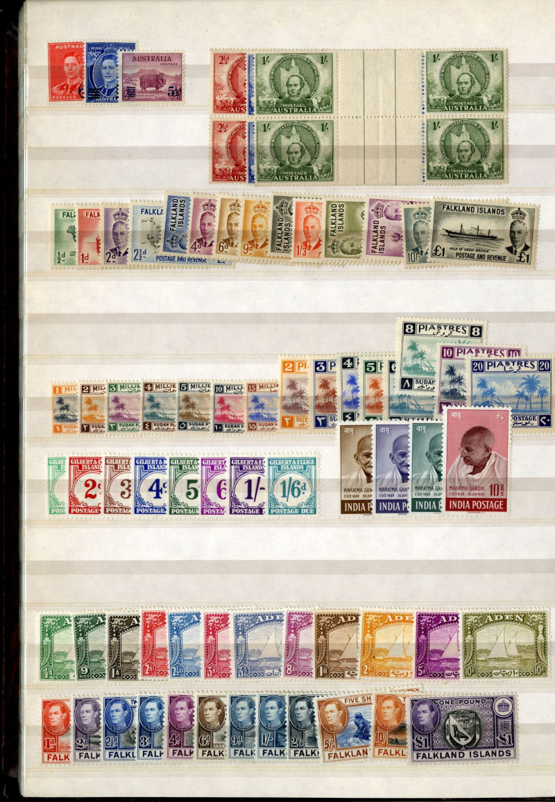 1074 og, nh   imageLARGE LOTS AND COLLECTIONS BRITISH COMMONWEALTH 1935-55 Australia-Zanzibar, selection of better sets (mostly definitives) and some singles in stock book, usually 1-5 of each, with better items including Aden Dhow set, Falkland Islands George VI (5), India Gandhi set (l.h.), plus many others, generally l.h., but some n.h., occasional used, fine-v.f., SG £15,850+ (Image) (Image 2) (Image 3) (Image 4) (Image 5) (Image 6) (Image 7) (Image 8) (Image 9) (Image 10) (Image 11) (Image 12) (Image 13) (Image 14) (Image 15) (Image 16) (Image 17) (Image 18) (Image 19) (Image 20) (Image 21) (All Images)