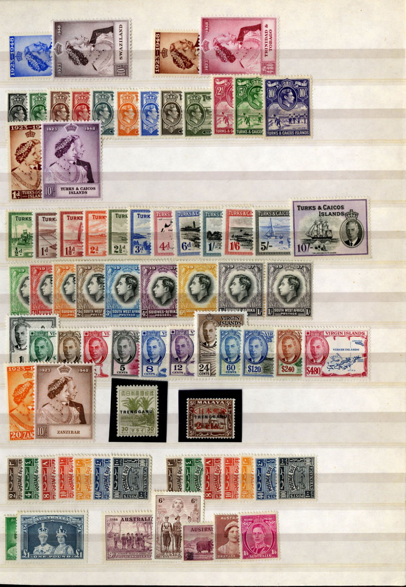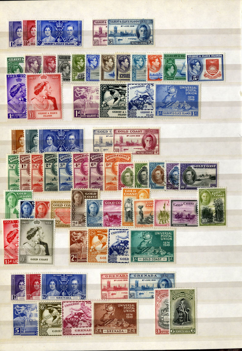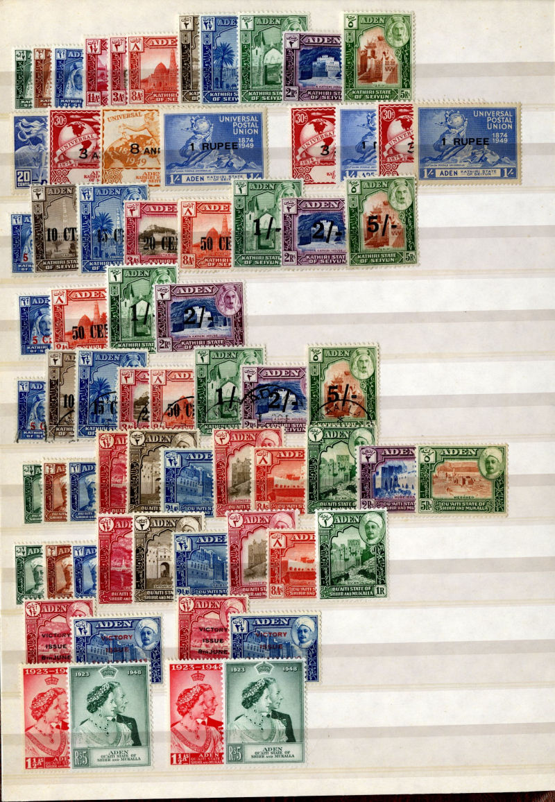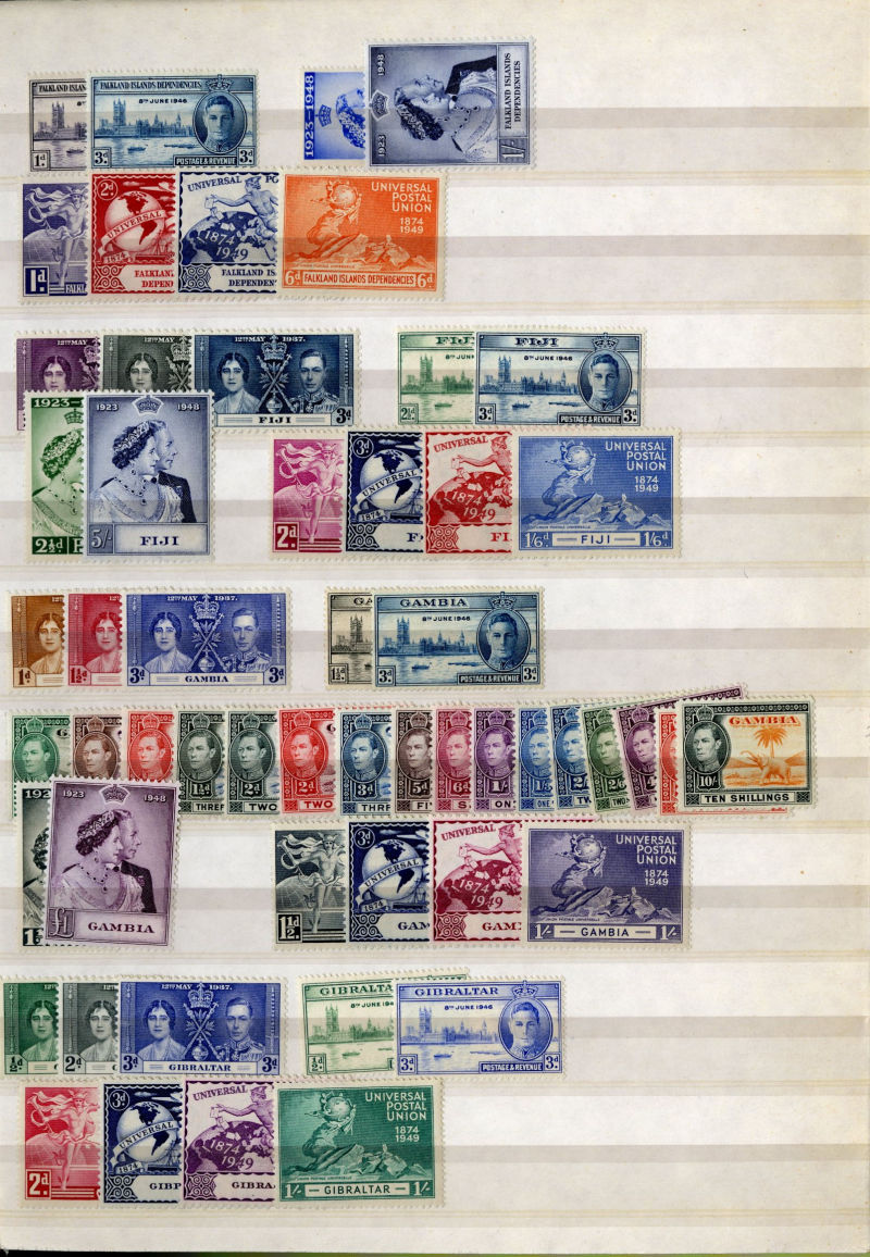 1074 og, nh   imageLARGE LOTS AND COLLECTIONS BRITISH COMMONWEALTH 1935-55 Australia-Zanzibar, selection of better sets (mostly definitives) and some singles in stock book, usually 1-5 of each, with better items including Aden Dhow set, Falkland Islands George VI (5), India Gandhi set (l.h.), plus many others, generally l.h., but some n.h., occasional used, fine-v.f., SG £15,850+ (Image) (Image 2) (Image 3) (Image 4) (Image 5) (Image 6) (Image 7) (Image 8) (Image 9) (Image 10) (Image 11) (Image 12) (Image 13) (Image 14) (Image 15) (Image 16) (Image 17) (Image 18) (Image 19) (Image 20) (Image 21) (All Images)