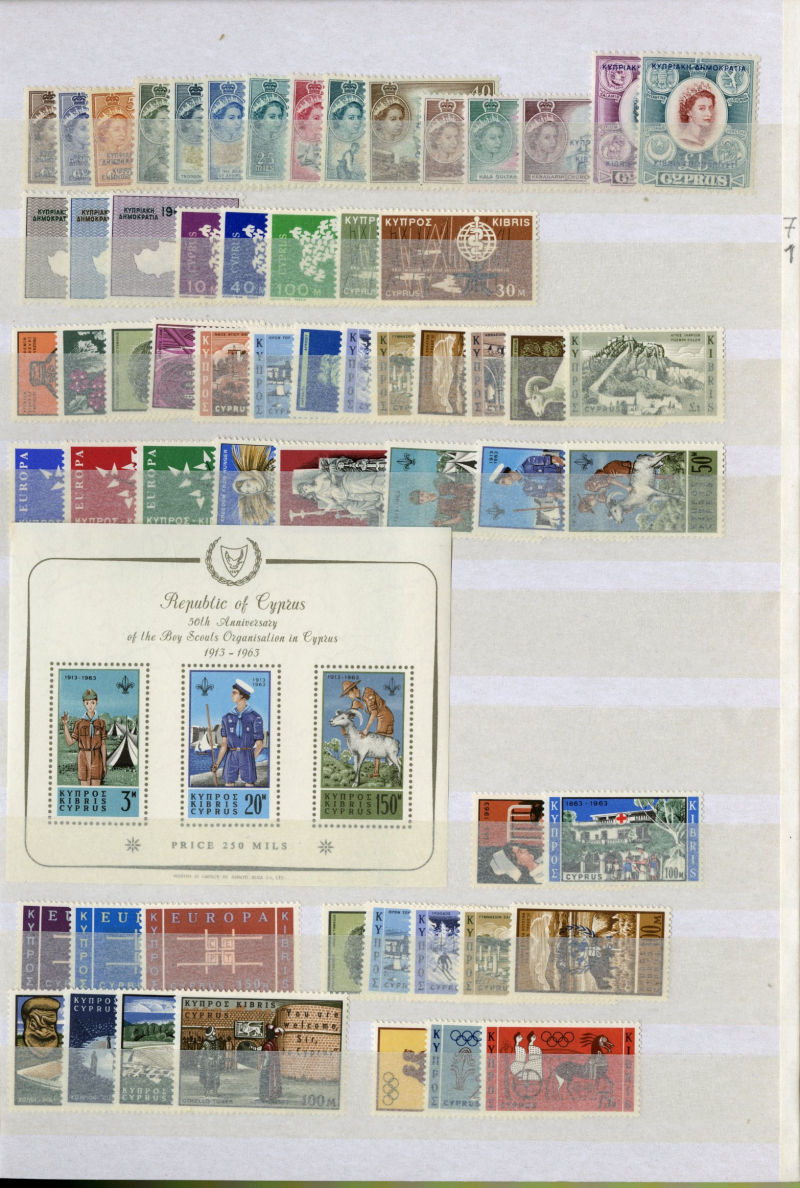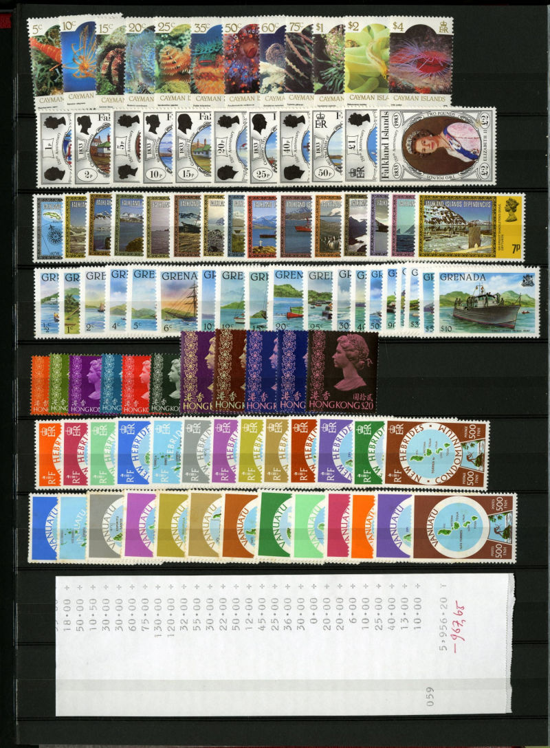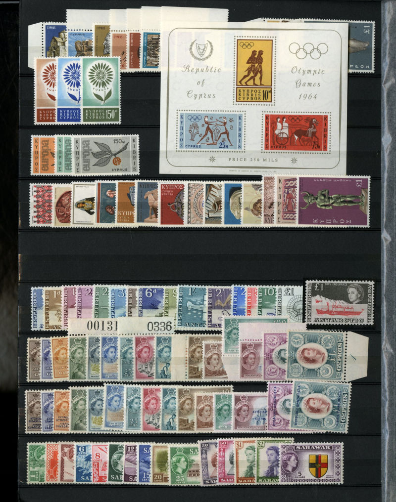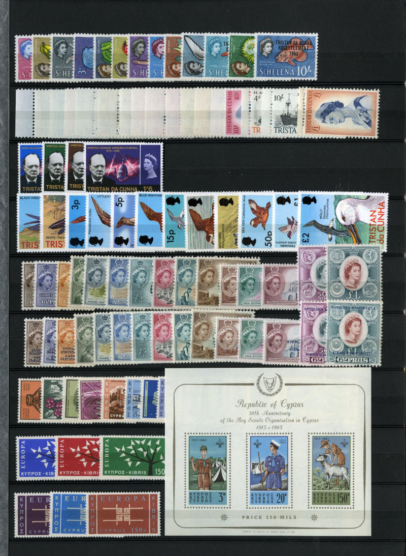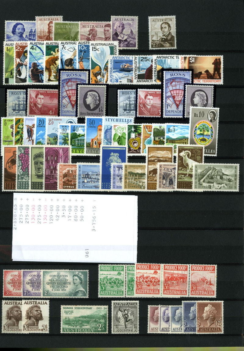 1075 nh   imageLARGE LOTS AND COLLECTIONS BRITISH COMMONWEALTH 1950-70 Australia-Tristan da Cunha, selection of mostly complete sets in stock book, usually 1-5 of each, with better definitive sets from various Colonies, Cyprus, Falkland Islands, Fiji, Hong Kong and many others, generally n.h., fine-v.f., SG £9,000+ (Image) (Image 2) (Image 3) (Image 4) (Image 5) (Image 6) (Image 7) (Image 8) (Image 9) (Image 10) (Image 11) (Image 12) (Image 13) (Image 14) (Image 15) (Image 16) (Image 17) (Image 18) (Image 19) (Image 20) (All Images)