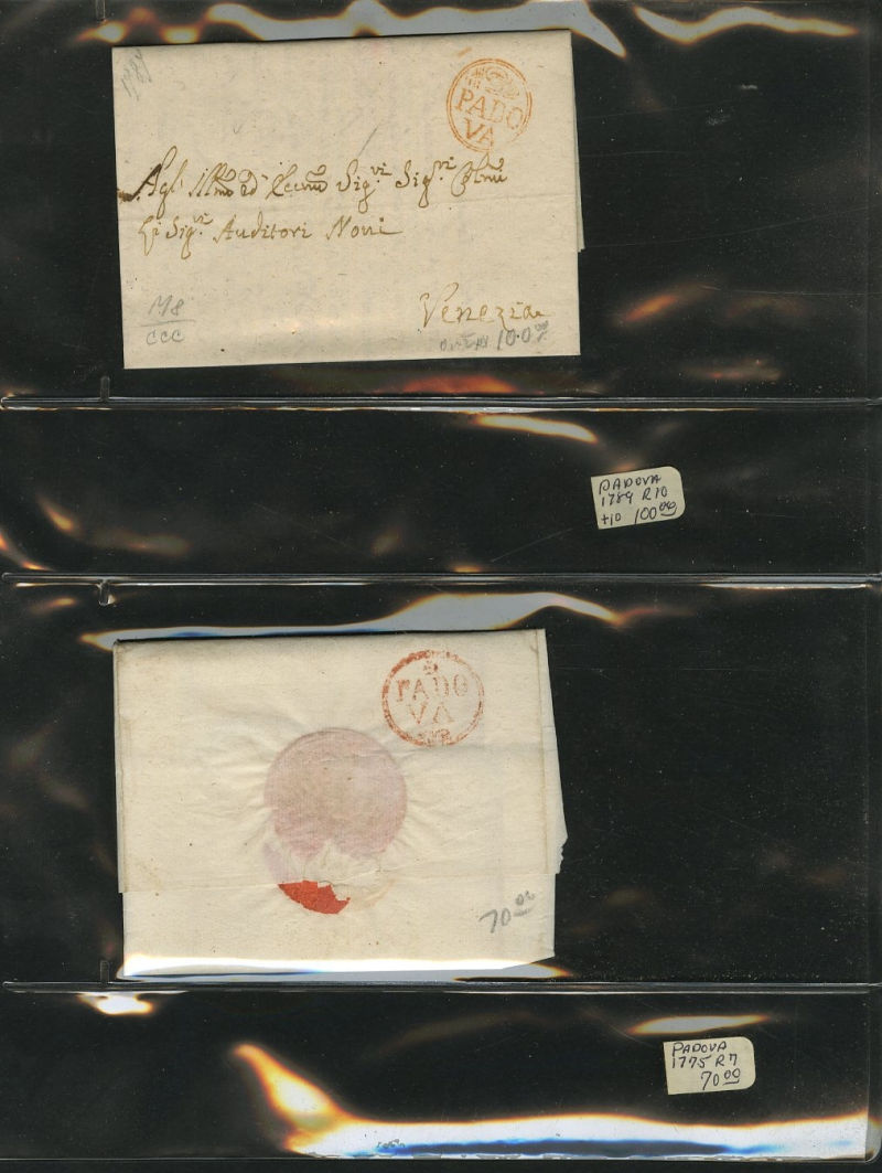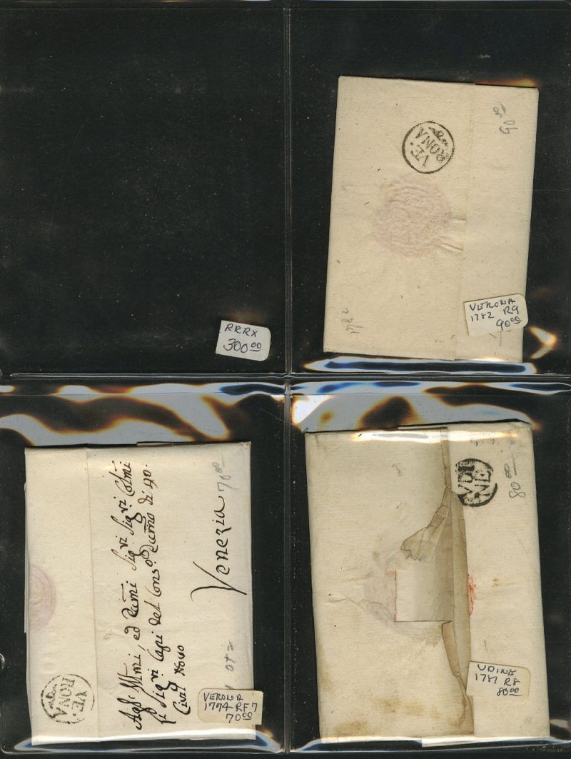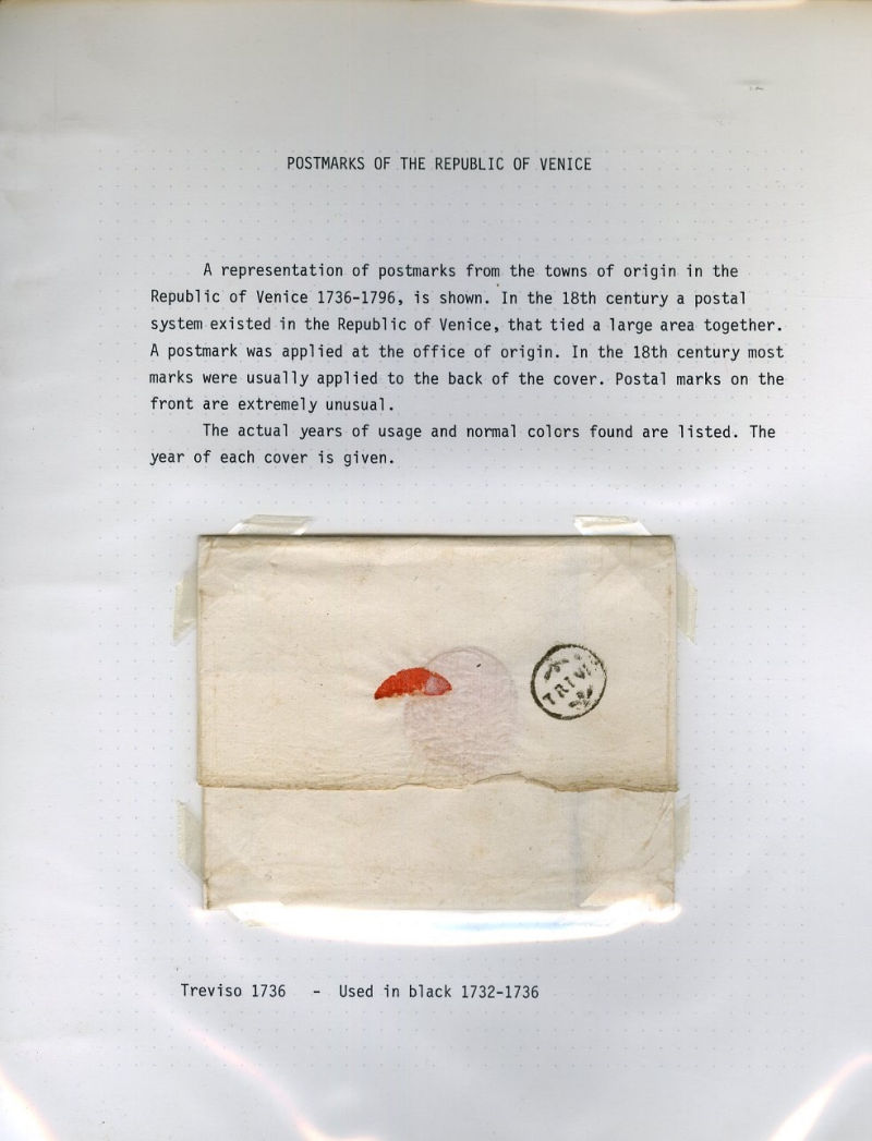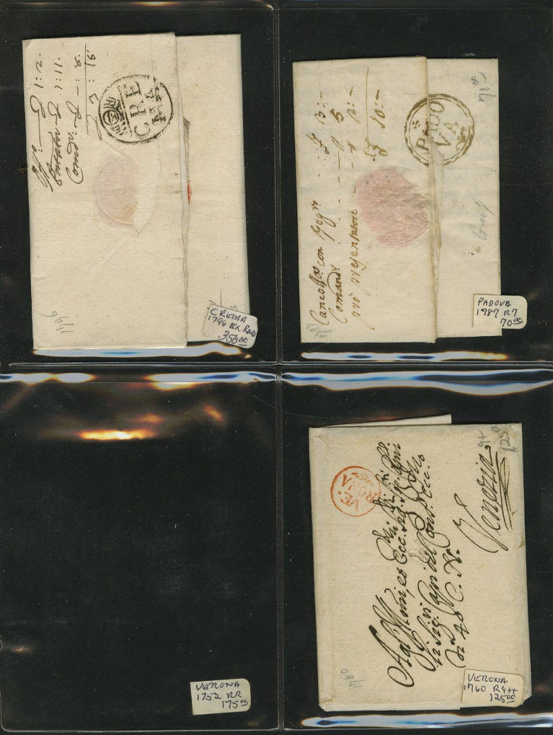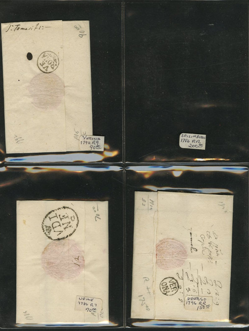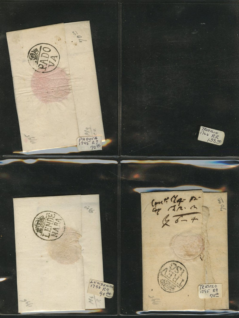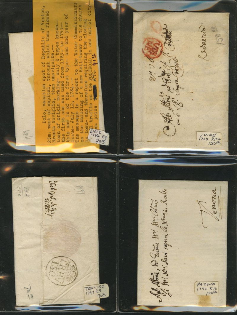 1142 c   imageLARGE LOTS AND COLLECTIONS ITALIAN STATES 1736-96 Venetian Republic, postal history collection of 100+ FLs with a study of postmarks incl. Treviso, Chioggia (red), Cologna, Este, Feltre (red), Lendinara, Porogruaro (red), Splimbergo (red), Stra (red), Padova, Rovigo, Udine, Vicenza, San Vito, Verona and many others, some elaborate and beautiful markings, generally fresh and fine (Image) (Image 2) (Image 3) (Image 4) (Image 5) (Image 6) (Image 7) (Image 8) (Image 9) (Image 10) (Image 11) (Image 12) (Image 13) (Image 14) (All Images)