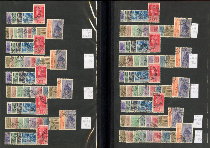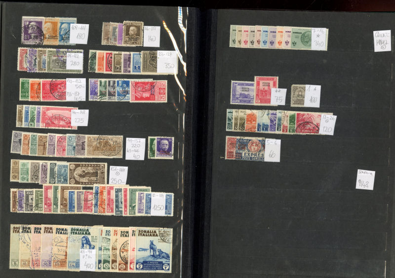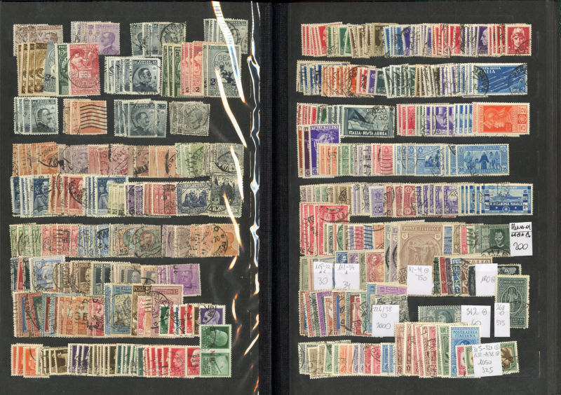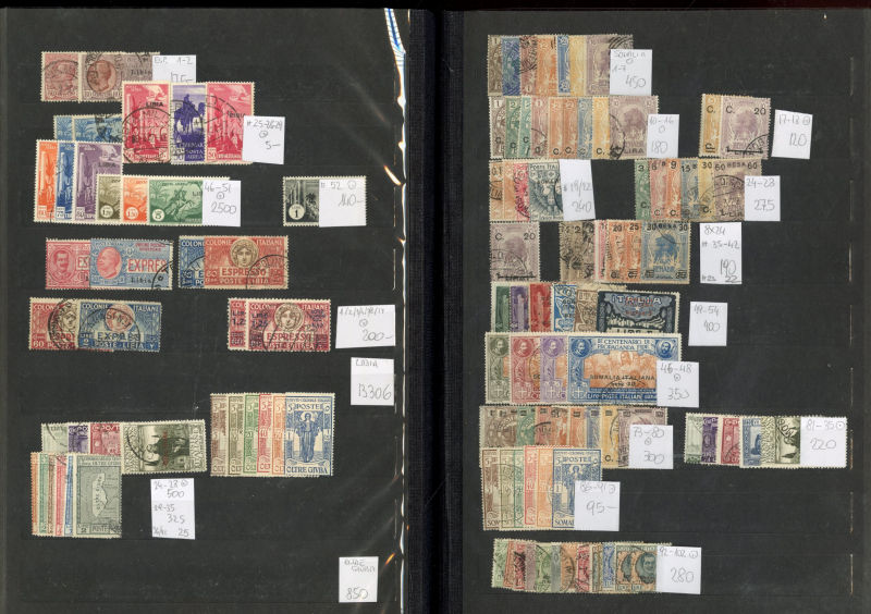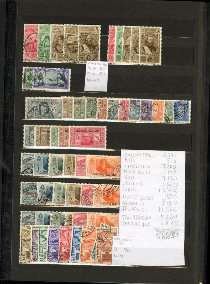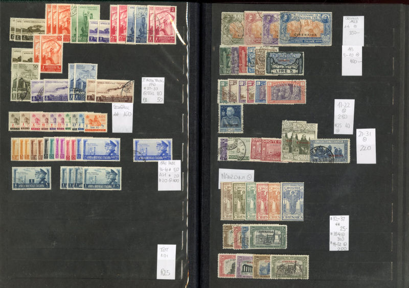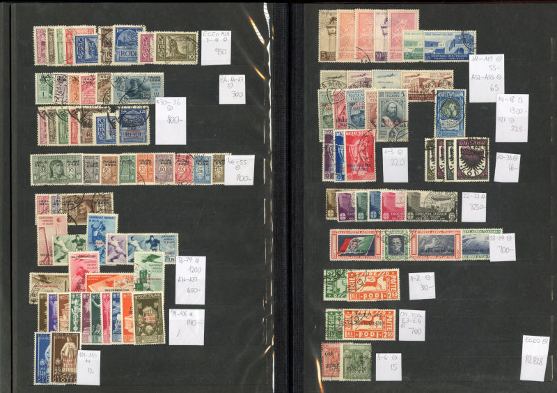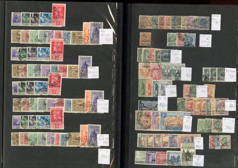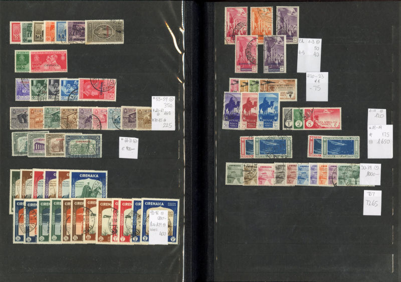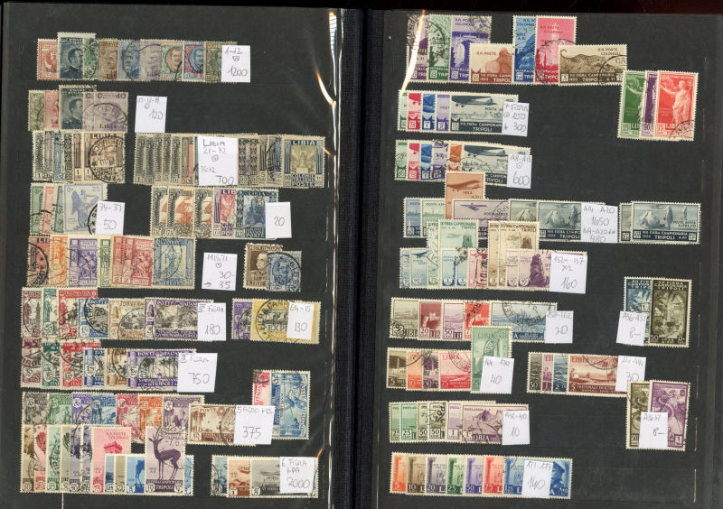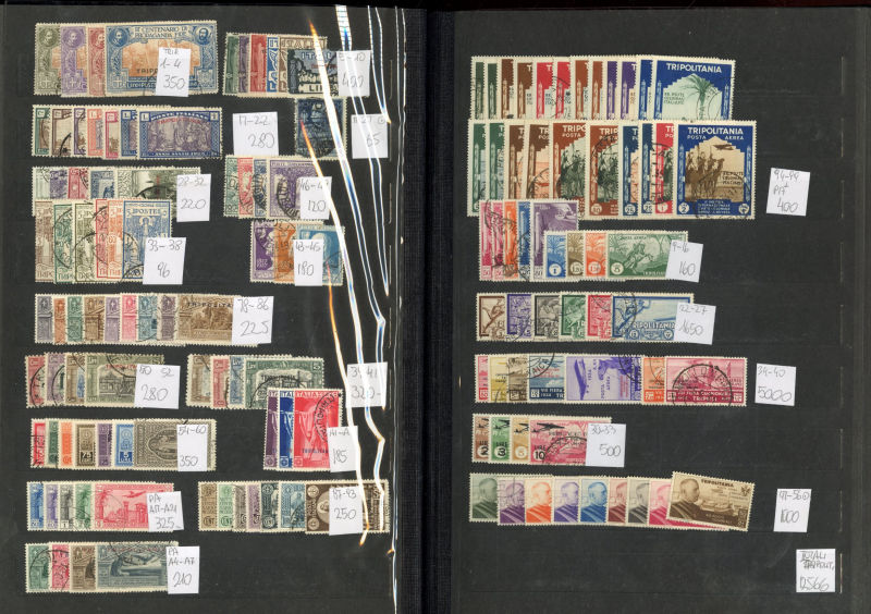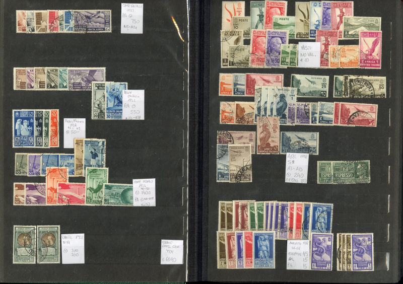 1143 O   imageLARGE LOTS AND COLLECTIONS ITALY AND COLONIES 1920s-40s collection/accumulation of mostly used singles and sets in stock book, some duplication, Aegean Islands Garibaldi issue, Cyrenaica, Tripolitania, pre-WWII Italy, Football sets, various overprints, Air Post, Postage Dues, Special Delivery, some San Marino, etc., many uncounted, mixed condition, collected many years ago, offered AS IS, Sass. Euro 85,000+ (Image) (Image 2) (Image 3) (Image 4) (Image 5) (Image 6) (Image 7) (Image 8) (Image 9) (Image 10) (Image 11) (Image 12) (Image 13) (Image 14) (Image 15) (Image 16) (All Images)