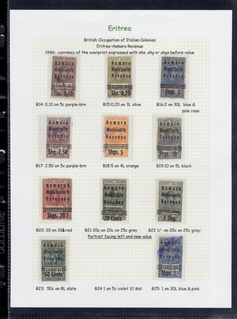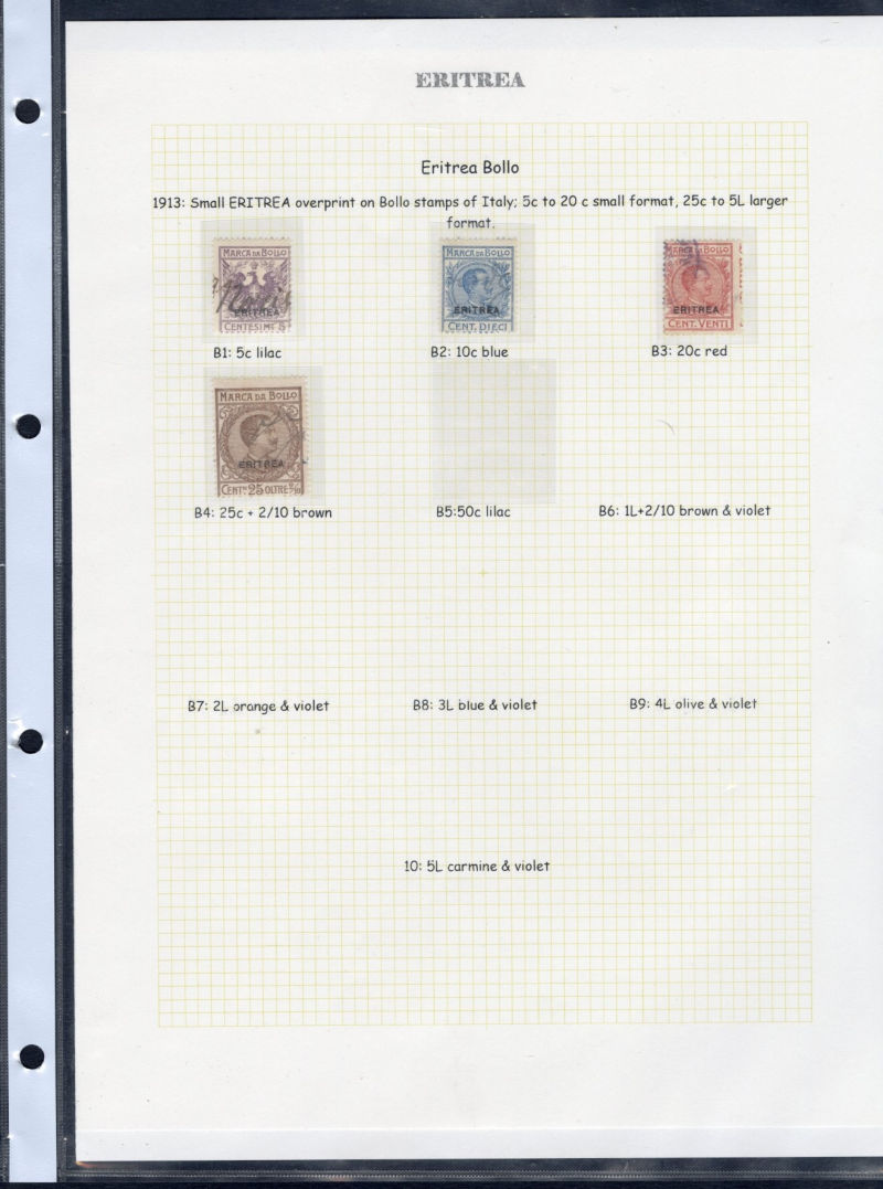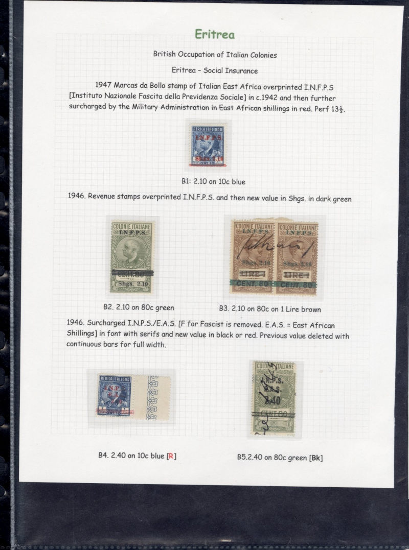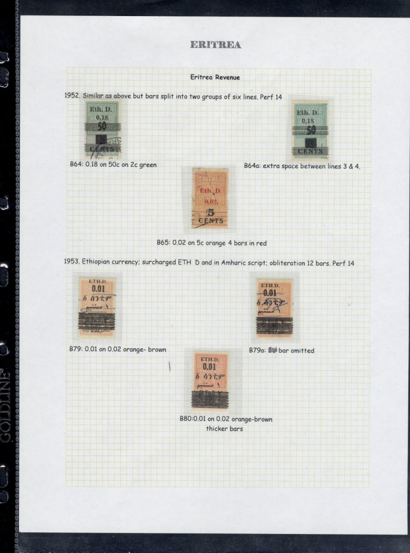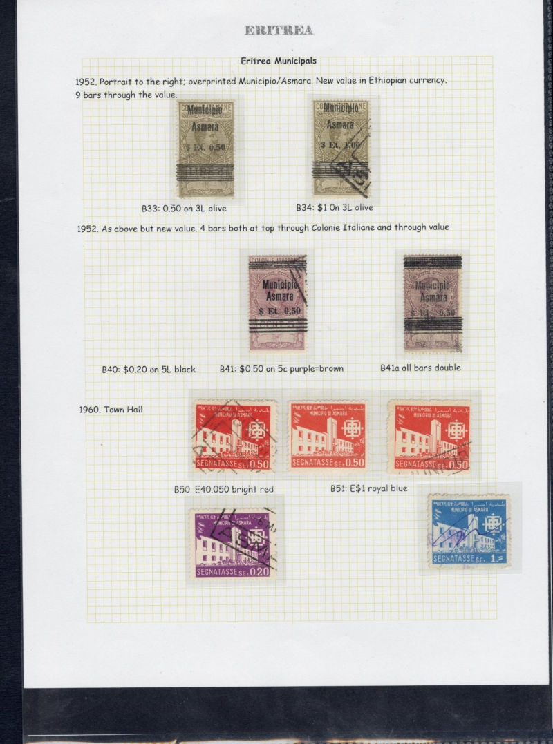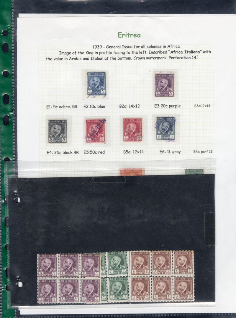 1147 O, og   imageLARGE LOTS AND COLLECTIONS ITALIAN COLONIES Revenue Stamps 1896-1961 Eritrea, collection on pages, used and unused values to 50 Lire, occasional multiples, documents, "Tassa Camerale Polizze de Carico" (Chamber of Commerce Tax Bills of Lading), Eritrea Municipal Tax, Automobile Tax, overprinted "A.O.I.", British Occupation "Eritrean Inland Revenue", values in East African Shillings, later issues with portrait of Haile Selassie, etc., scarce lot (2013 Barefoot catalogue £4,500+, not counting documents or multiples) (Image) (Image 2) (Image 3) (Image 4) (Image 5) (Image 6) (Image 7) (Image 8) (Image 9) (Image 10) (Image 11) (Image 12) (Image 13) (Image 14) (Image 15) (Image 16) (Image 17) (Image 18) (Image 19) (Image 20) (Image 21) (Image 22) (Image 23) (Image 24) (Image 25) (Image 26) (Image 27) (Image 28) (Image 29) (Image 30) (Image 31) (Image 32) (Image 33) (Image 34) (All Images)