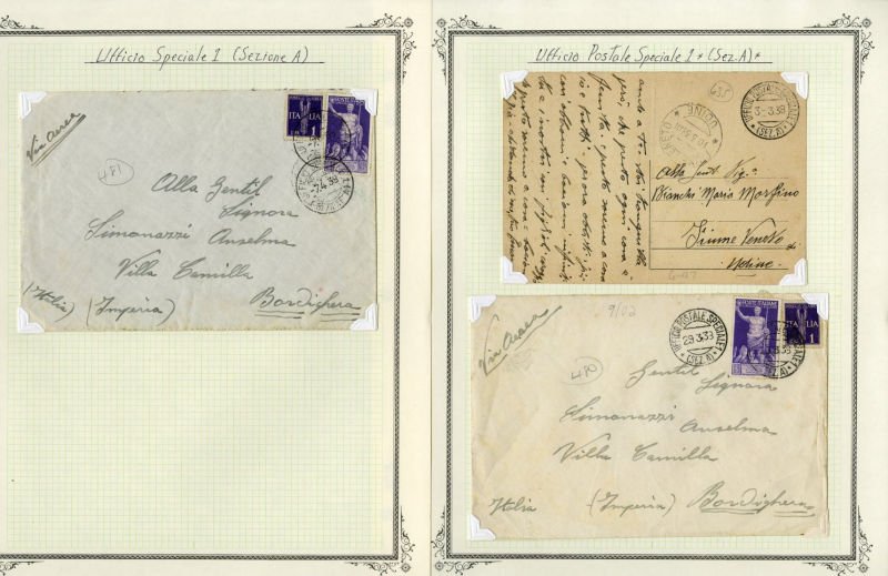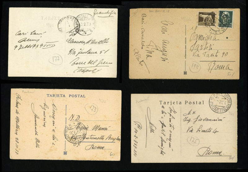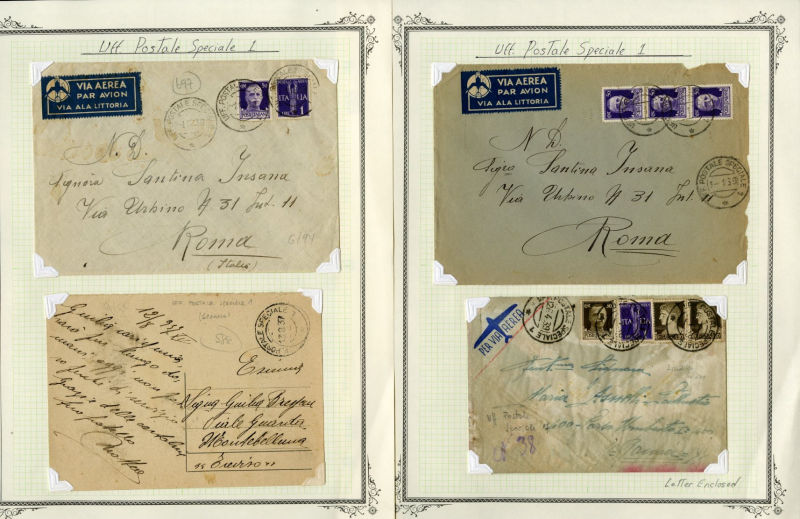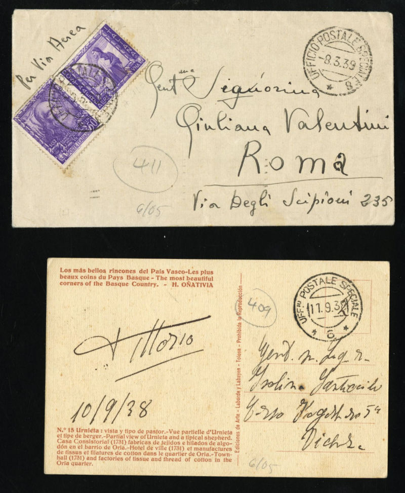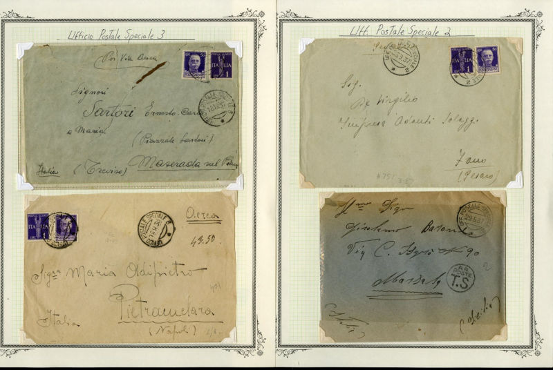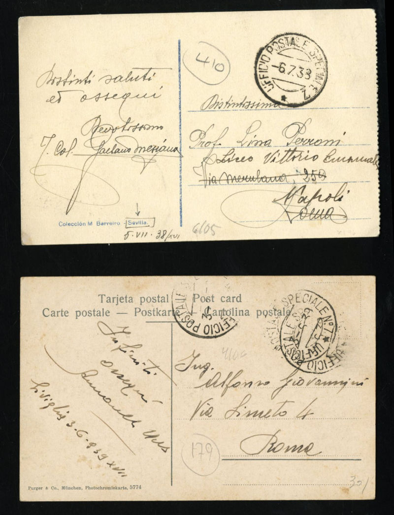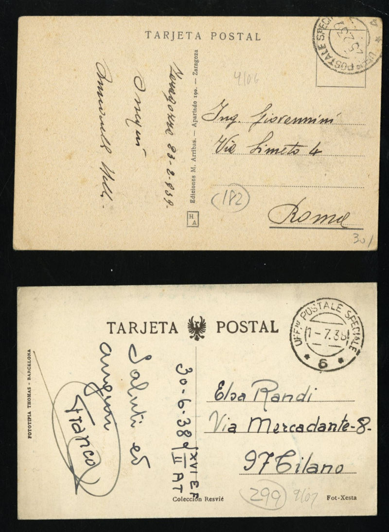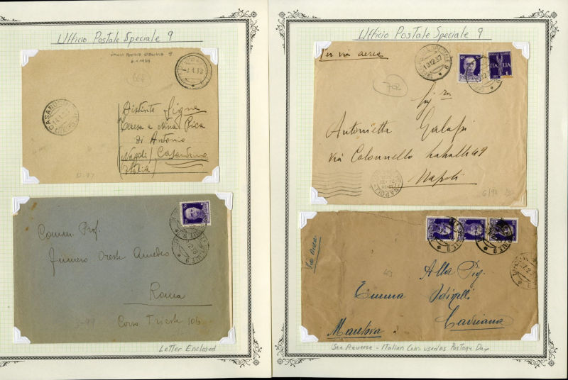1145 c   imageLARGE LOTS AND COLLECTIONS ITALY - Covers and Postal History Military Mail 1937-42 Italian "volunteers" during the Spanish Civil War, collection of 65+ covers and cards, with different "Ufficio Postal Speciale" (1-11) markings from Spain to Italy, mostly with Italian franking (occasional internal usage), or free-frank (some charged postage due on arrival), also WWII "Servizio Speciale M.I.S" (Italian Mission in Spain), some censor markings, postal stationery and picture postcards, mixed condition, interesting lot (Image) (Image 2) (Image 3) (Image 4) (Image 5) (Image 6) (Image 7) (Image 8) (Image 9) (Image 10) (Image 11) (Image 12) (Image 13) (Image 14) (Image 15) (Image 16) (Image 17) (Image 18) (Image 19) (Image 20) (Image 21) (Image 22) (Image 23) (Image 24) (All Images)