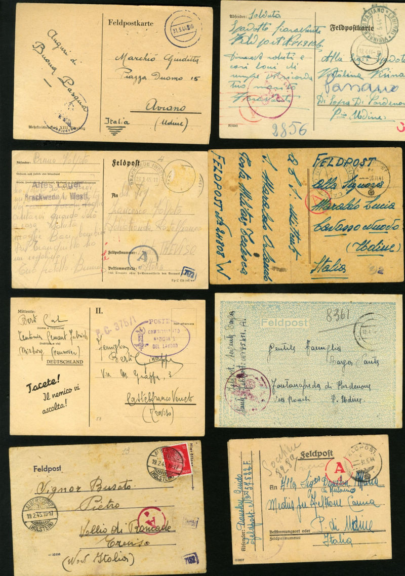 1146 c   imageLARGE LOTS AND COLLECTIONS ITALY - Covers and Postal History Military Mail 1944-45 collection of 58 covers or cards from Italian soldiers to their families, with German Army Fieldpost markings, few prisoner of war letters, variety of censor and official hs, mixed condition, mostly fine and interesting lot (Image) (Image 2) (Image 3) (Image 4) (Image 5) (All Images)