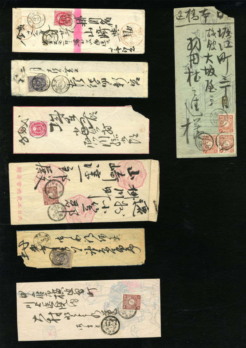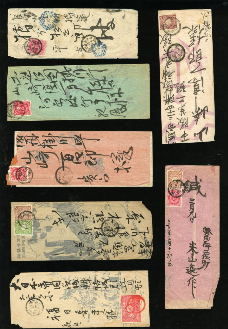 1151 c   imageLARGE LOTS AND COLLECTIONS JAPAN - Covers and Postal History 1890s correspondence of 69 covers franked mostly with 2s rose, many with lovely hand painted artwork inserts, some illustrated on the outside, others with advertising inside; also four French covers used 1925-33 to Japan or Korea, generally fine-v.f. and attractive group (Image) (Image 2) (Image 3) (Image 4) (Image 5) (All Images)