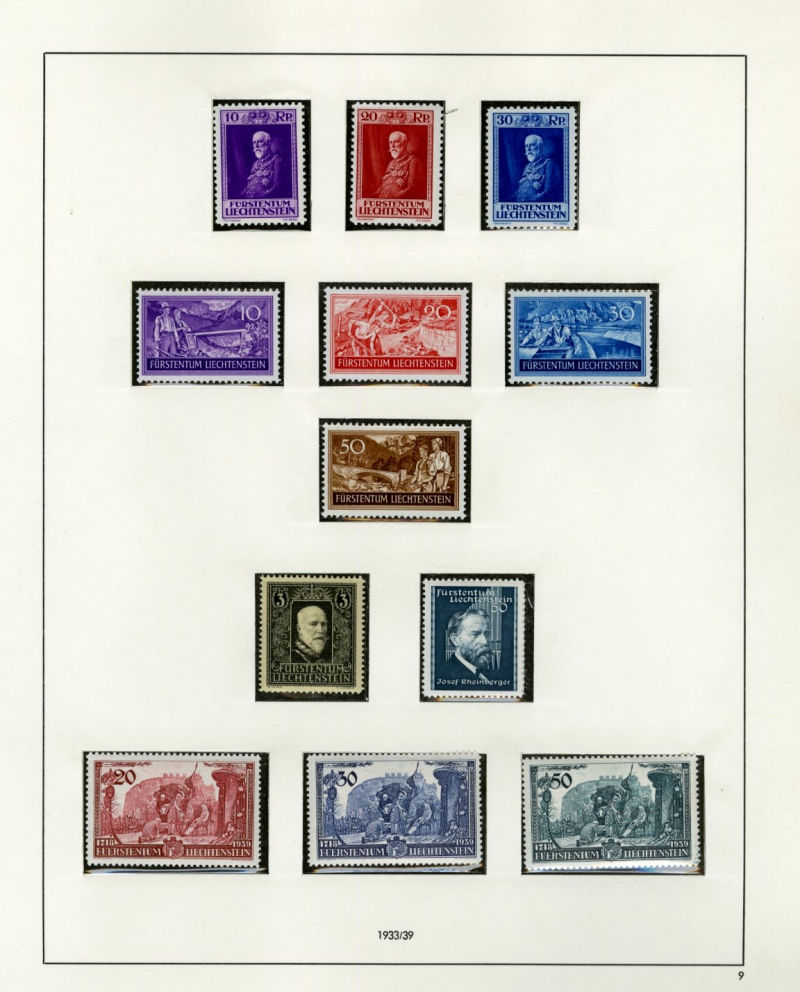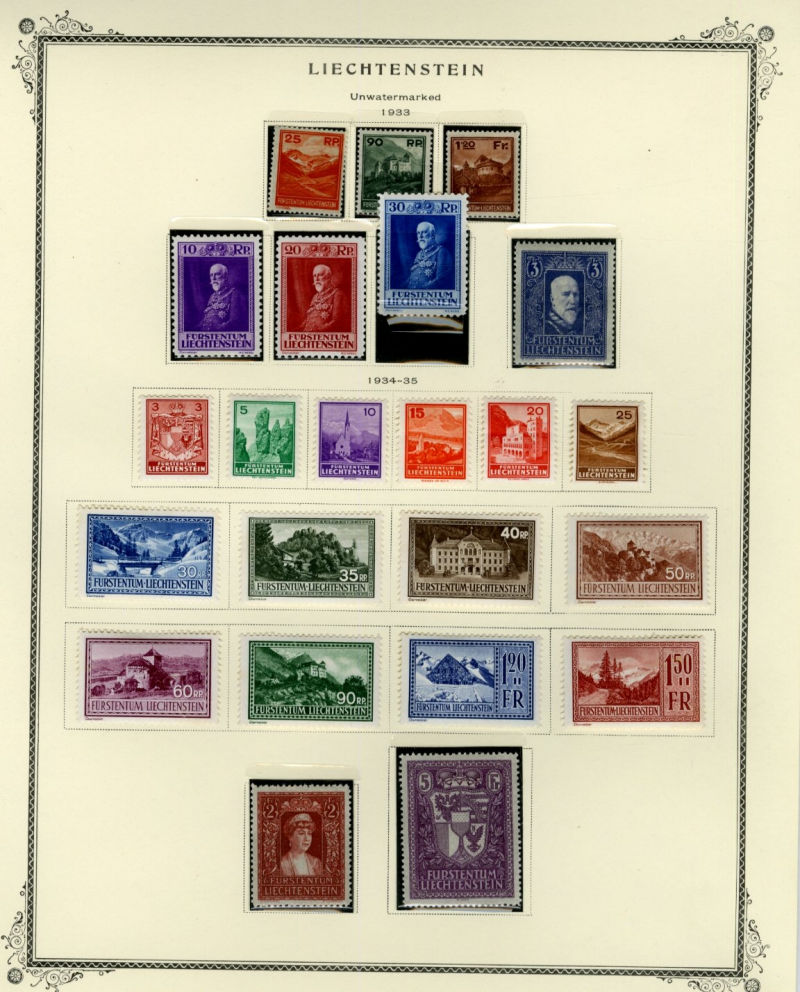1155 og, nh, bl   imageLARGE LOTS AND COLLECTIONS LIECHTENSTEIN (1/673,C1-37,O1-58) 1912-79 collection on Scott album pages, mostly complete (missing the Vaduz souvenir sheet), with commemorative sets, values to 10fr, Air Post, Officials, Postage Dues, sheetlets including 10fr Madonna (171), Air Post sheetlets of nine (C26-33), plus more, some duplication, fine-v.f. (Image) (Image 2) (Image 3) (Image 4) (Image 5) (Image 6) (All Images)