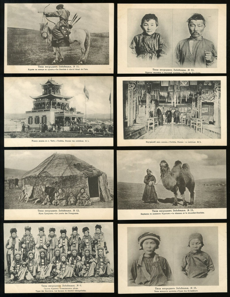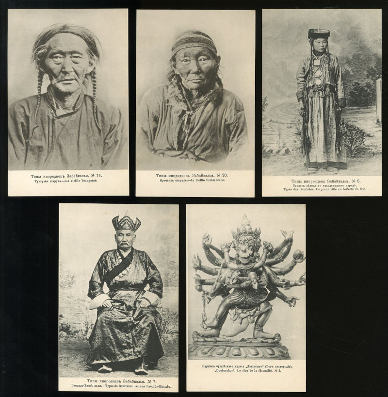 1187 c   imageLARGE LOTS AND COLLECTIONS RUSSIA - Covers and Postal History 1918 Russian Far East. "Zabaikal" types (Buryats, Tunguz, etc.), complete set of 20 unused picture postcards, numbered 1-20, photographs by A.K.Kuznetsov (Chita), mostly fine-v.f., rare set (Image) (Image 2) (Image 3) (All Images)