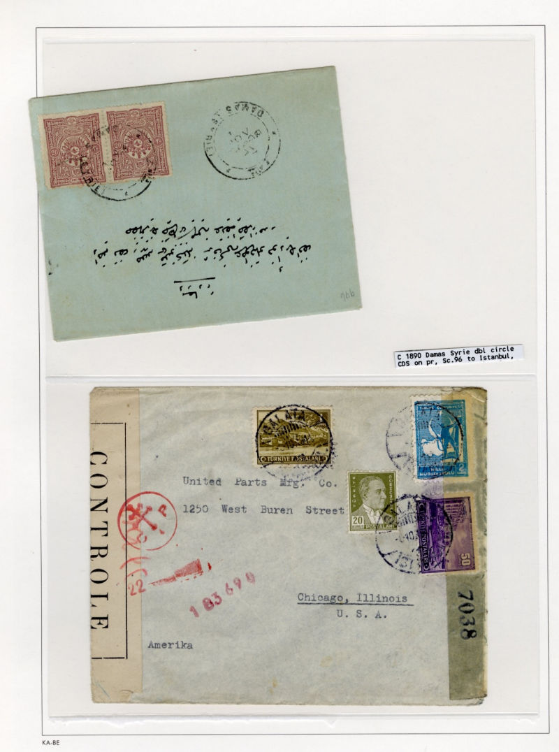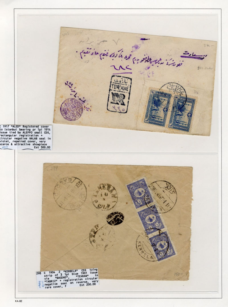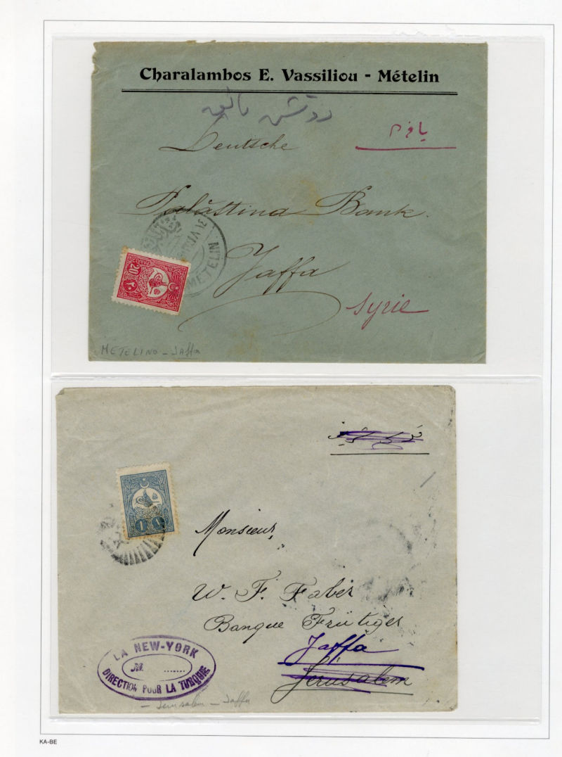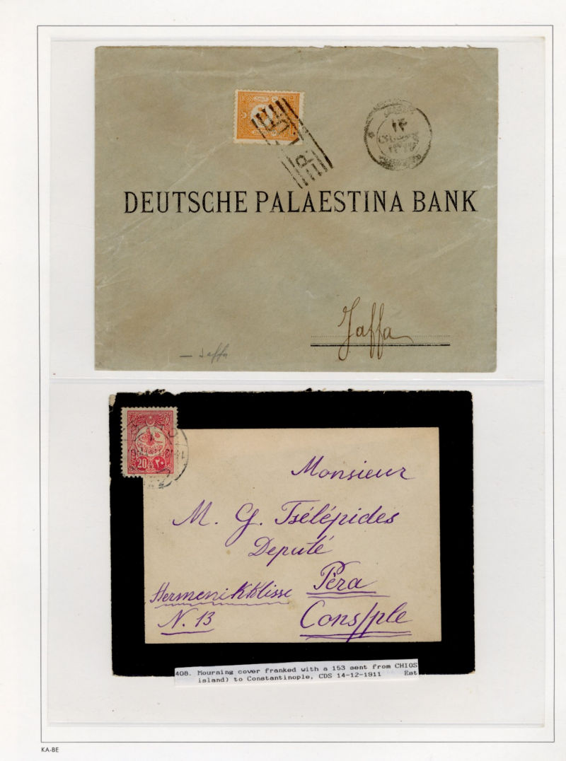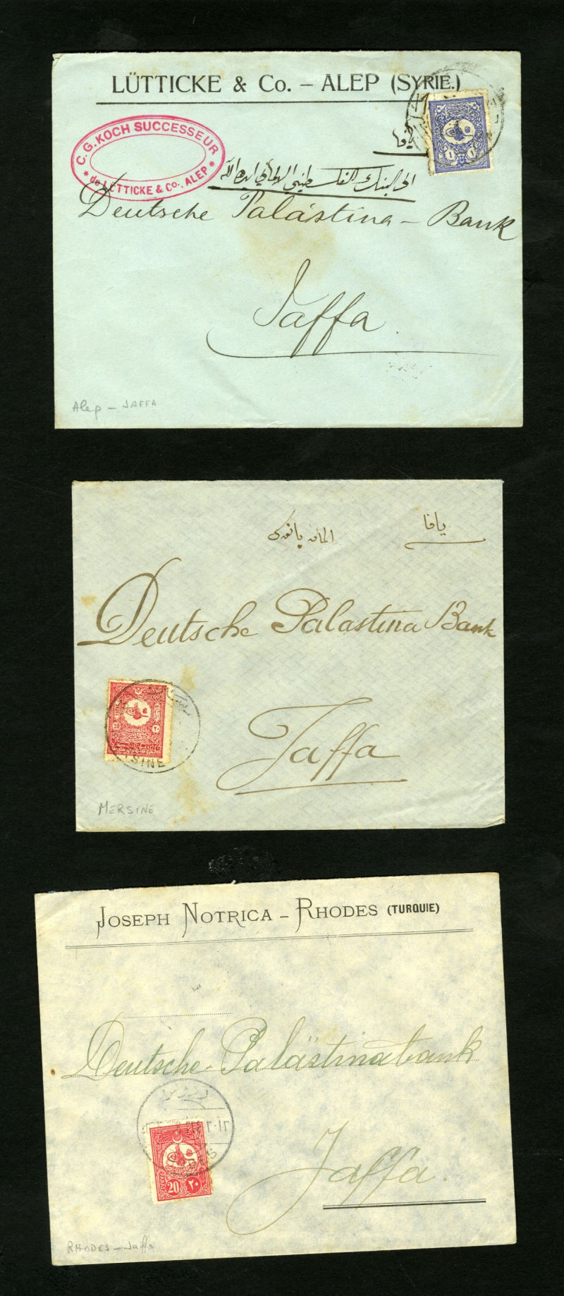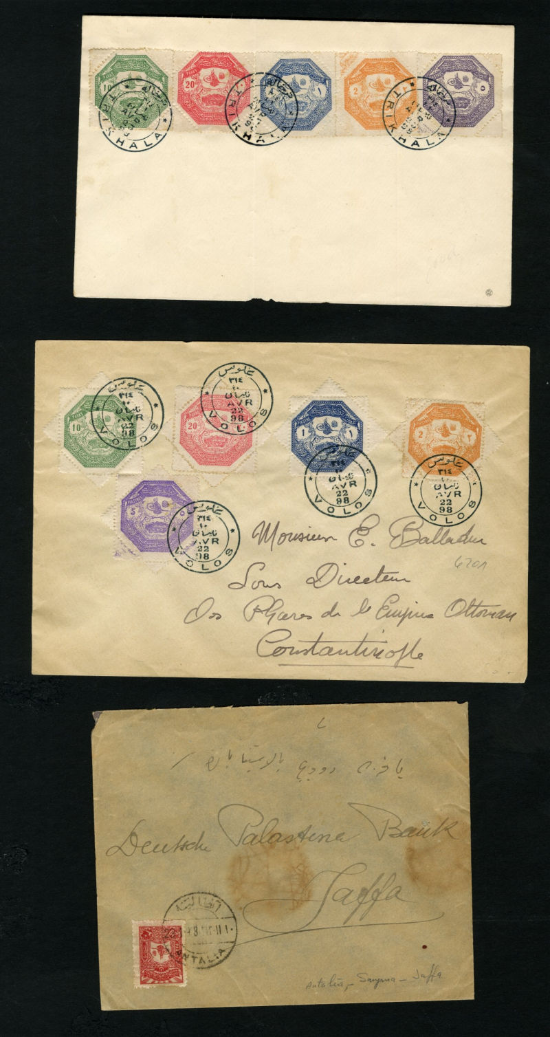 1192 c   imageLARGE LOTS AND COLLECTIONS TURKEY 1903-43 collection of 46 covers, mostly Ottoman Empire with usages from Volos, Anatolia, Samsun, Beirut, Rhodes, Metelin, Jaffa, Jerusalem, Tripoli, Gaza, Halep, Chios, Kerbela, Trebizond, Damascus, plus some modern issues, with Military and censor strikes, also selection of cancelations incl. blocks, all identified, with some rare items incl. "Beit Alfakih", "Hodeida" (Yemen), "Edirne" and many others, great lot for a specialist (Image) (Image 2) (Image 3) (Image 4) (Image 5) (Image 6) (Image 7) (Image 8) (Image 9) (Image 10) (Image 11) (Image 12) (Image 13) (Image 14) (Image 15) (Image 16) (Image 17) (Image 18) (Image 19) (Image 20) (Image 21) (Image 22) (Image 23) (Image 24) (Image 25) (Image 26) (Image 27) (All Images)