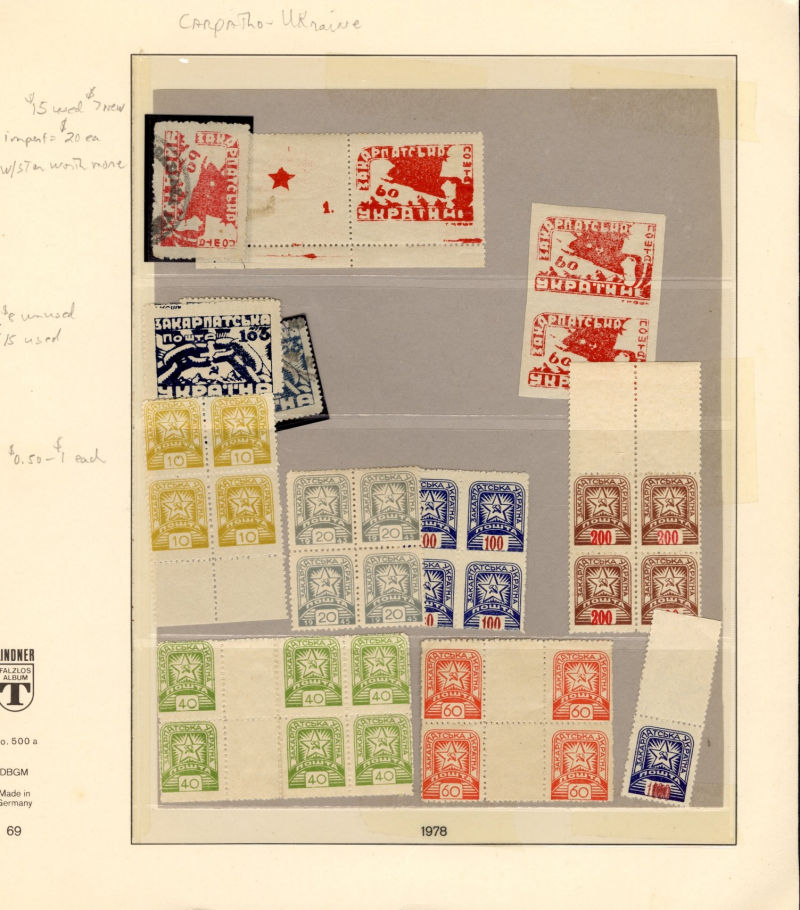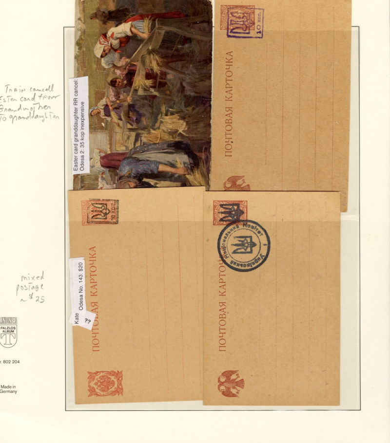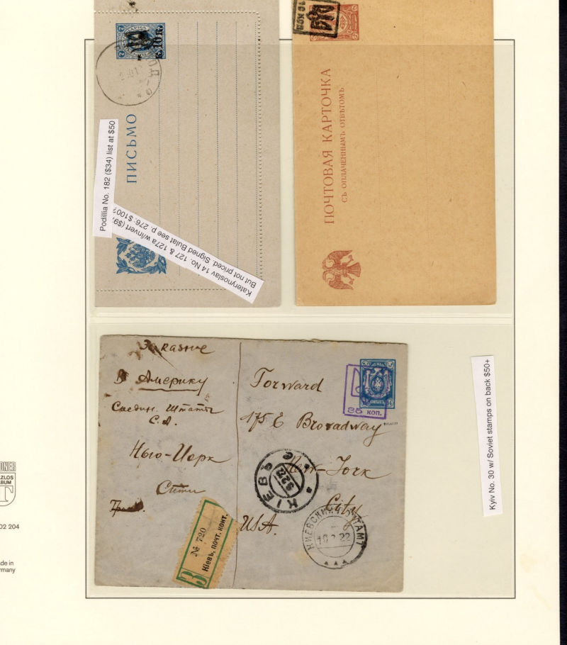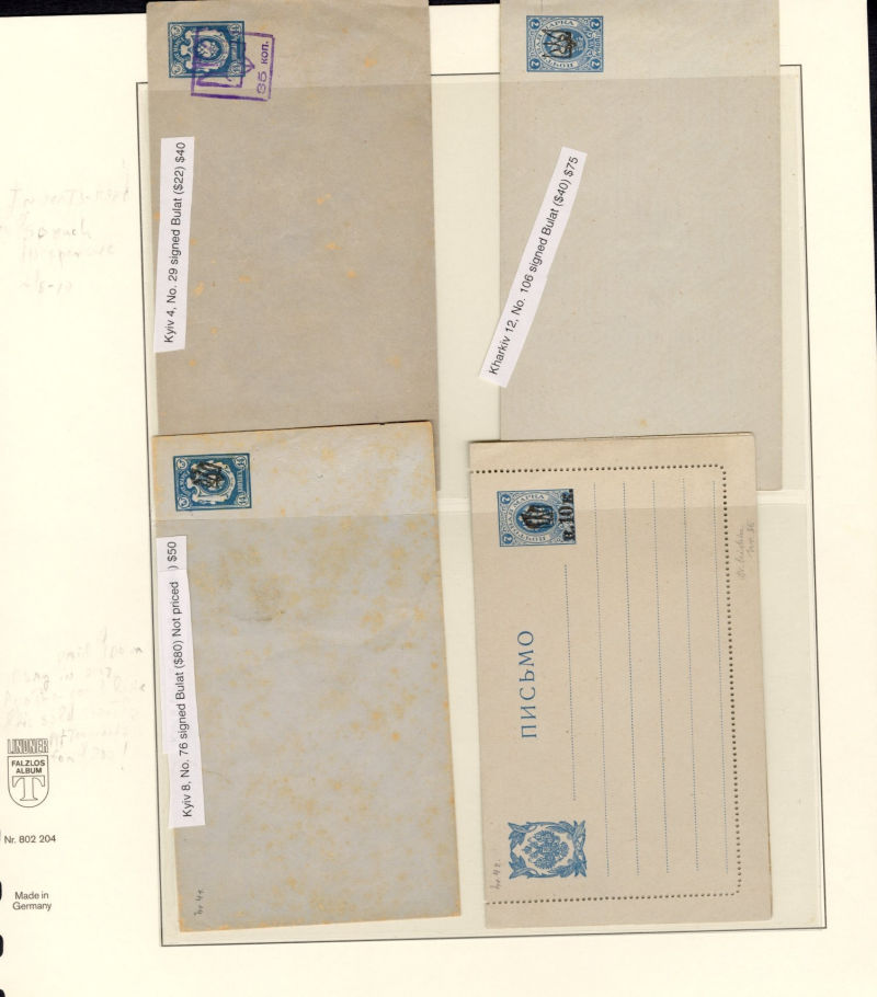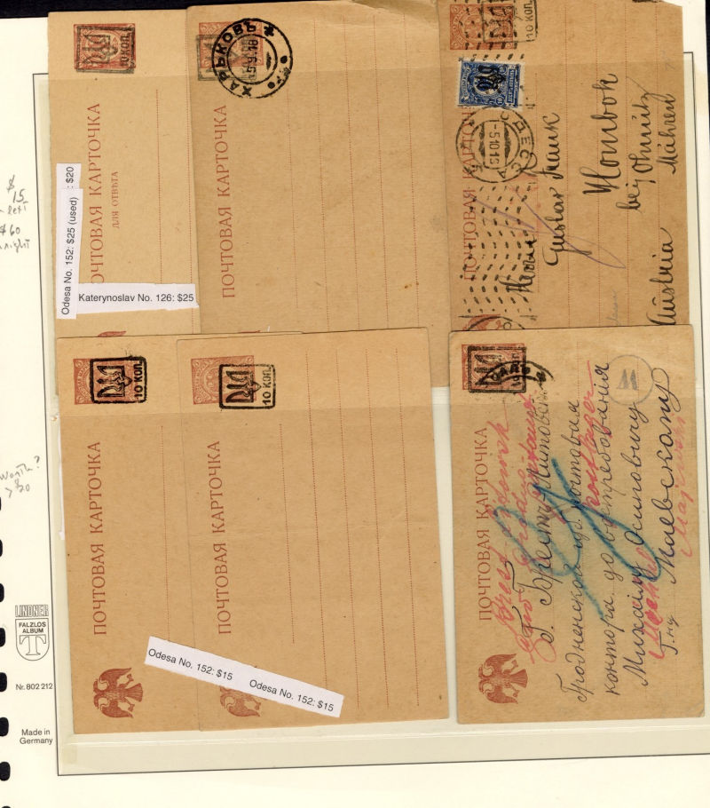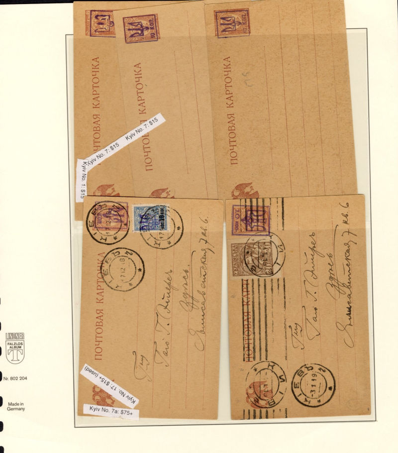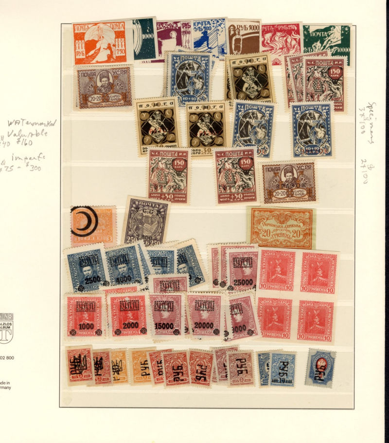 1194 O, og, c   imageLARGE LOTS AND COLLECTIONS UKRAINE 1918-20 balance of a collection on pages, somewhat disorganized selection of 1945-47 Detention Camps stamps from Regensburg, some labels and fantasies, Carpatho-Ukraine Soviet Issues, with imperforate varieties and gutter blocks, Romania Occupation items, General Vlasov set of five, group of 26 used or unused Postal Stationery trident overprinted cards and stationery entire envelopes, various districts, scarce group of 13 covers, Parcel cards with high value franking, plus unused postcards and more, interesting and unusual, ex-Bruce Jarvis (Image) (Image 2) (Image 3) (Image 4) (Image 5) (Image 6) (Image 7) (Image 8) (Image 9) (Image 10) (Image 11) (Image 12) (Image 13) (Image 14) (Image 15) (Image 16) (Image 17) (Image 18) (Image 19) (Image 20) (Image 21) (Image 22) (Image 23) (All Images)