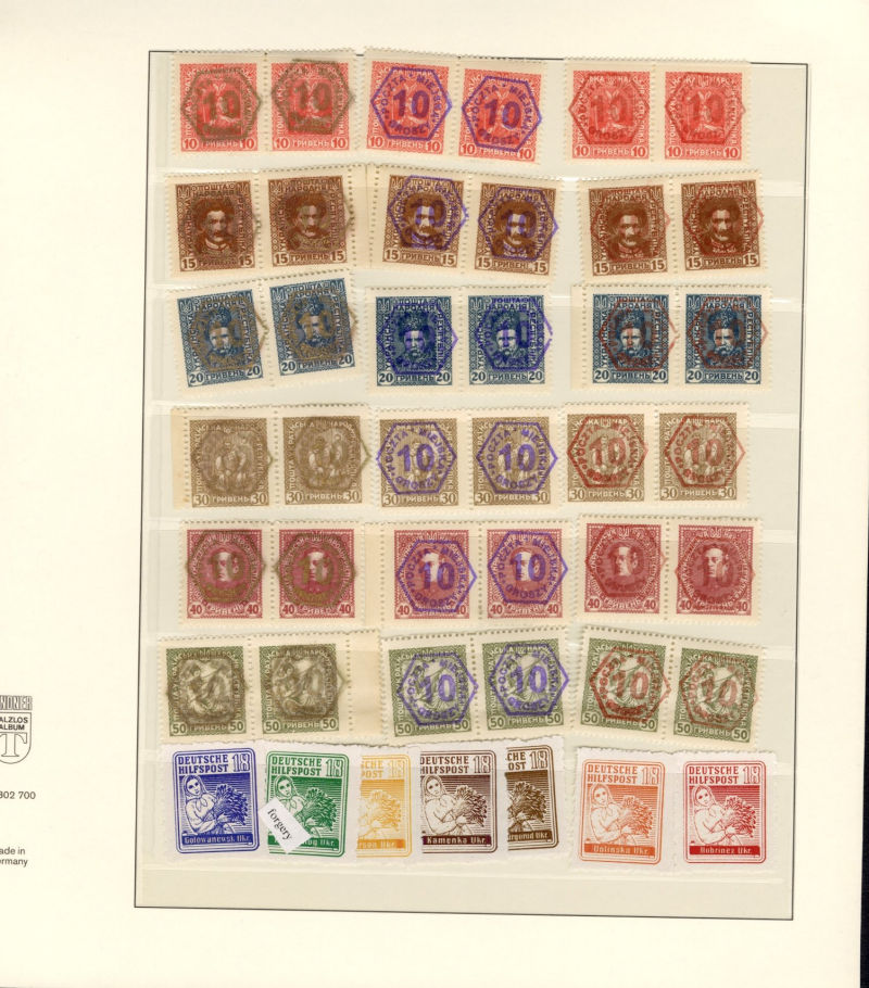 1199 O, og, c   imageLARGE LOTS AND COLLECTIONS WESTERN UKRAINE 1918-20 balance of the Bruce Jarvis collection, hundreds of overprints on pages, used and unused, some covers, varieties, Postal Stationery, CMT overprints, also Polish locals (few better Skalat items), clearly identified forgeries, fantasies, etc., some certificates included, mostly fine-v.f.
