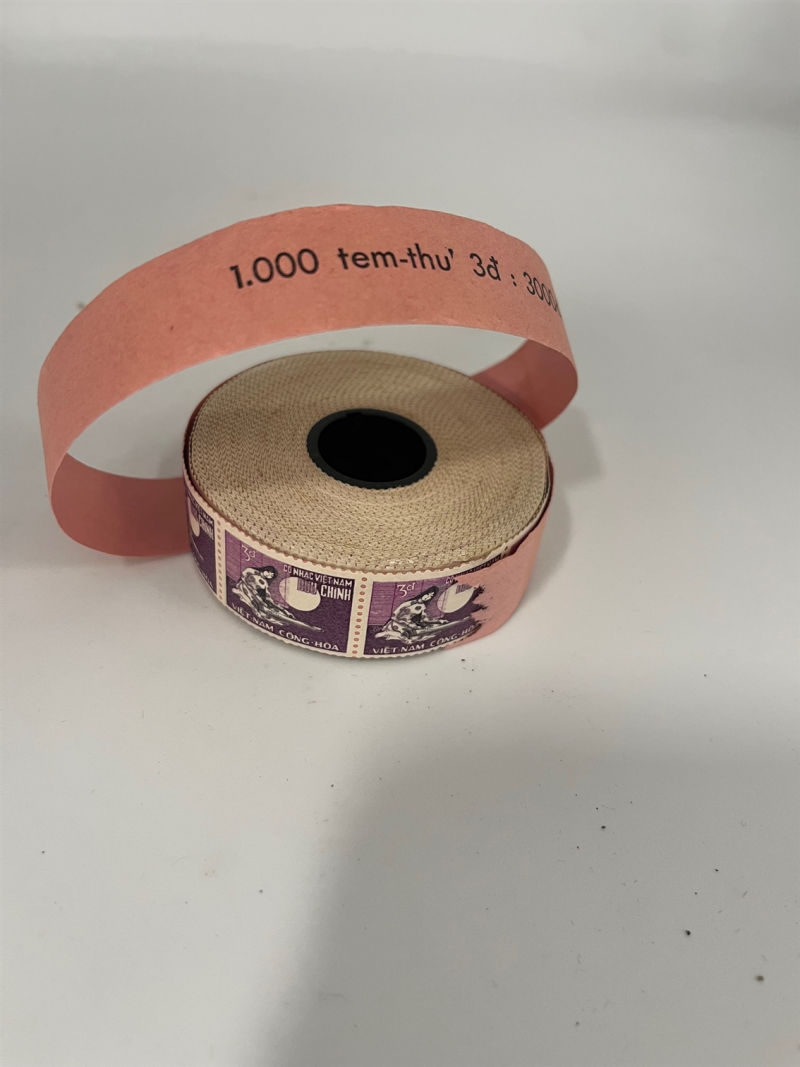 1198 nh   imageLARGE LOTS AND COLLECTIONS VIETNAM (290A) 1968 Musical instruments, 3pi lilac & rose purple, complete coil roll of 1,000, n.h., occasional toning as always, mostly fine-v.f. (YT 329, Euro 17,500) (Image)