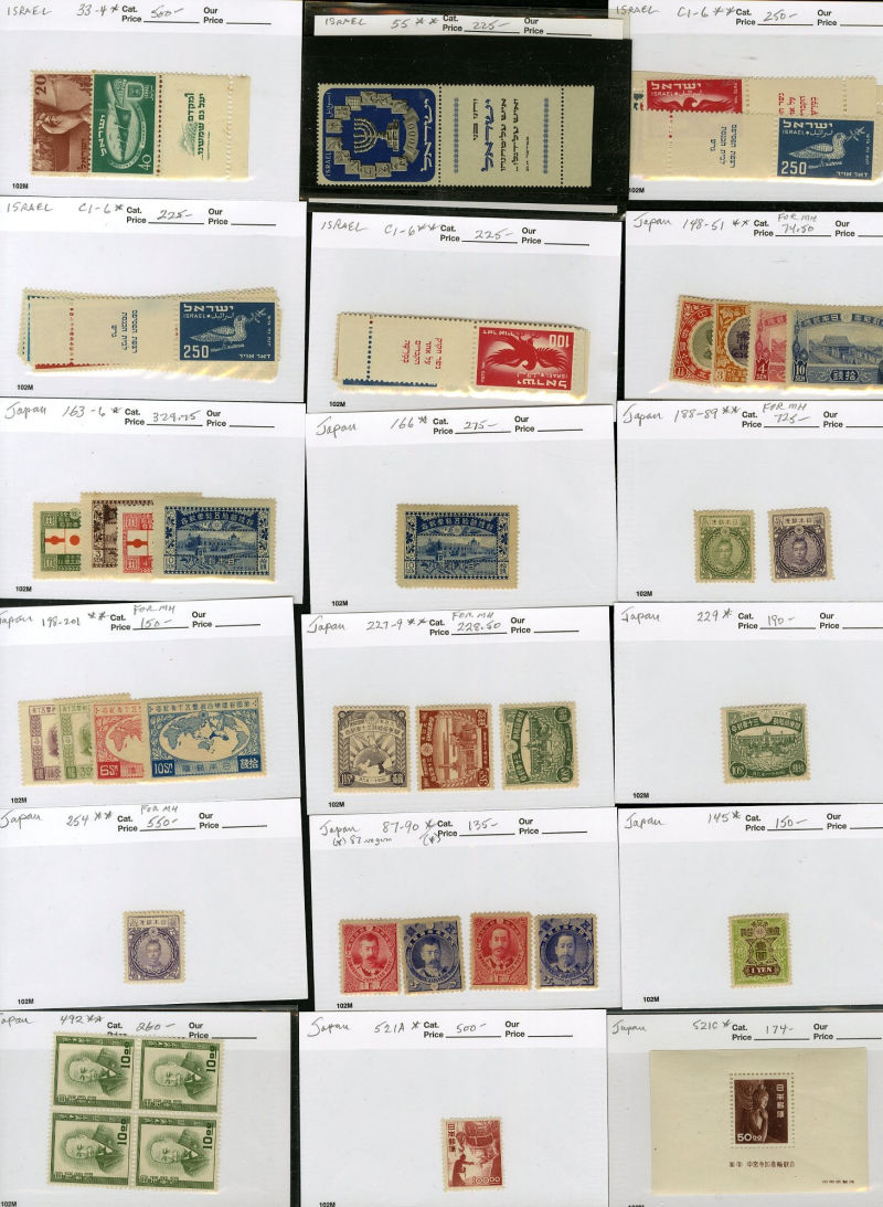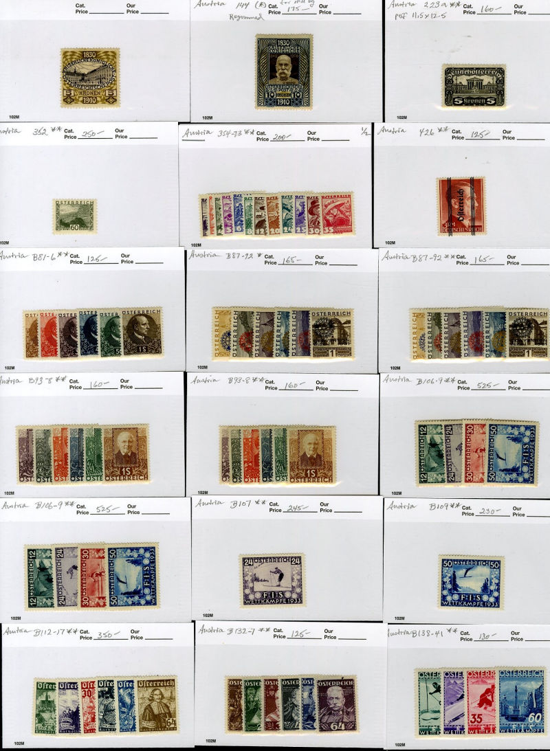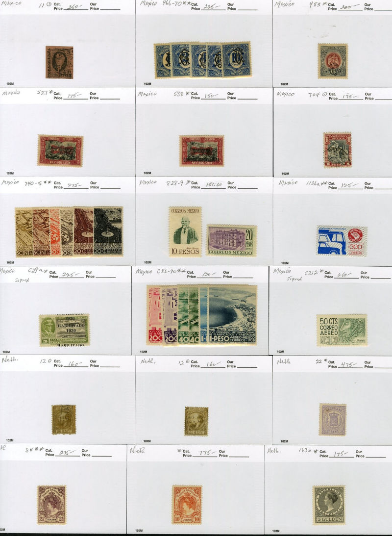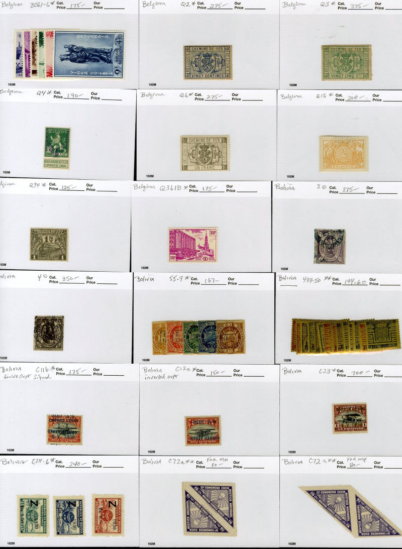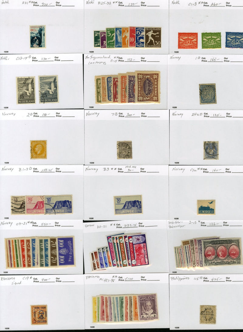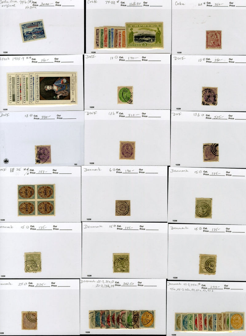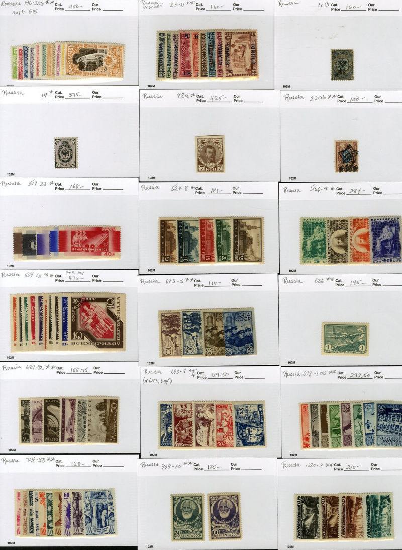 1200 O, nh   imageLARGE LOTS AND COLLECTIONS WORLDWIDE COLLECTIONS and BALANCES 1850-1950s balance of a consignment, good showing of classics, most of the value is in 20th Century singles or sets, neatly displayed on small presentation cards (in Scott catalog order and priced), Austria Semi-Postals, Belgium B69-77 overprints, Orval Abbey and Cardinal Mercier sets, Bolivia Air Post, Bulgaria Balkan Games (237/278), China, with some Large and Small Dragons, ROC 1355-58 (four sets), Scandinavian Countries (better Denmark, Greenland, Iceland, Norway, Sweden), Israel early sets with tabs, Japan, Korea (360/396, etc.), Liechtenstein, Luxembourg, Netherlands (10gld orange), Romania, Russia, Spain and Colonies, Switzerland, Turkey, Yugoslavia, Trieste Zone B, etc. A substantial holding, ideal for resale or internet dealer, mixed condition and some faults noted, few doubtful items not counted, cat. $180,000++ (Image) (Image 2) (Image 3) (Image 4) (Image 5) (Image 6) (Image 7) (Image 8) (Image 9) (Image 10) (Image 11) (Image 12) (Image 13) (Image 14) (Image 15) (Image 16) (Image 17) (Image 18) (Image 19) (Image 20) (Image 21) (Image 22) (Image 23) (Image 24) (Image 25) (Image 26) (Image 27) (Image 28) (Image 29) (Image 30) (Image 31) (Image 32) (Image 33) (Image 34) (Image 35) (Image 36) (Image 37) (All Images)