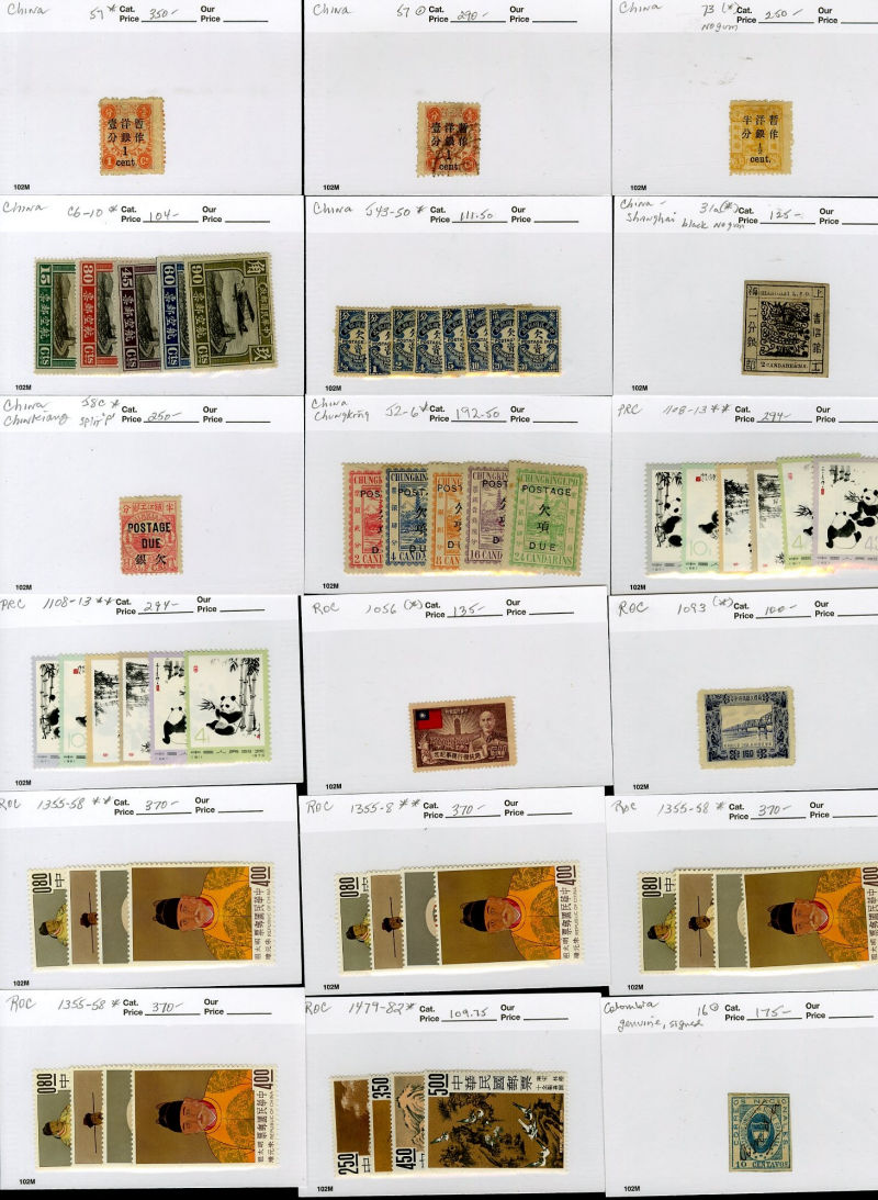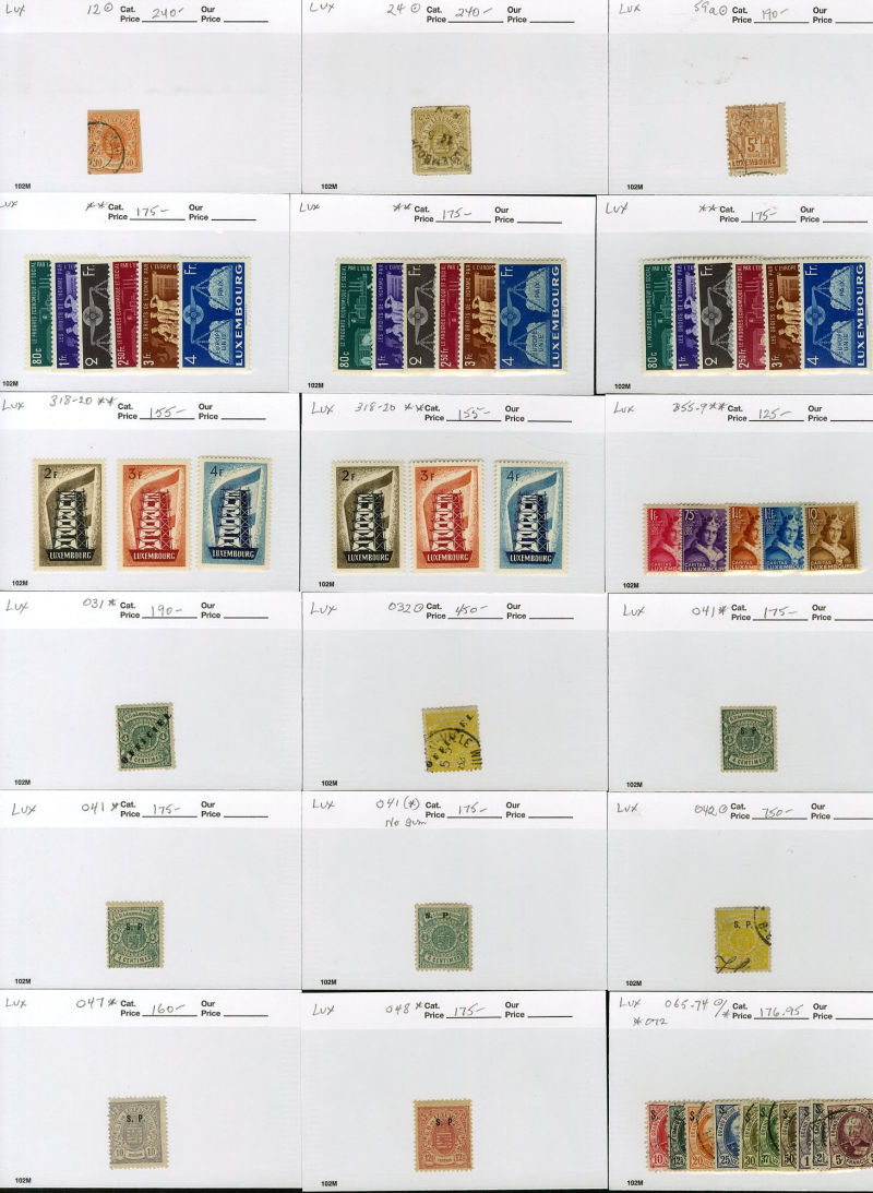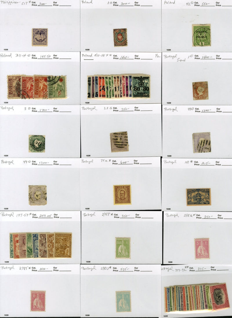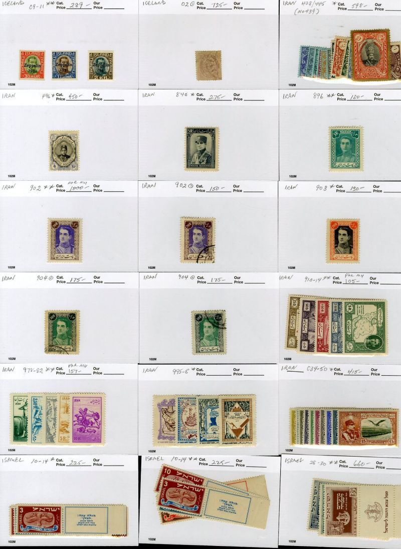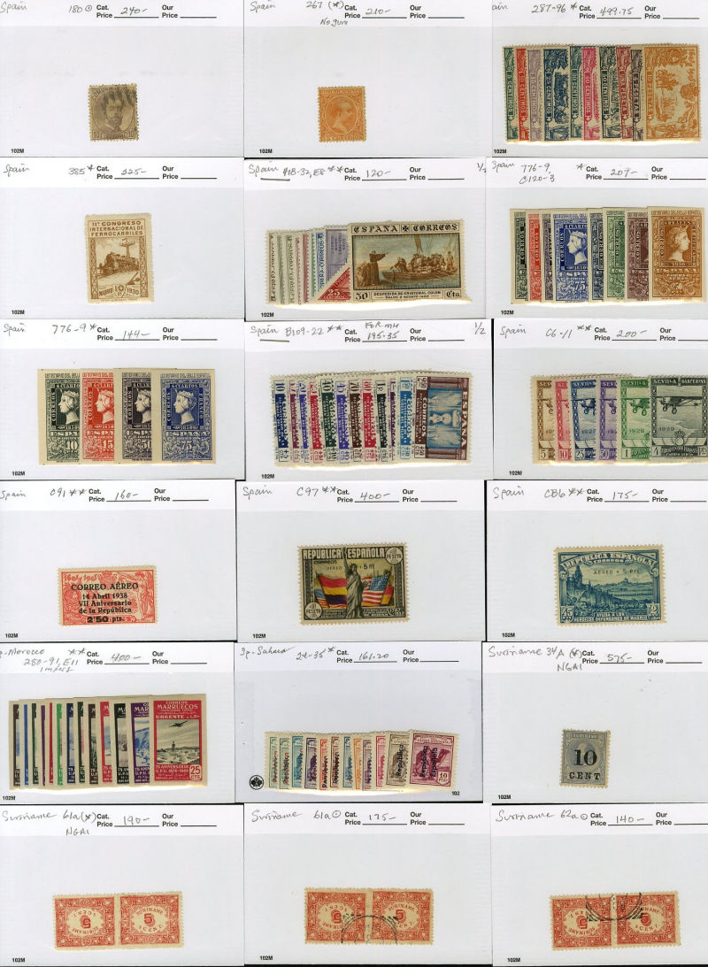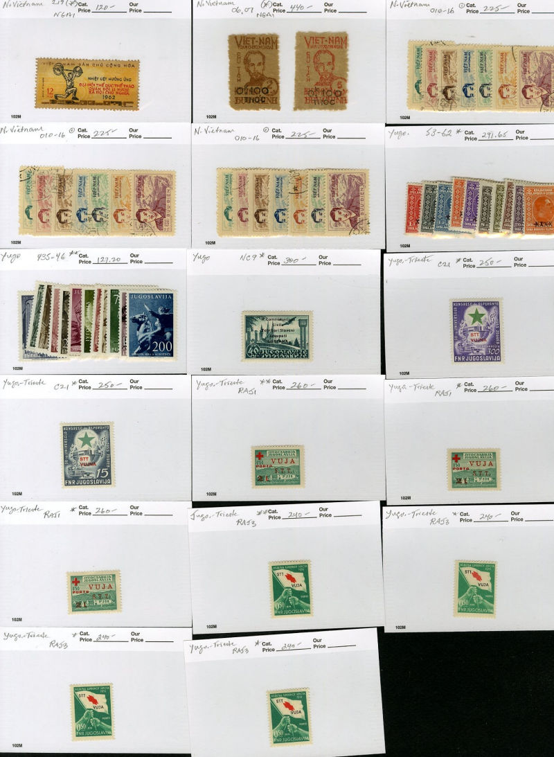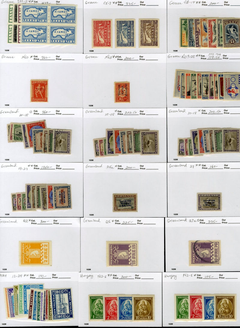 1200 O, nh   imageLARGE LOTS AND COLLECTIONS WORLDWIDE COLLECTIONS and BALANCES 1850-1950s balance of a consignment, good showing of classics, most of the value is in 20th Century singles or sets, neatly displayed on small presentation cards (in Scott catalog order and priced), Austria Semi-Postals, Belgium B69-77 overprints, Orval Abbey and Cardinal Mercier sets, Bolivia Air Post, Bulgaria Balkan Games (237/278), China, with some Large and Small Dragons, ROC 1355-58 (four sets), Scandinavian Countries (better Denmark, Greenland, Iceland, Norway, Sweden), Israel early sets with tabs, Japan, Korea (360/396, etc.), Liechtenstein, Luxembourg, Netherlands (10gld orange), Romania, Russia, Spain and Colonies, Switzerland, Turkey, Yugoslavia, Trieste Zone B, etc. A substantial holding, ideal for resale or internet dealer, mixed condition and some faults noted, few doubtful items not counted, cat. $180,000++ (Image) (Image 2) (Image 3) (Image 4) (Image 5) (Image 6) (Image 7) (Image 8) (Image 9) (Image 10) (Image 11) (Image 12) (Image 13) (Image 14) (Image 15) (Image 16) (Image 17) (Image 18) (Image 19) (Image 20) (Image 21) (Image 22) (Image 23) (Image 24) (Image 25) (Image 26) (Image 27) (Image 28) (Image 29) (Image 30) (Image 31) (Image 32) (Image 33) (Image 34) (Image 35) (Image 36) (Image 37) (All Images)