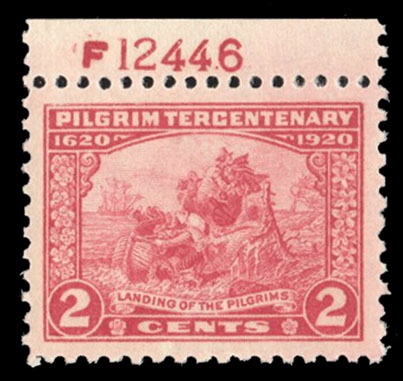 States 1917-29 Issues (549) 1920 2c carmine rose, top plate number single, n.h., well centered with jumbo margins, with 2016 PSE certificate graded "XF-Sup 95J" (SMQ $400)