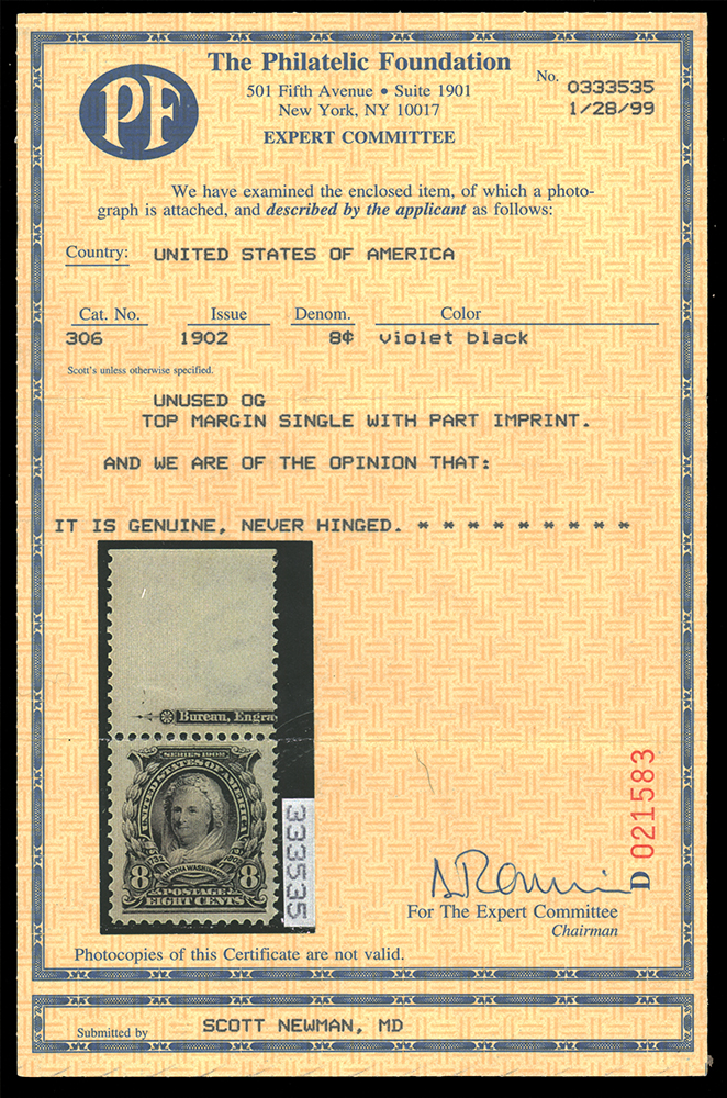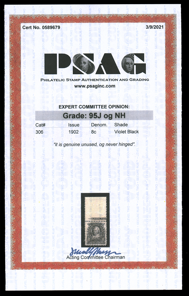 This stamp ranks as number 6 out of 149 in StampAuctionNetwork's census placing it in the the top 2%-tier group. A stunning example of the Martha Washington 1902 stamp, the first US stamp to feature a woman as a primary subject. (Image1) (image2) (image3) (All Images)