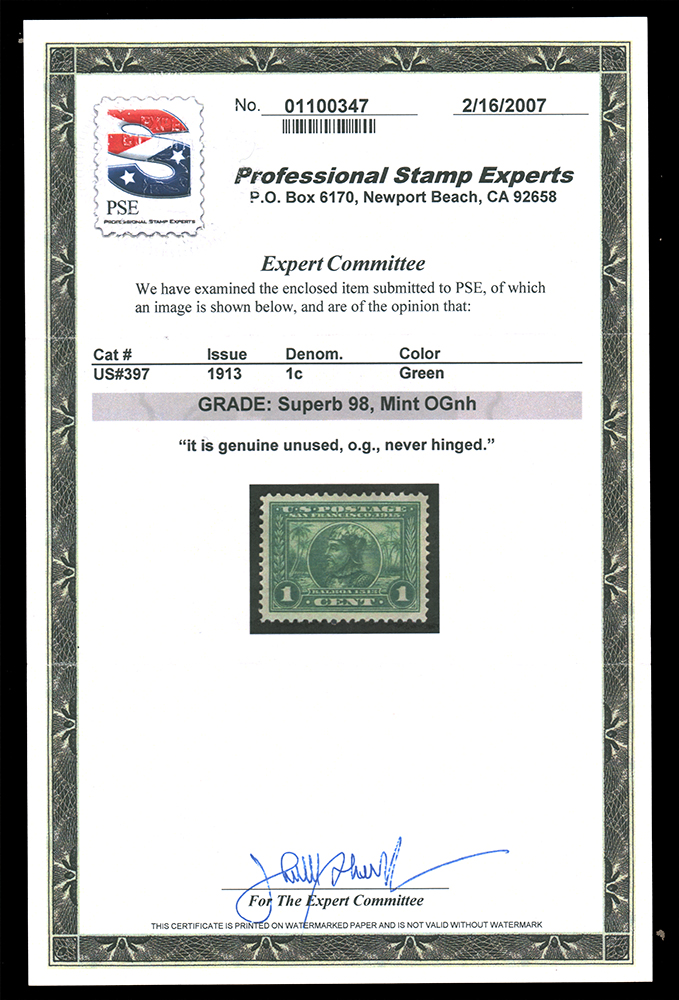 This stamp ranks well into the top 10% of the singles in the past 20+ years placing it as number 18 out of 258 stamps. The very clearly defined grill adds to the desirability of this stamp that is so rarely found in this outstanding condition. (Image1) (image2) (image3) (All Images)