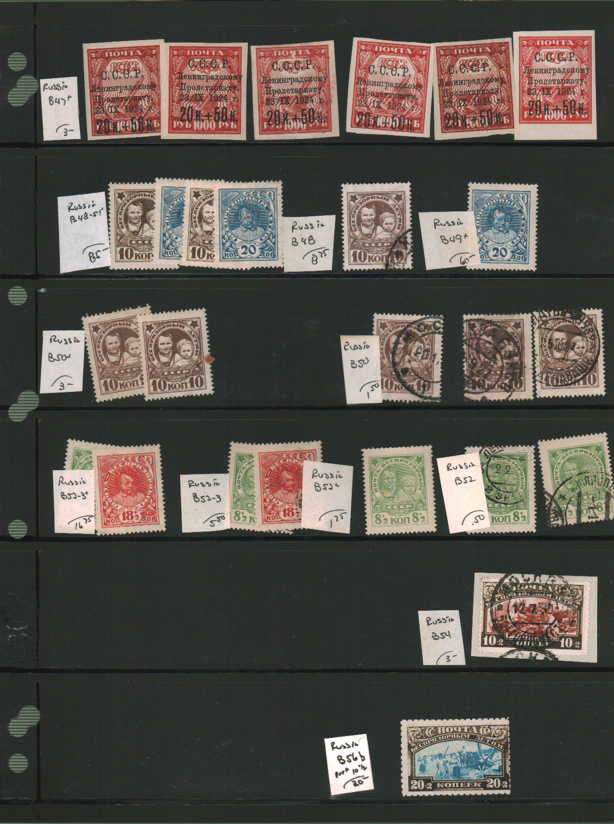 Russia Semi Postals Scott B1//B57 all different, varieties, many NH on vario pages - approximate cat value $262.50. - estimate $68 - 90.