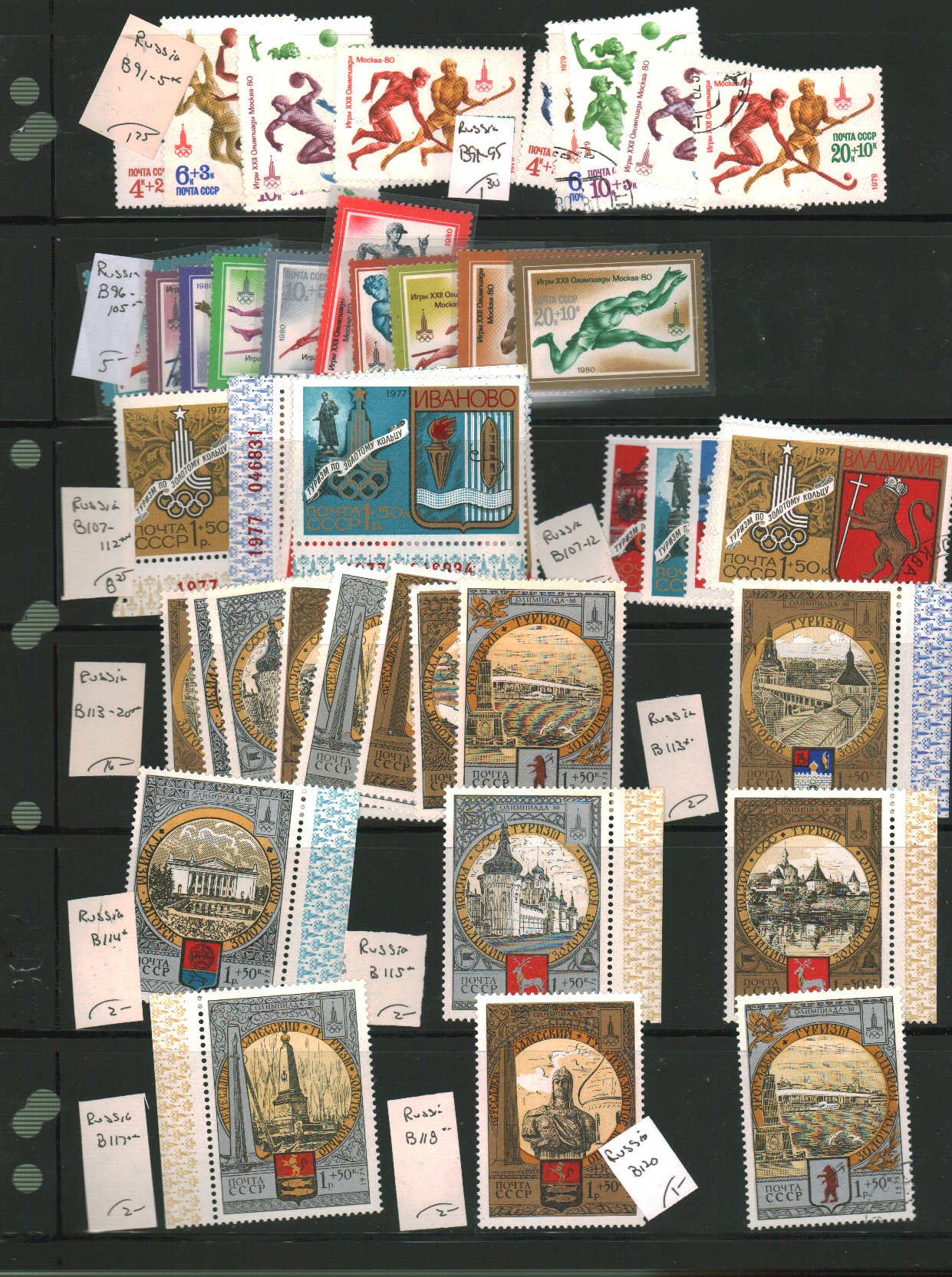 Russia Semi Postals Scott B2//B180 Wildlife and Sports Topicals, on vario pages - approximate cat value $635. - estimate $160 - 210. (Image1) (image2)