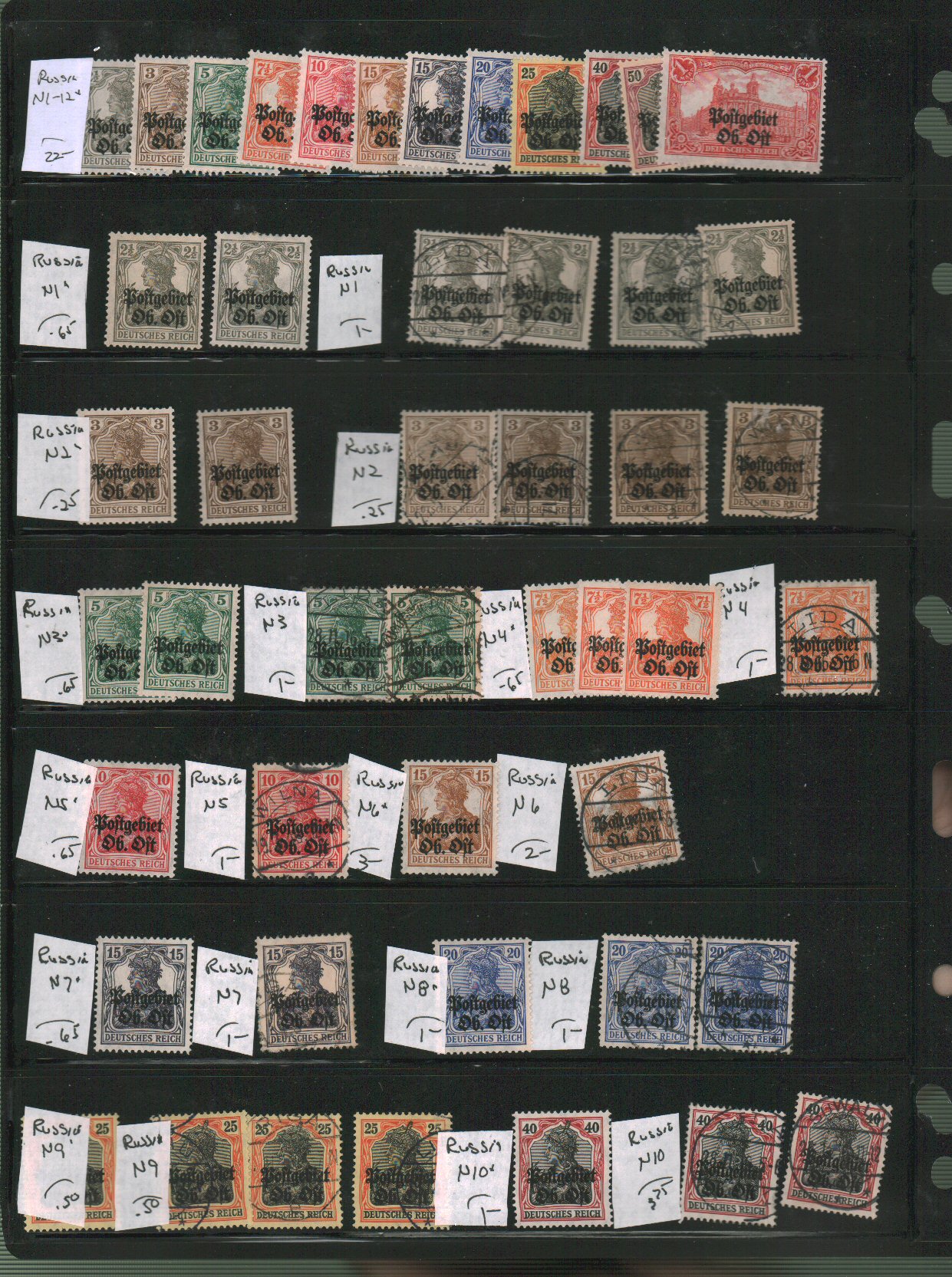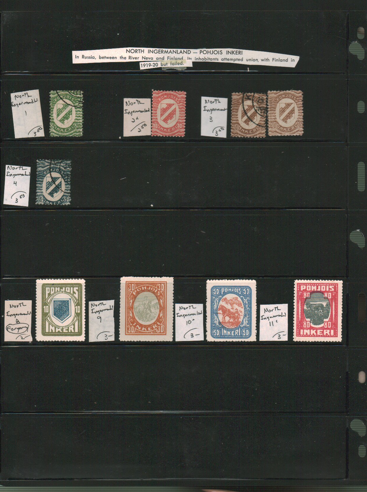 Russia - Karelia and North Ingermanland Scott N16//NB1 and 1//11 on vario pages - approximate cat value $43 - estimate $11 - 15. (Image1) (image2)