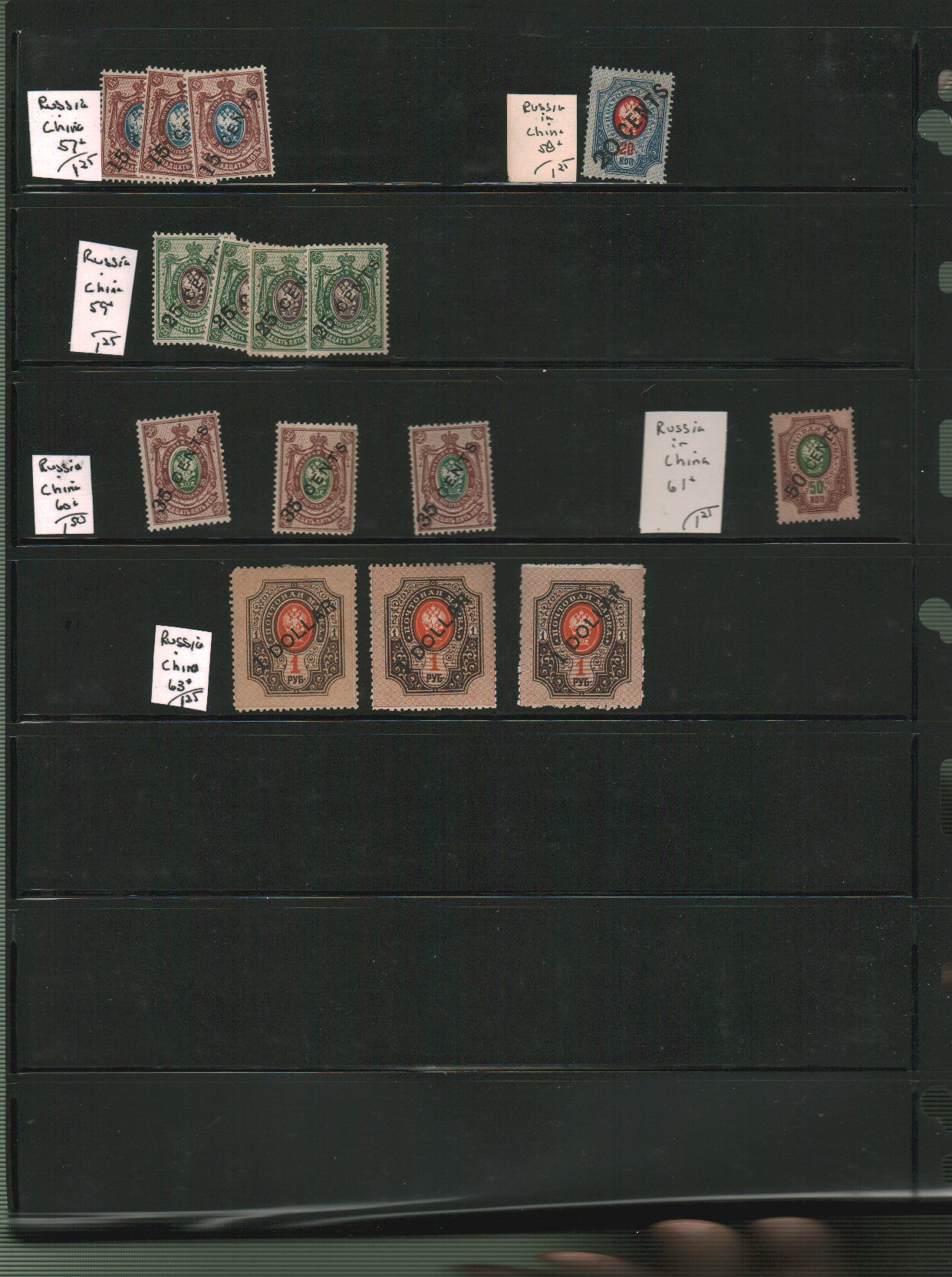 Russia, back of the book and Army of the North and Russia in China Scott E1//N60 on vario pages - approximate cat value $471. - estimate $120 - 160.