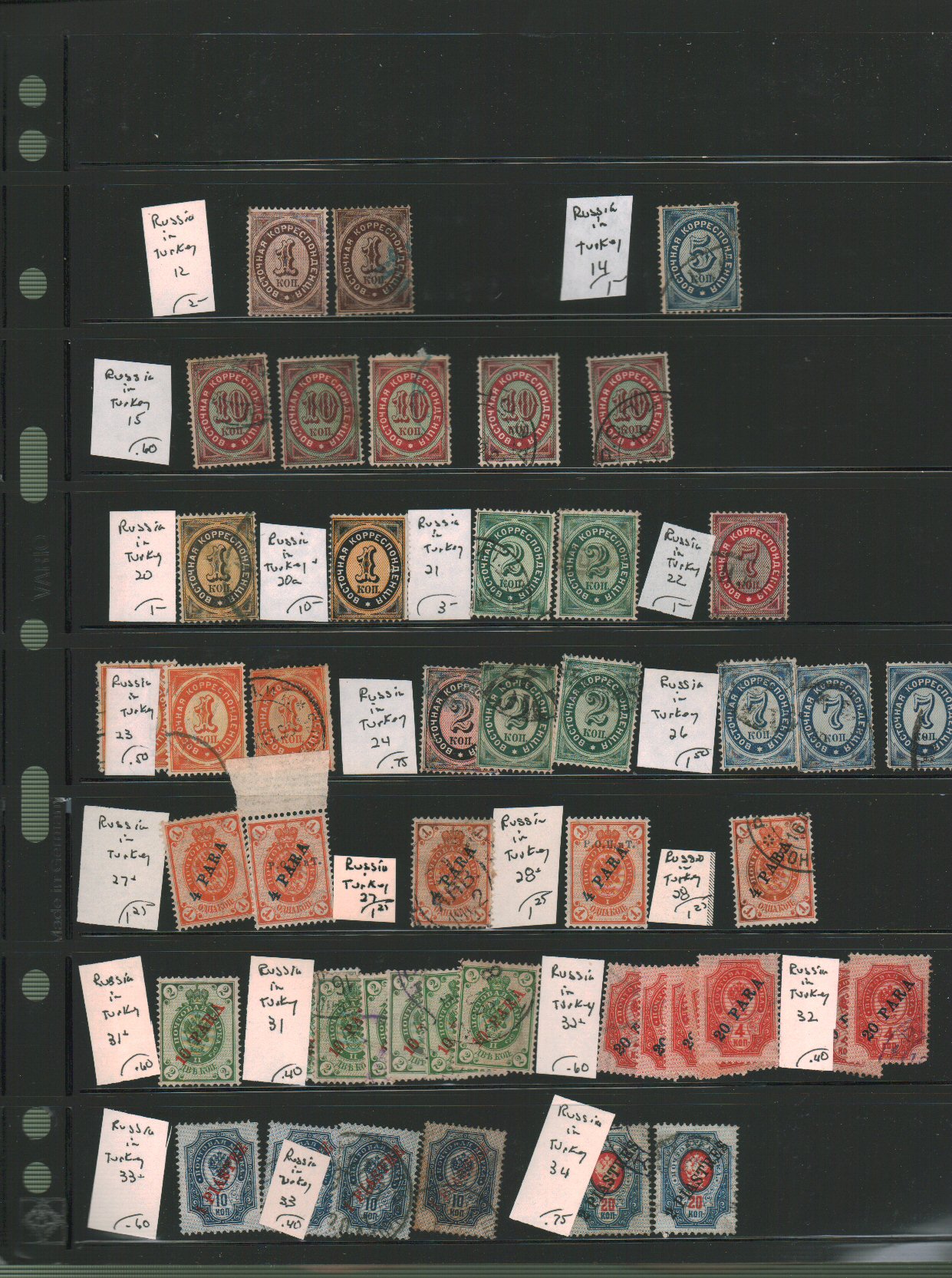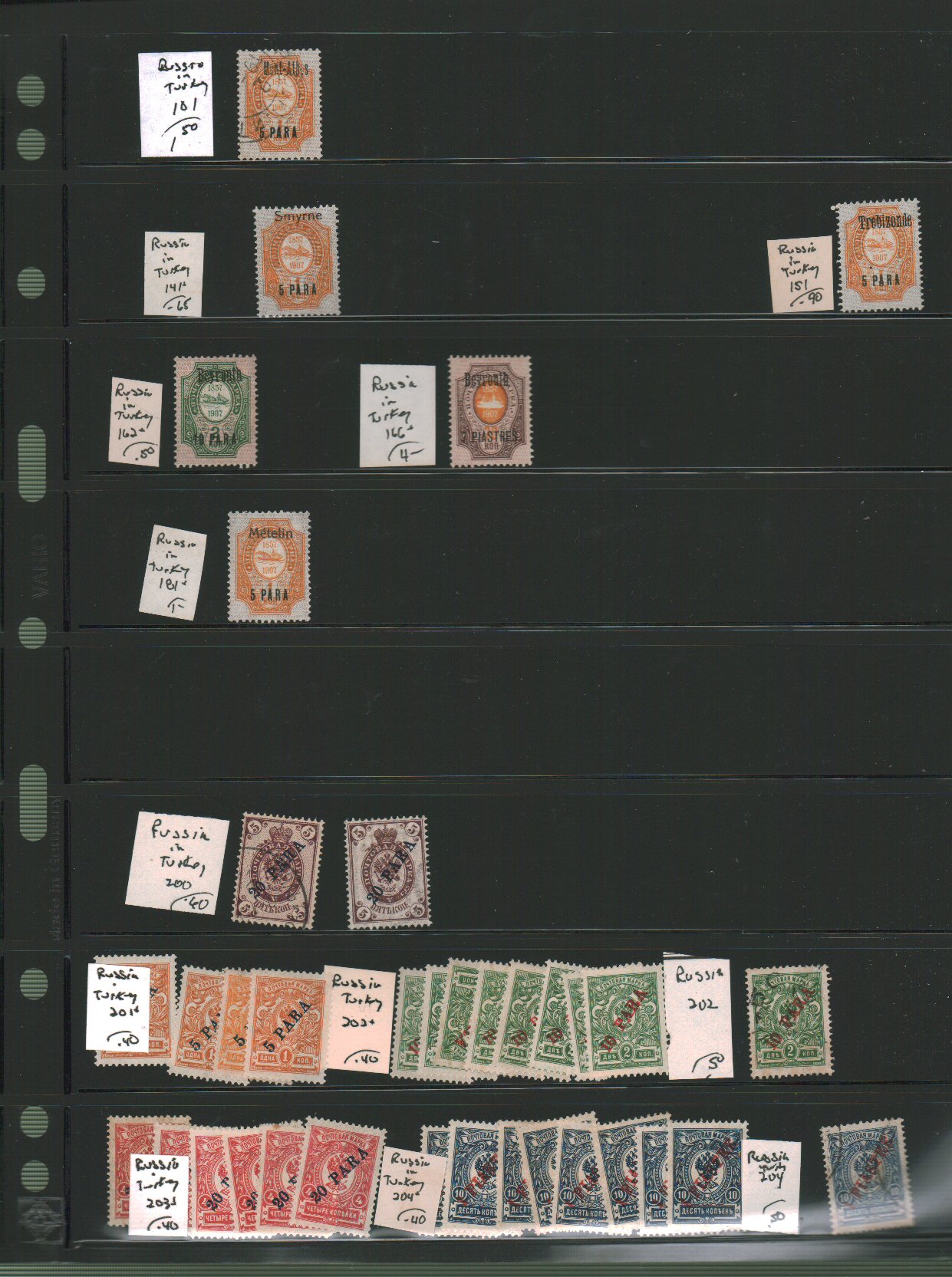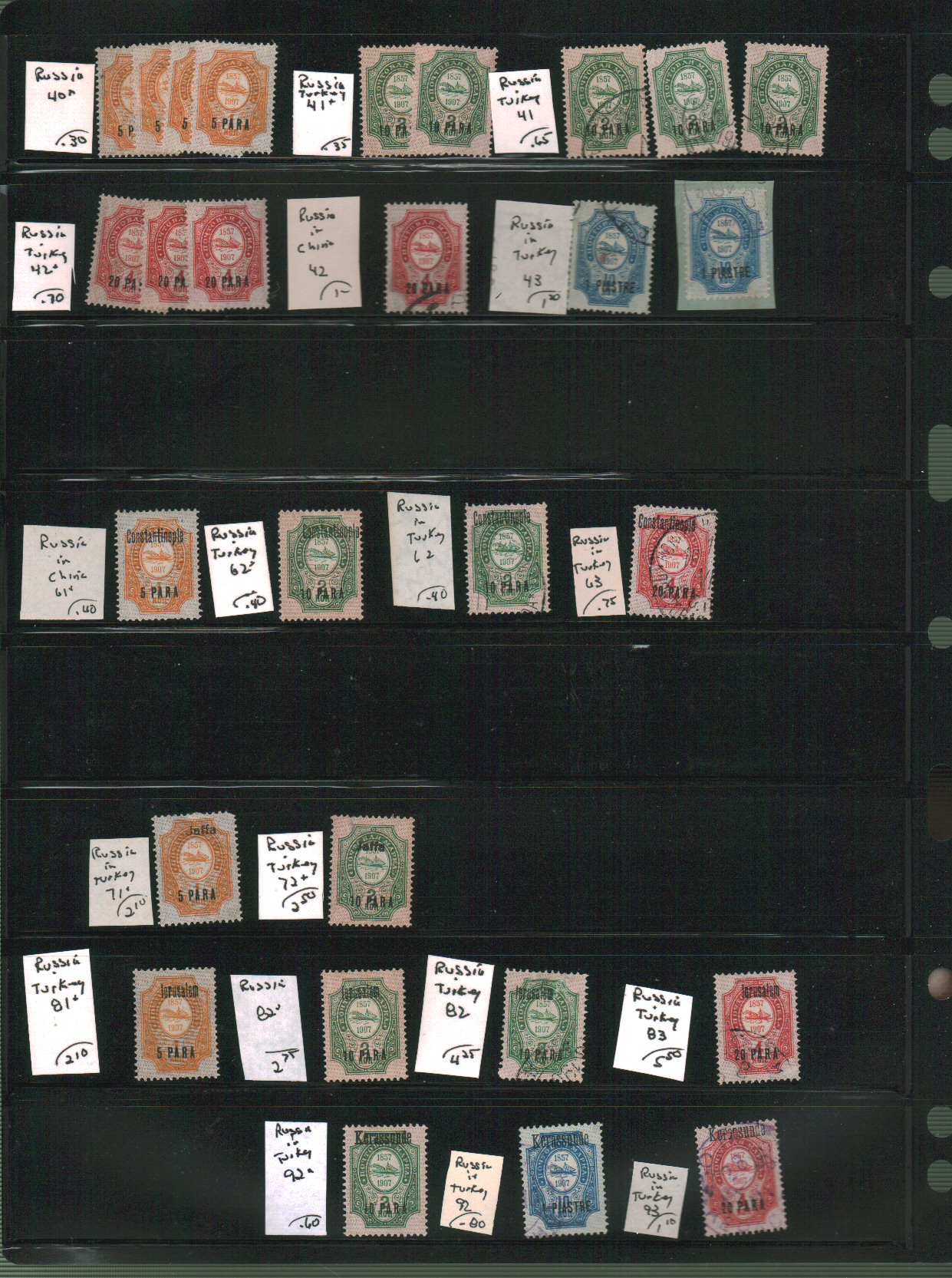 Russia in Turkey Scott 12//225 on vario pages - approximate cat value $89. - estimate $23 - 30. (Image1) (image2)
