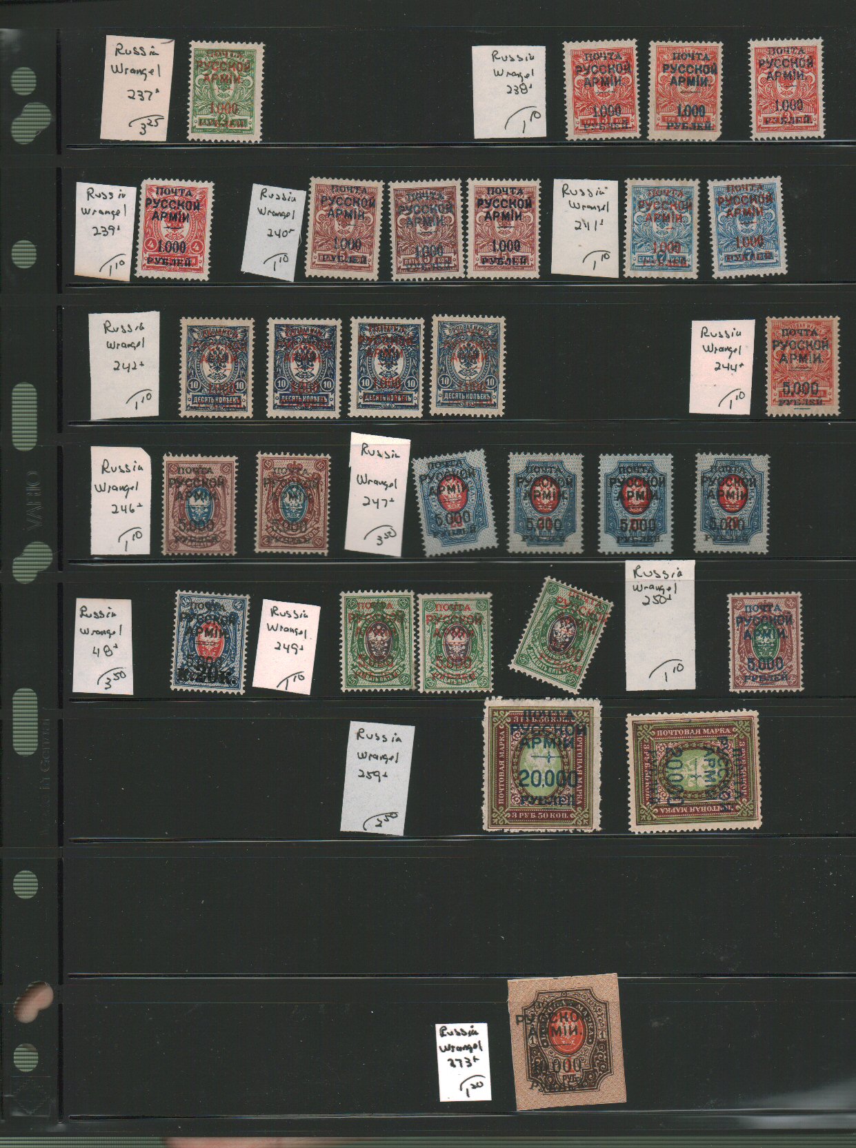 Russia in Wrangel Scott 237//374 on vario pages - approximate cat value $60. - estimate $17 - 23. (Image1) (image2)