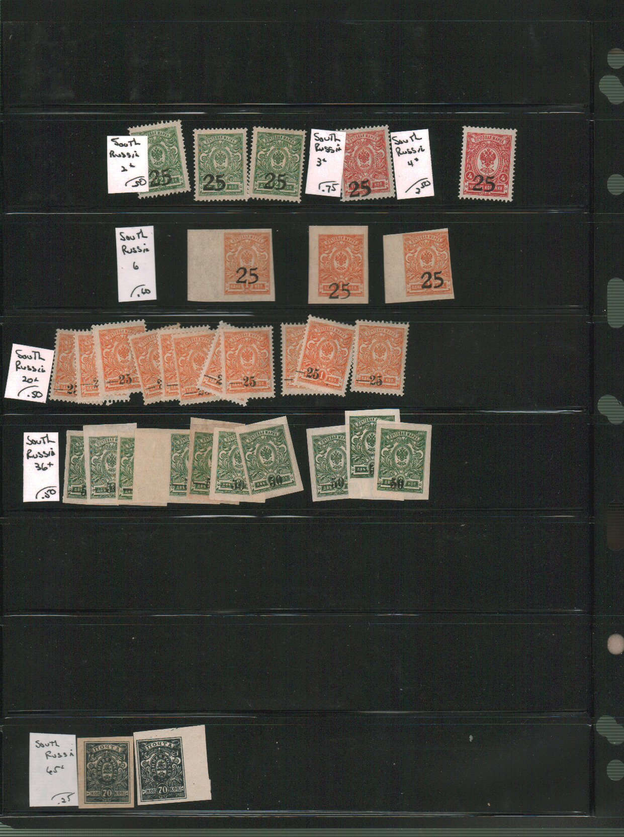 Russia - Siberia and South Russia Scott 1//10 on vario pages - approximate cat value $134. - estimate $34 - 46. (Image1) (image2)
