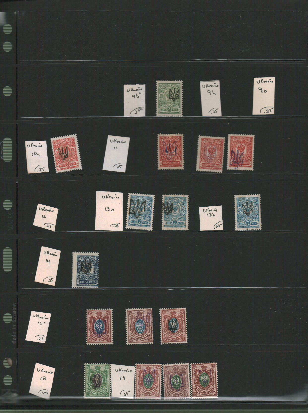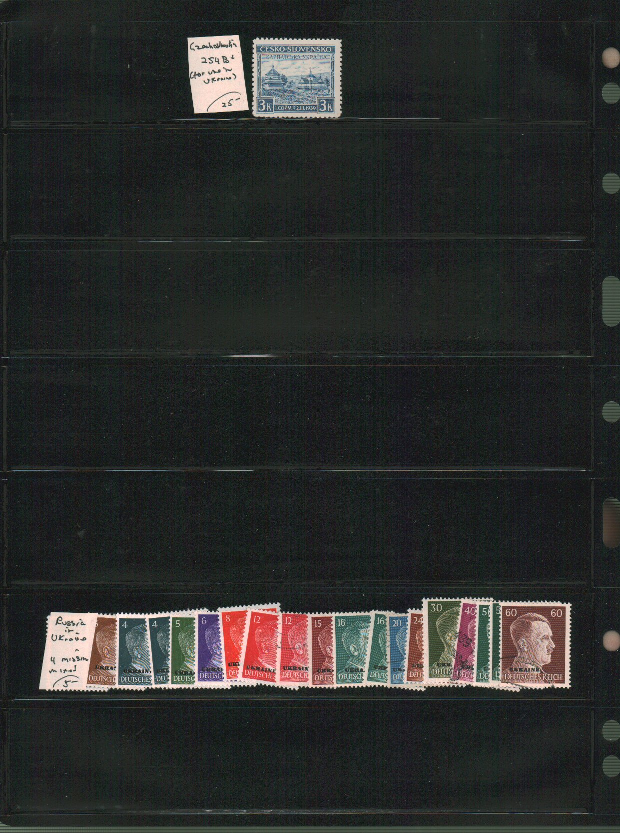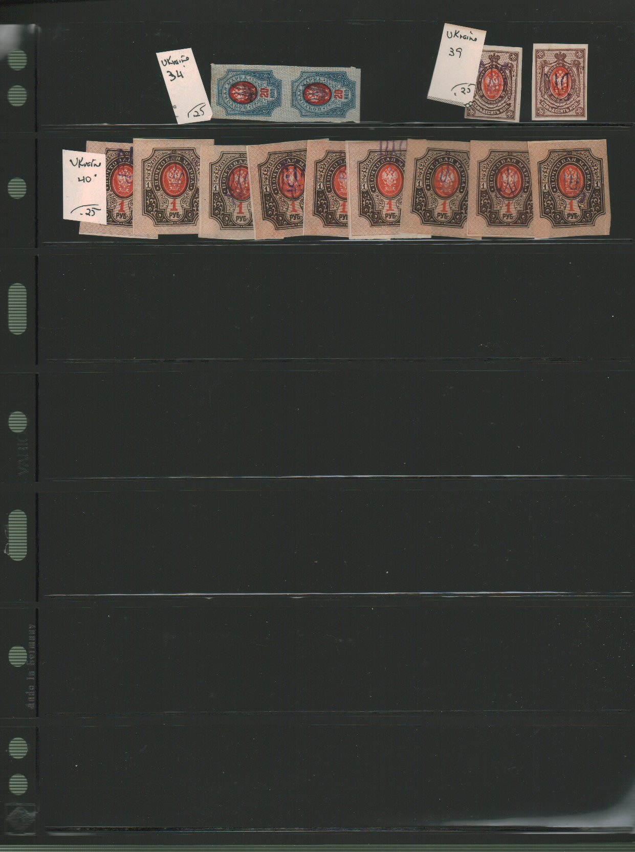 Russia - Ukraine Scott 9b//40 and Czech stamp for use in Ukraine on vario pages - approximate cat value $60. - estimate $15 - 21. (Image1) (image2)
