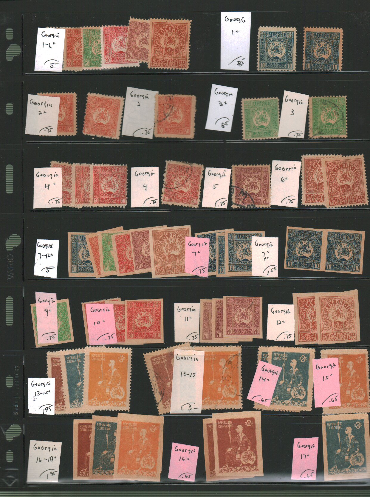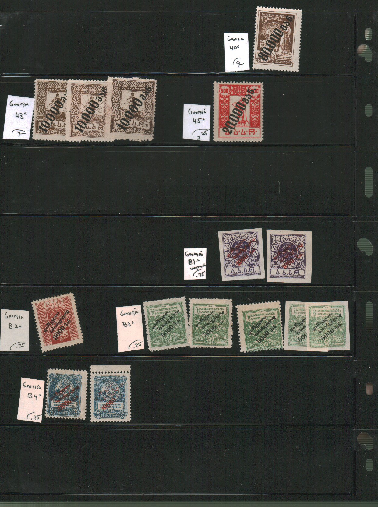 Russia - Georgia Scott 1//B4 on vario pages - approximate cat value $62. - estimate $16 - 21. (Image1) (image2)