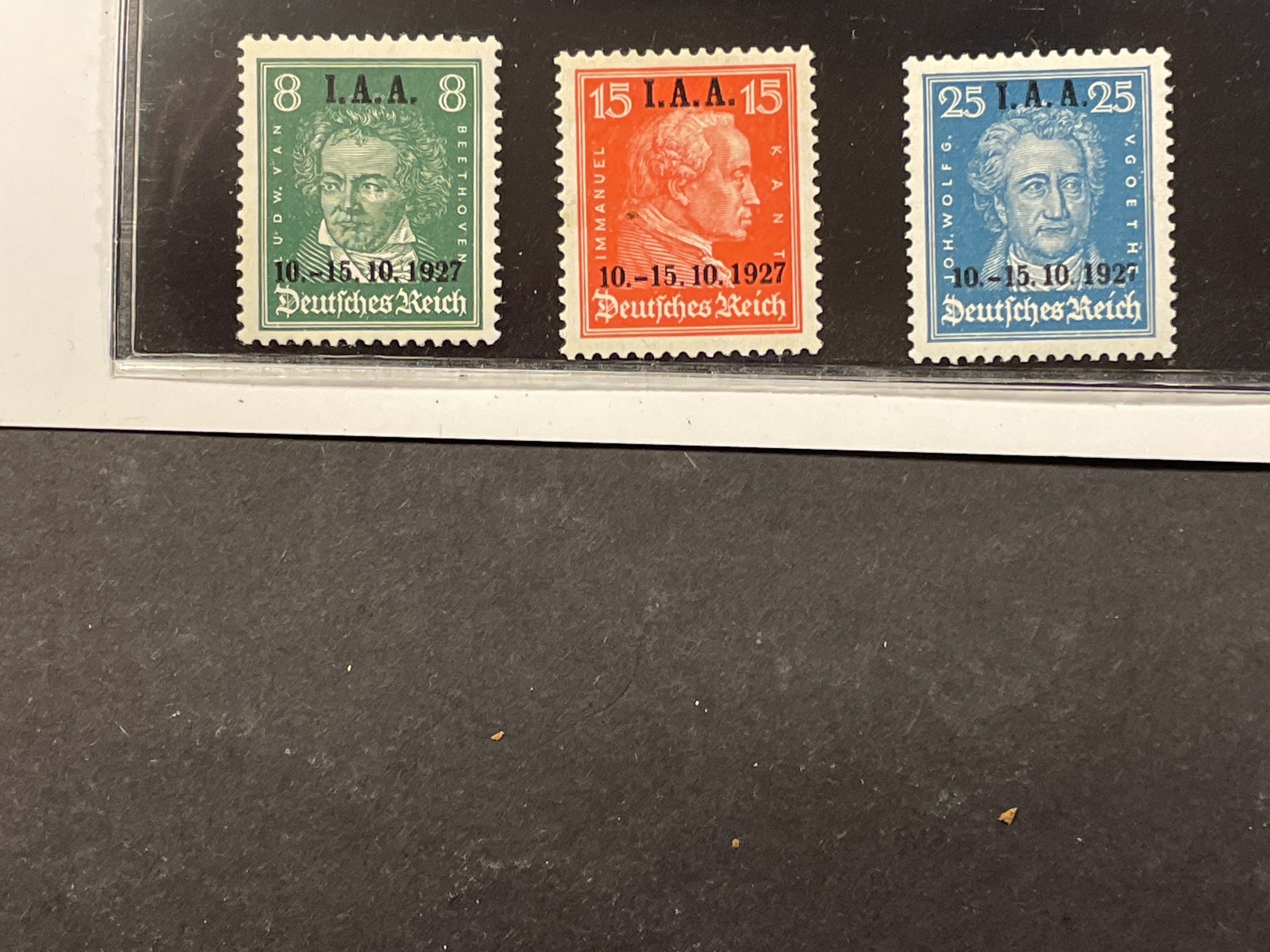 Germany, Reich, Michel 407–09 **, 1927 I.A.A. overprint SET (3). 15 pf *, the others **. Red spot on 25 pf back side. EUR 240 (Image1)