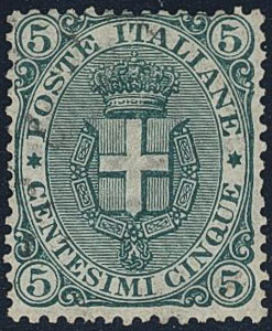 Michel 60 or Sassone 59 (*), 1891 Coat-of-arms 5 c green. EUR 450 (Image1)
