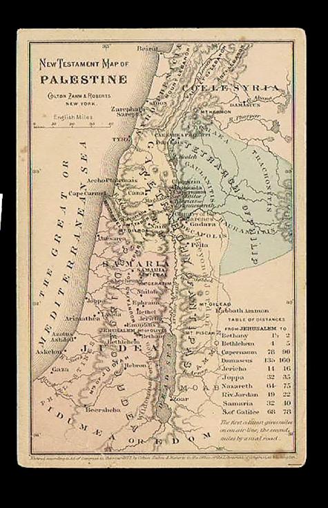 800 doc imageNEW TESTAMENTMAP OF PALESTINE, Postcard size, color, circa 1910-1920. Photo. Estimated Value $150 (Image1)