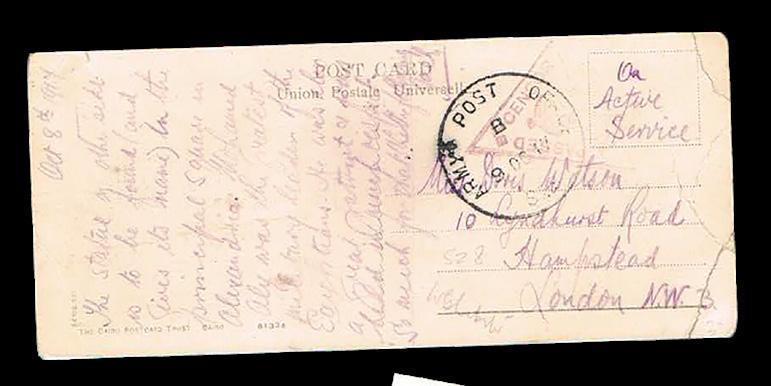 PICTURE POSTCARD from the Headquarters of the 20th Corps, Nov. 17, 1917, addressed to England, while stationed in Beer Sheva. Photo. Estimated Value $200 (Image1)