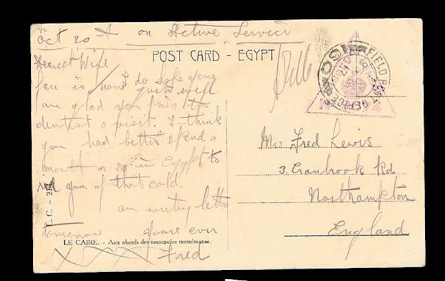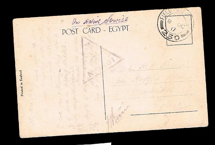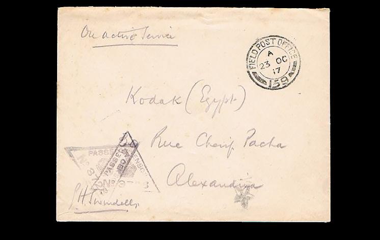 OCT. 23, 1917 Cover to Alexandria from the 159th Brigade while preparing the attack on Beer Sheva. Censored. Photo. Estimated Value $200 (Image1)