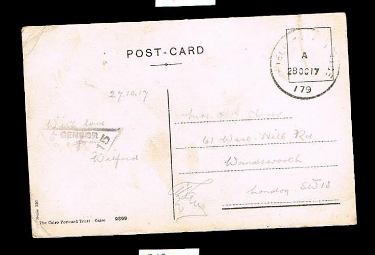 OCT. 28, 1917 PICTURE POSTCARD from the 170th Brigade (part of the 60th London Division) in he conquesst of Beer Sheva on October 31,1917. Censored. Photo. Estimated Value $200 (Image1)