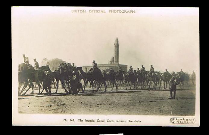 IMPERIAL CAMEL CORPS. Entering Beersheba, photo card, British Official Photograph, unused. Clean. Photo. Estimated Value $125 (Image1)
