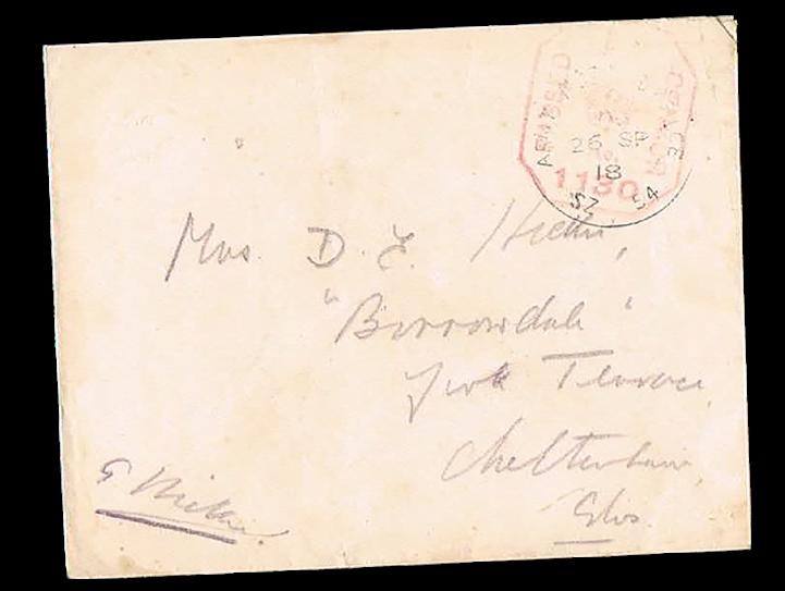 826 c imageSEPT. 26, 1918 COVER addressed to England with cancel APO SZ54 in Beer Sheva only from July to October 1918. Only 4 covers are known to exist. Photo. Estimated Value $250 (Image1)