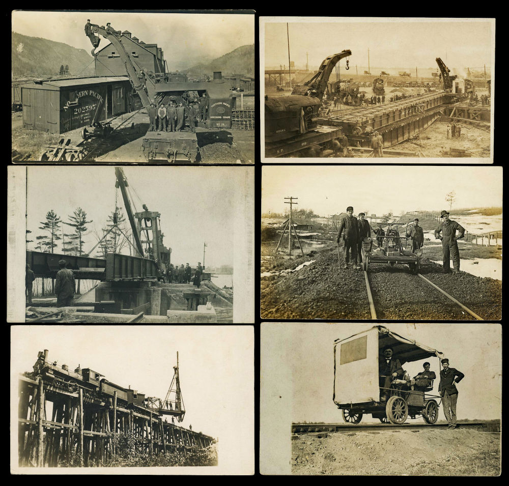 383 image25 RAILROAD CREW POSTCARDS 1905-1912, 20 are B&W real photo cards showing GTR crews in Manitoba, Northern Pacific RR crew at End of the Line, CNR Pile Driving crew, crew at Oro-Station-Ont ++, ex Rogan collection retailing over $300 US ($430 CDN), F-VF est (Image)