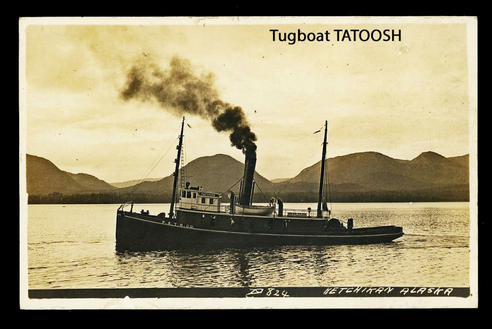 394 image1918 P.S.T.B.Co. TUGBOAT "TATOOSH" at KETCHIKAN-ALASKA, real photo mint card, retails $50 US ($75 CDN), VF est ($35+ US) (Image)