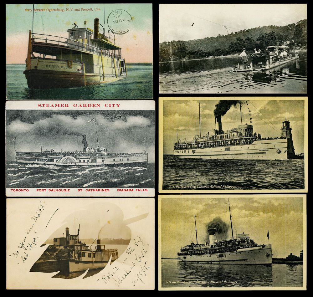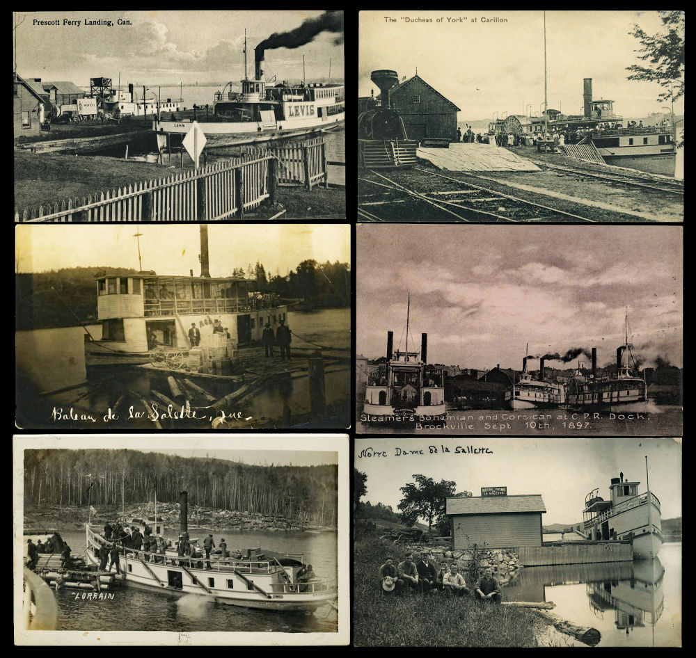395 image25 CANADA SHIP POSTCARDS 1905-1920's, includes a 1910 "DUTCHESS of YORK steamer at Carillon-QUE, 1912 "G. B. GREEN" steamer at Quyon-Que, the "GEORGE BOTHWELL" steamer at the Notre-Dame-de-la-Salette-Que dock, the "PROGRESS" river dredge, a rare 1897 card showing the 3 steamers "BOHEMIAN, CORSICAN, WILLIAM-ARMSTRONG" at the Brockville-Ont dock, steamer "LEVIS" at the Prescott ferry dock, steamer "HAILYBURY" at the Lake Temiskaming Lorrain-Ont dock, steamer "AGRES" at Salette-Que, steamer "CORA" on Lake Couchiching, the steamer "MISS VANDENBERG" at Prescott-Ont, the steamer "HENRY PLUMB" on the Prescott-Ont to Ogdensburg-NY run, also ship cards showing the "CNSS NORTHUMBERLAND" and "CNSS DALHOUSIE-CITY" ++, retails over $375 US ($540 CDN), F-VF est (Image) (image 395b) (All Images)