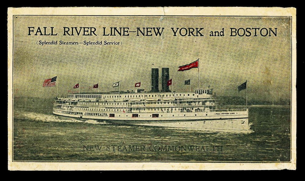 397 image1913 FALL RIVER LINE "SS COMMONWEALTH", overall illustrated advertising showing the ship on the New-York to Boston run, on back of a Washington #406 franked cover from Boston on MAR-1913 and addressed to Danvers-Mass, scarce with retail value over $100 US ($150 CDN), F-VF est ($75+ US) (Image)